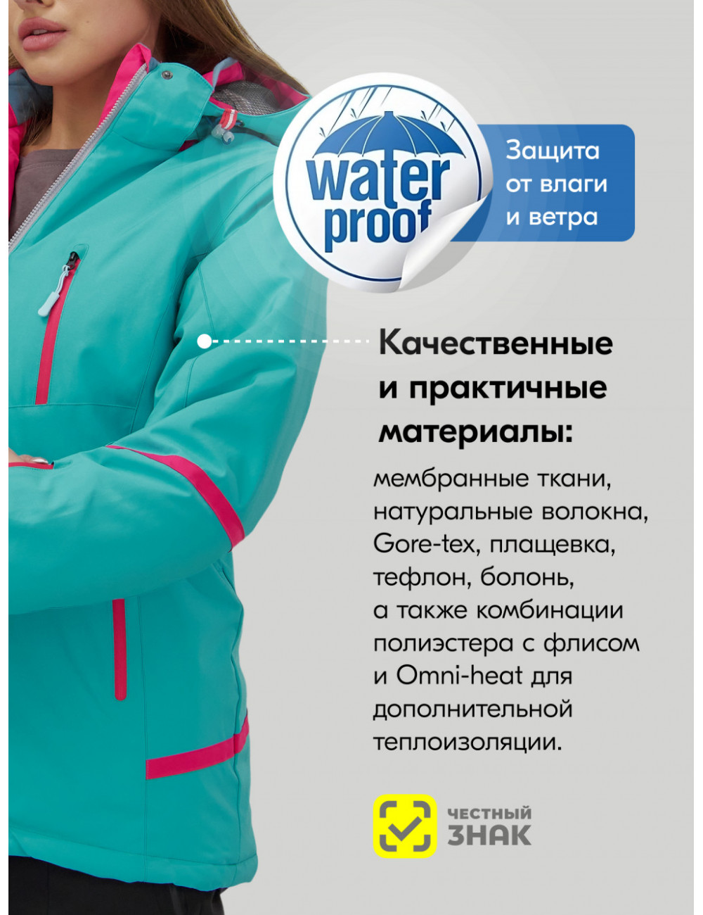Подготовьтесь покорять горы с уверенностью и элегантностью! Ваши зимние приключения начинаются здесь. Доставка по Москве и Московской области Женский горнолыжный костюм бирюзового цвета