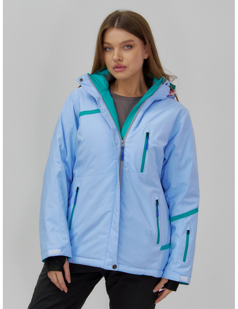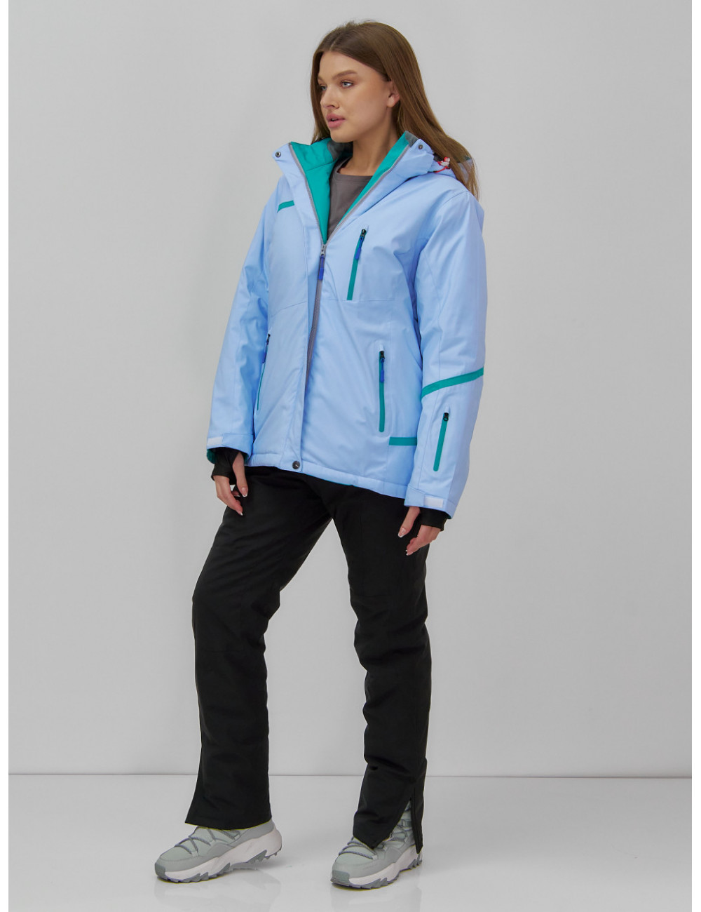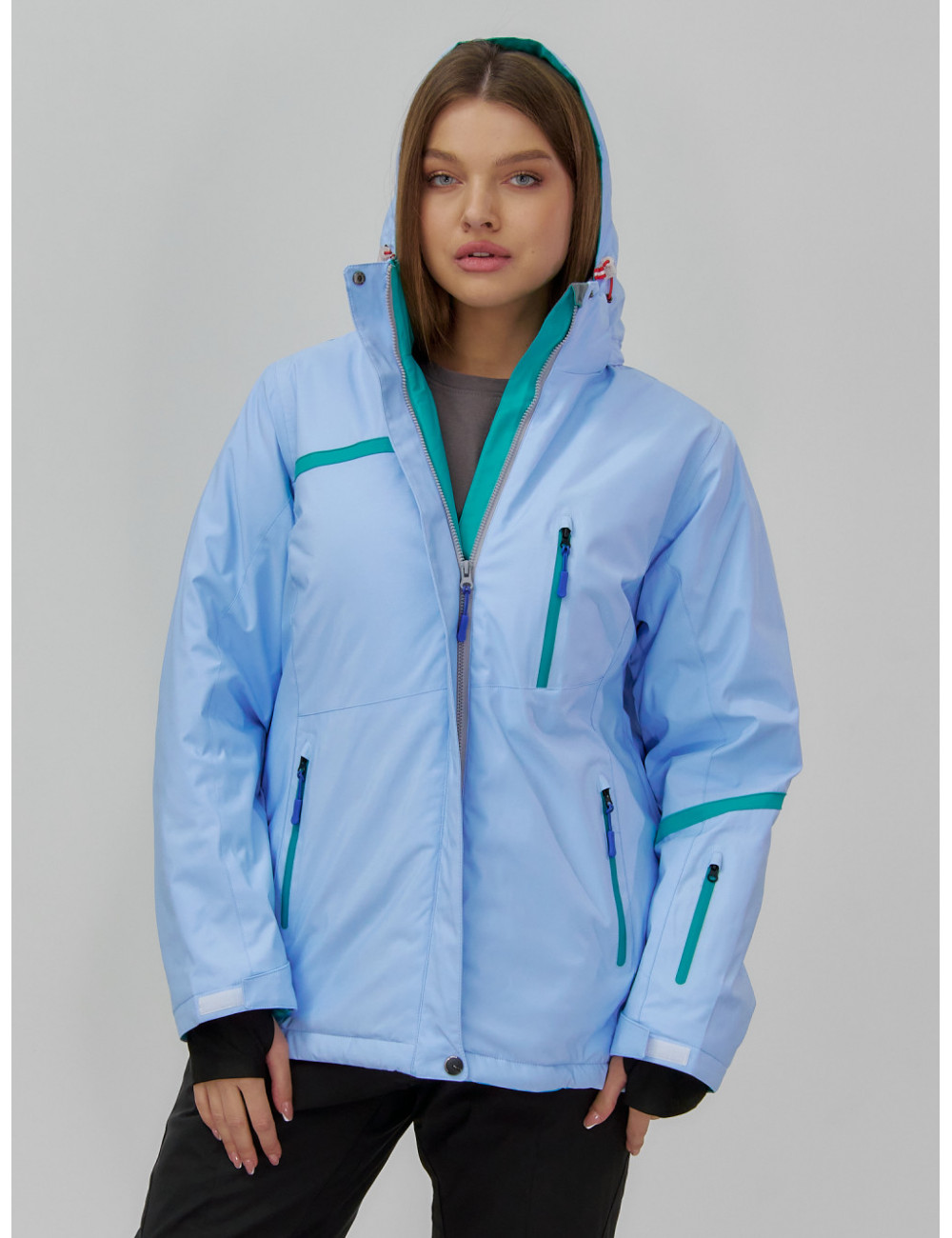 Сочетайте этот костюм с тёплыми термобельём и термоносками для максимального комфорта и защиты от холода. А стильный дизайн позволит вам не только покорять горные склоны, но и выделяться среди других любителей зимних видов спорта. Доставка по Москве и Московской области Женский горнолыжный костюм большого размера, голубой.