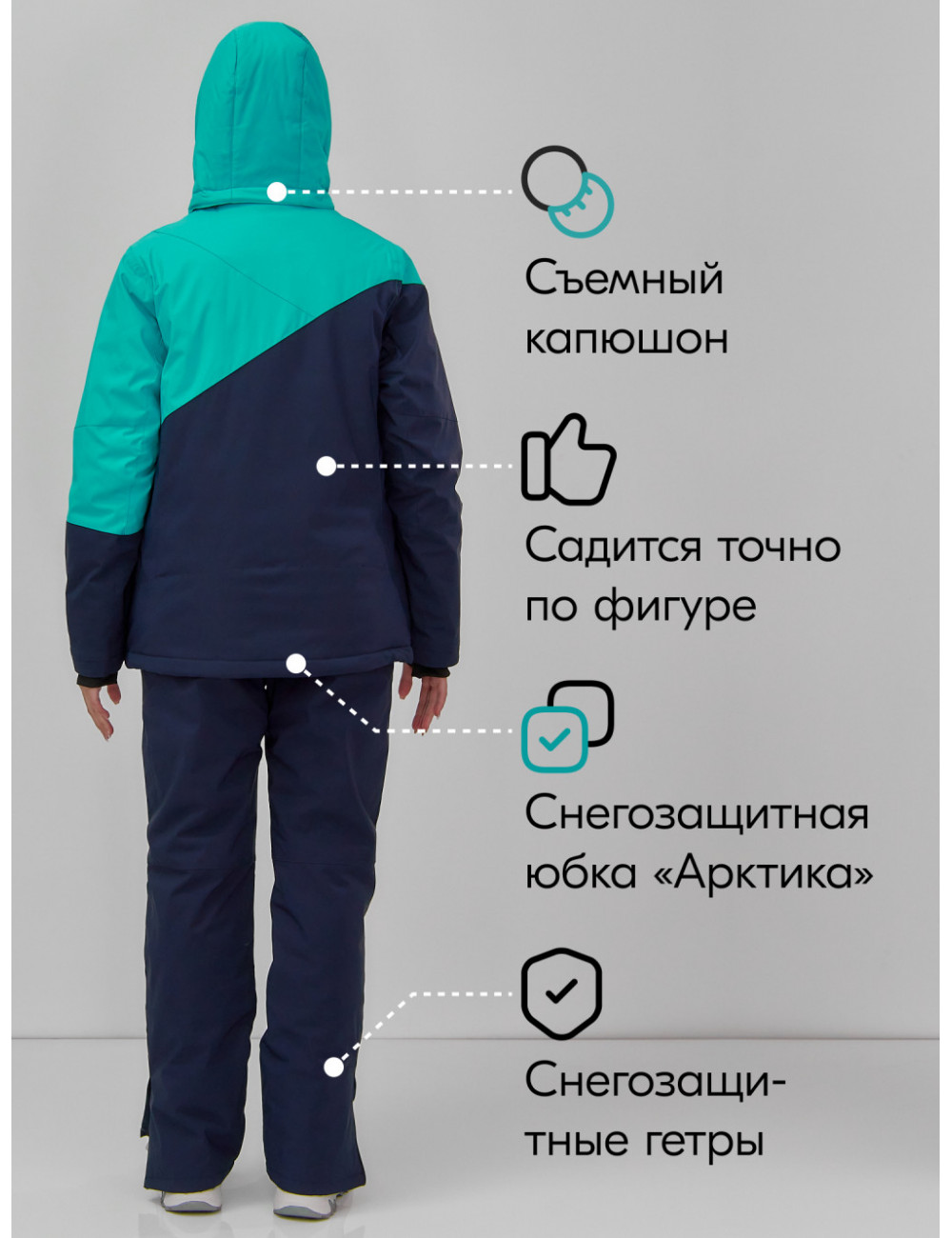 Горнолыжный костюм от Ketsi — это идеальный выбор для любителей зимних видов спорта. Он сочетает в себе стиль, функциональность и комфорт, обеспечивая уверенность и удовольствие на склоне. Доставка Женский горнолыжный костюм бирюзового цвета, зимний. по Тюмени и Тюменской области СДЭК