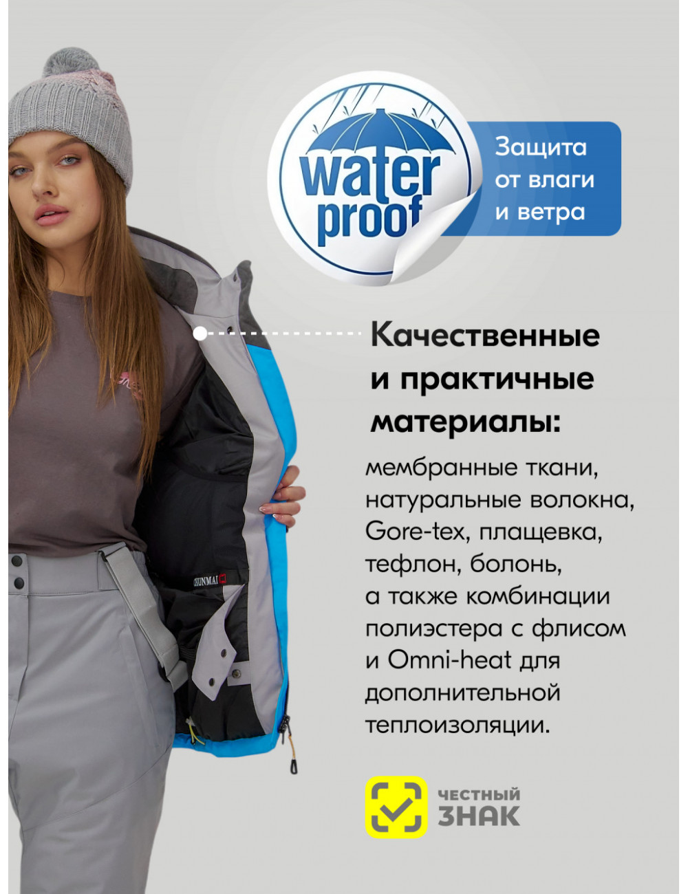 - Внешняя плотная мембранная ткань с водоотталкивающим эффектом: защищает от влаги и снега, позволяя вам наслаждаться катанием в любых условиях.