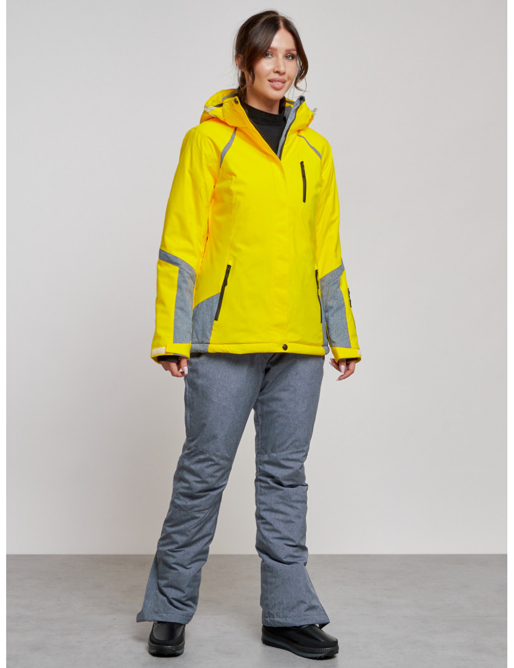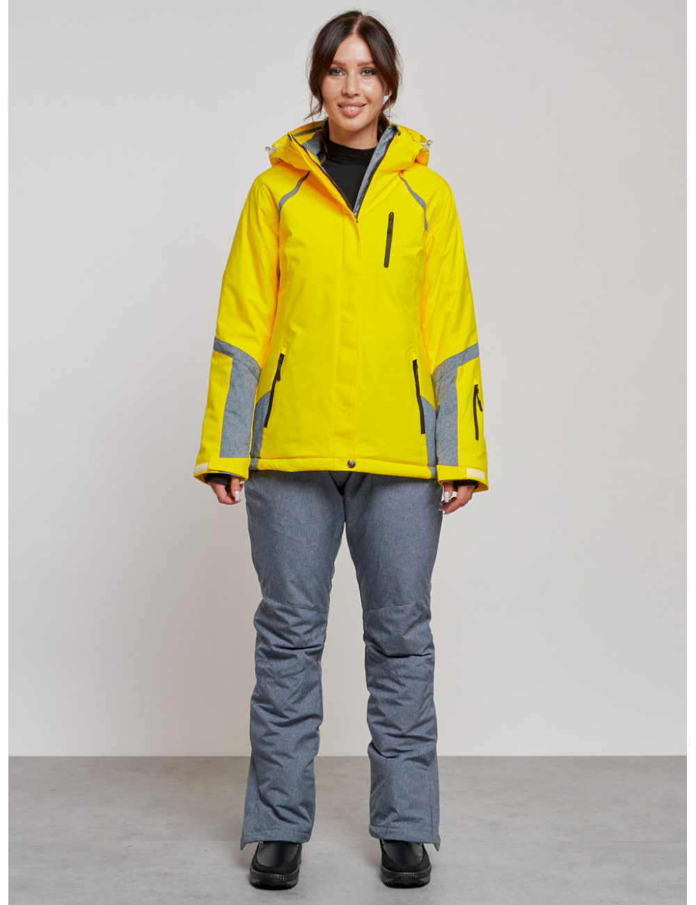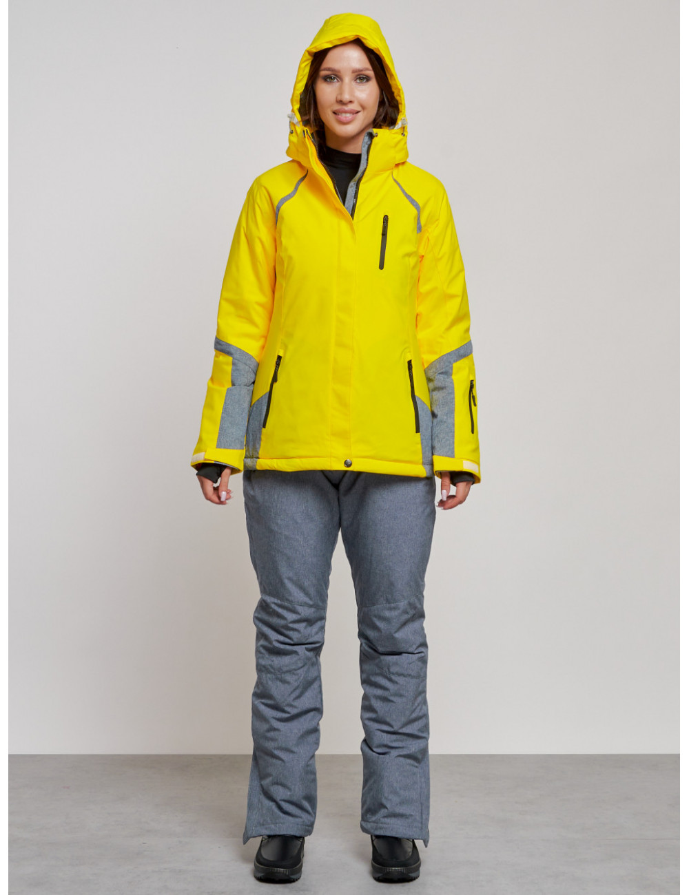 Костюм оснащён съёмным регулируемым капюшоном, высоким воротником с защитой для подбородка, вентиляционными отверстиями под рукавами и множеством карманов для хранения необходимых вещей. Доставка Женский горнолыжный костюм зимний жёлтый, для спорта. по Тюмени и Тюменской области СДЭК