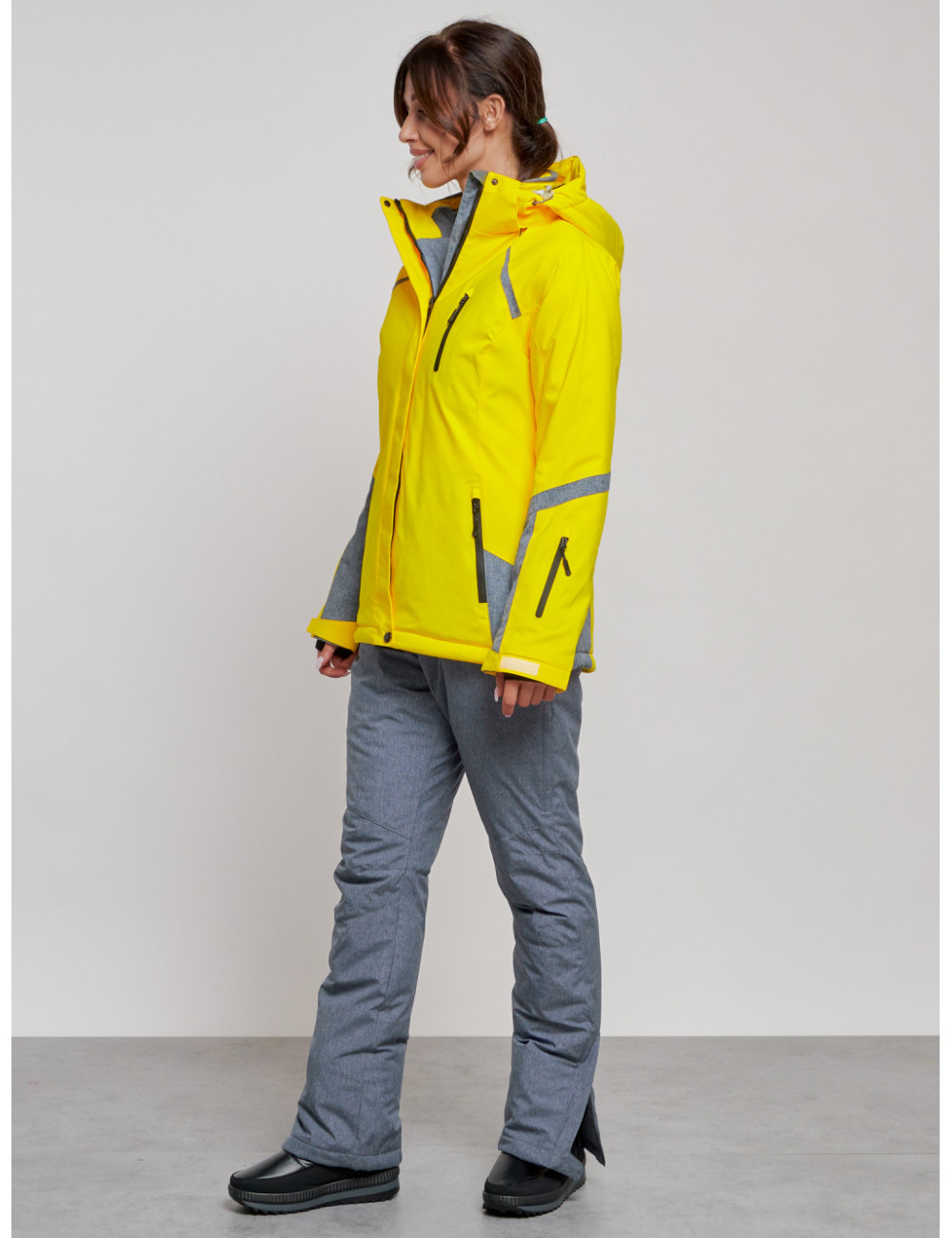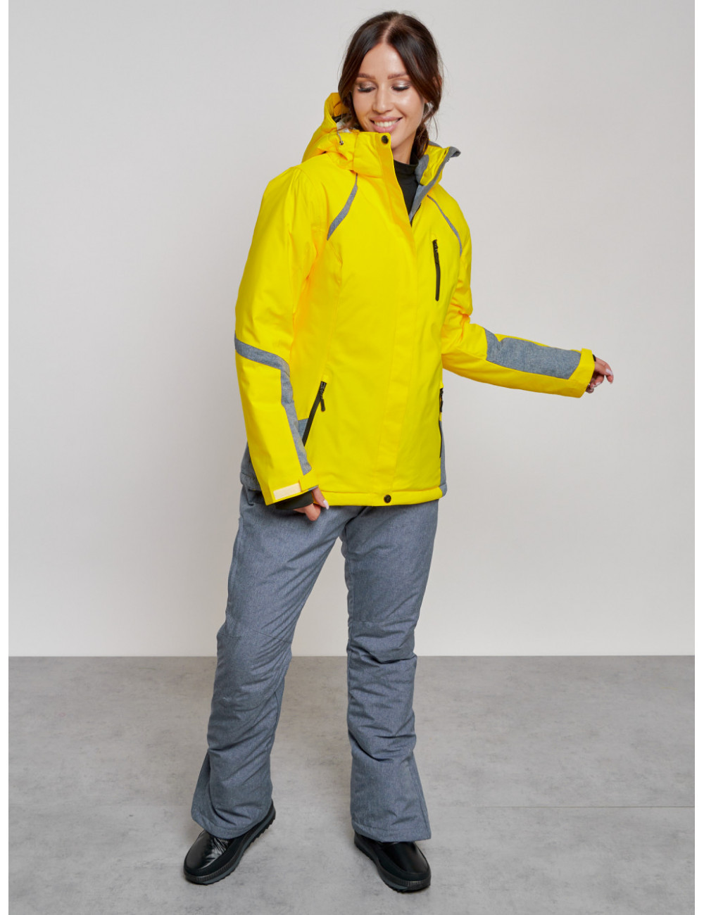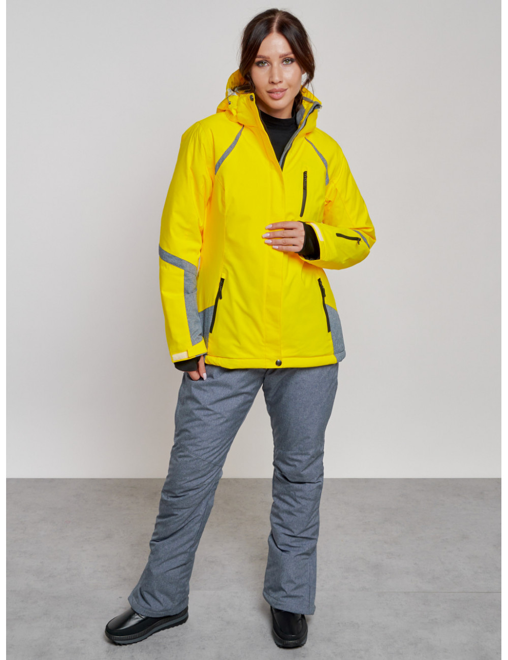 Костюм оснащён съёмным регулируемым капюшоном, высоким воротником с защитой для подбородка, вентиляционными отверстиями под рукавами и множеством карманов для хранения необходимых вещей. Доставка Женский горнолыжный костюм зимний жёлтый, для спорта. по Тюмени и Тюменской области СДЭК