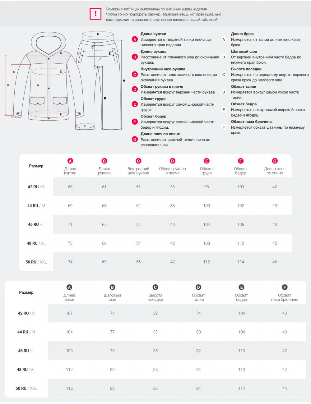 | Фиксаторы | На капюшоне, по низу куртки, на рукавах, по низу брюк |