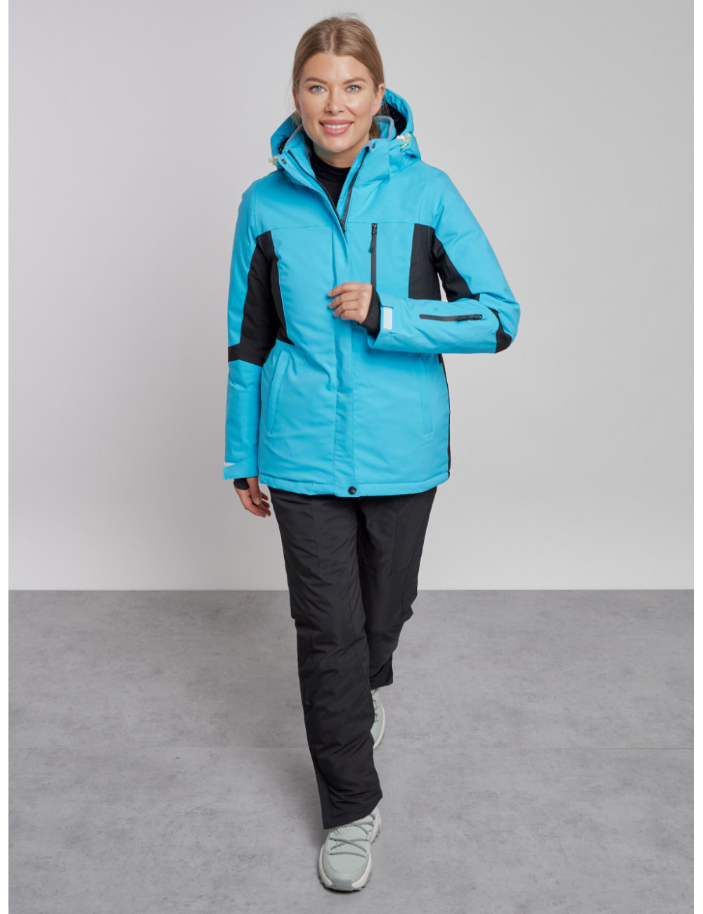 Перед тем как надеть комплект в первый раз, рекомендуется его отпарить для более опрятного вида. Доставка по Москве и Московской области Женский горнолыжный костюм голубой.