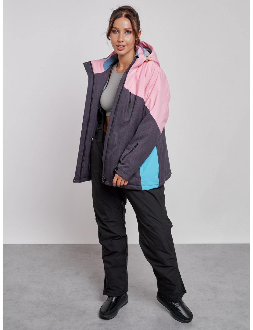 Женский горнолыжный костюм розового цвета большого размера для зимы