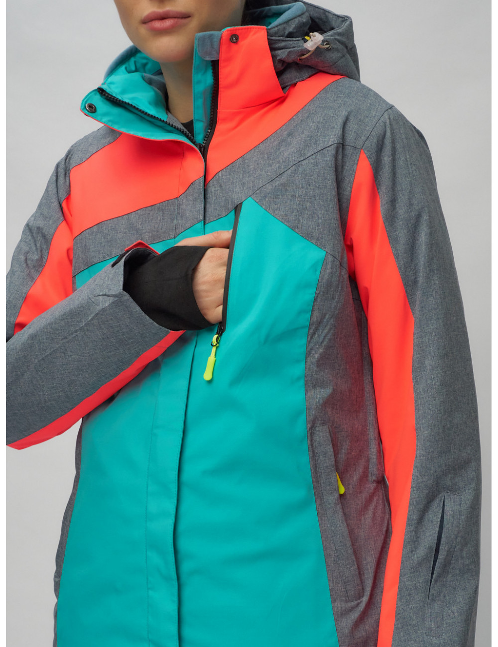 - Шесть карманов: кармашек для ски-пасса на левом рукаве, боковые прорезные карманы на кнопках, нагрудный кармашек на молнии, внутренние карманы.