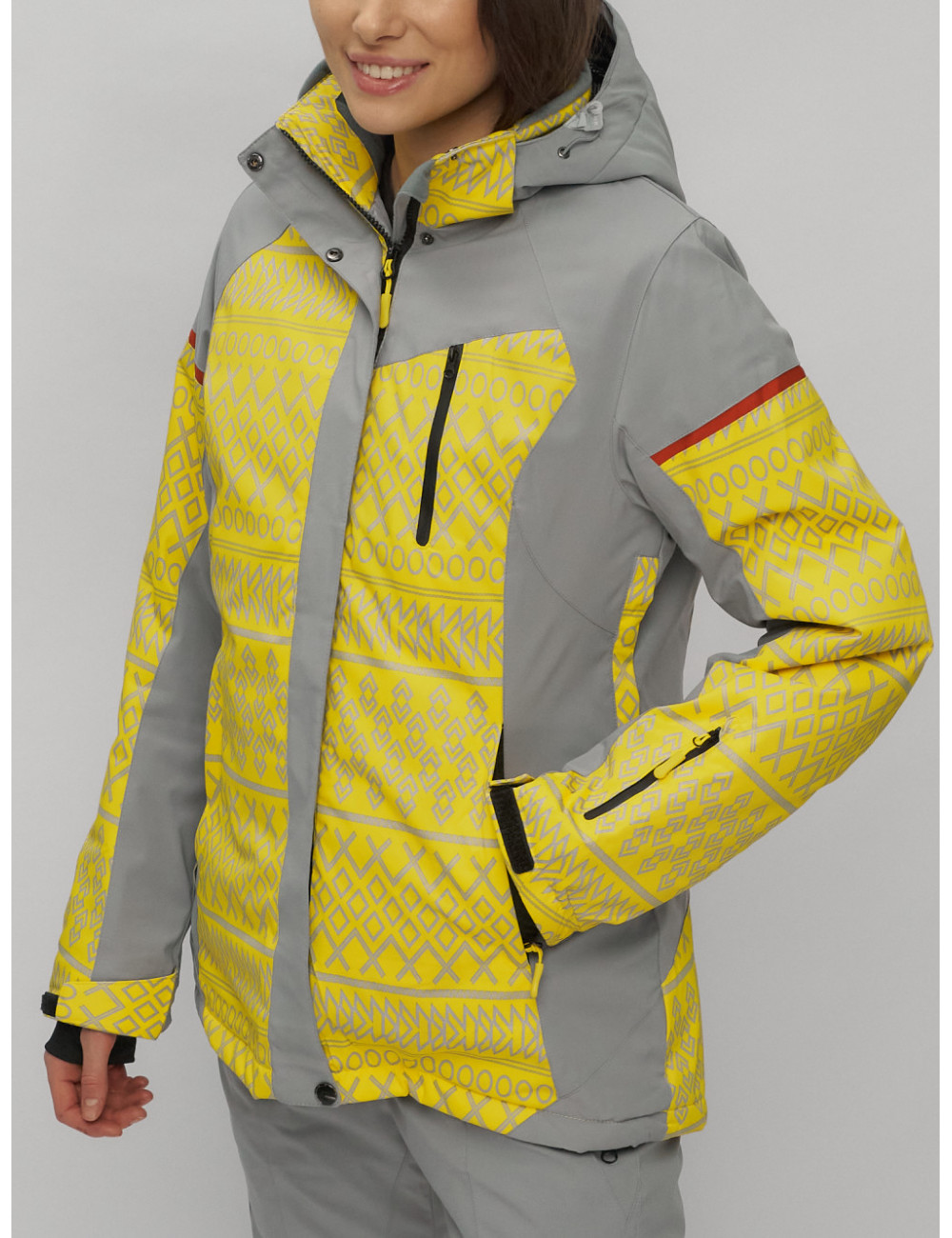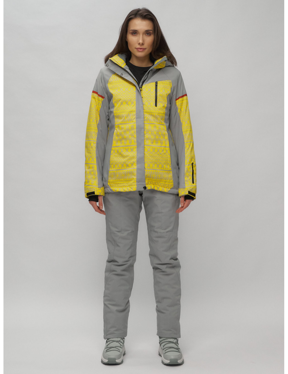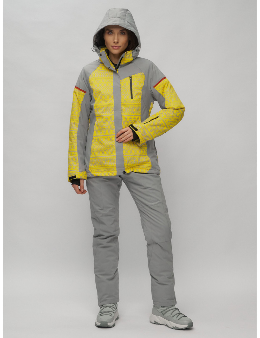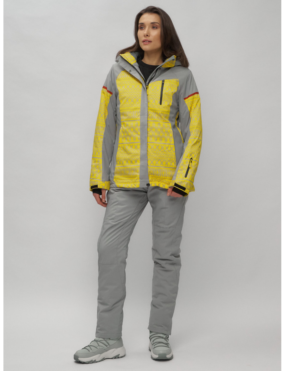 Верхняя одежда для зимних активностей: горнолыжный комплект включает в себя удобные брюки с бретелями и стильную куртку с геометрическим принтом. Идеален для любителей зимних видов спорта и активного отдыха.