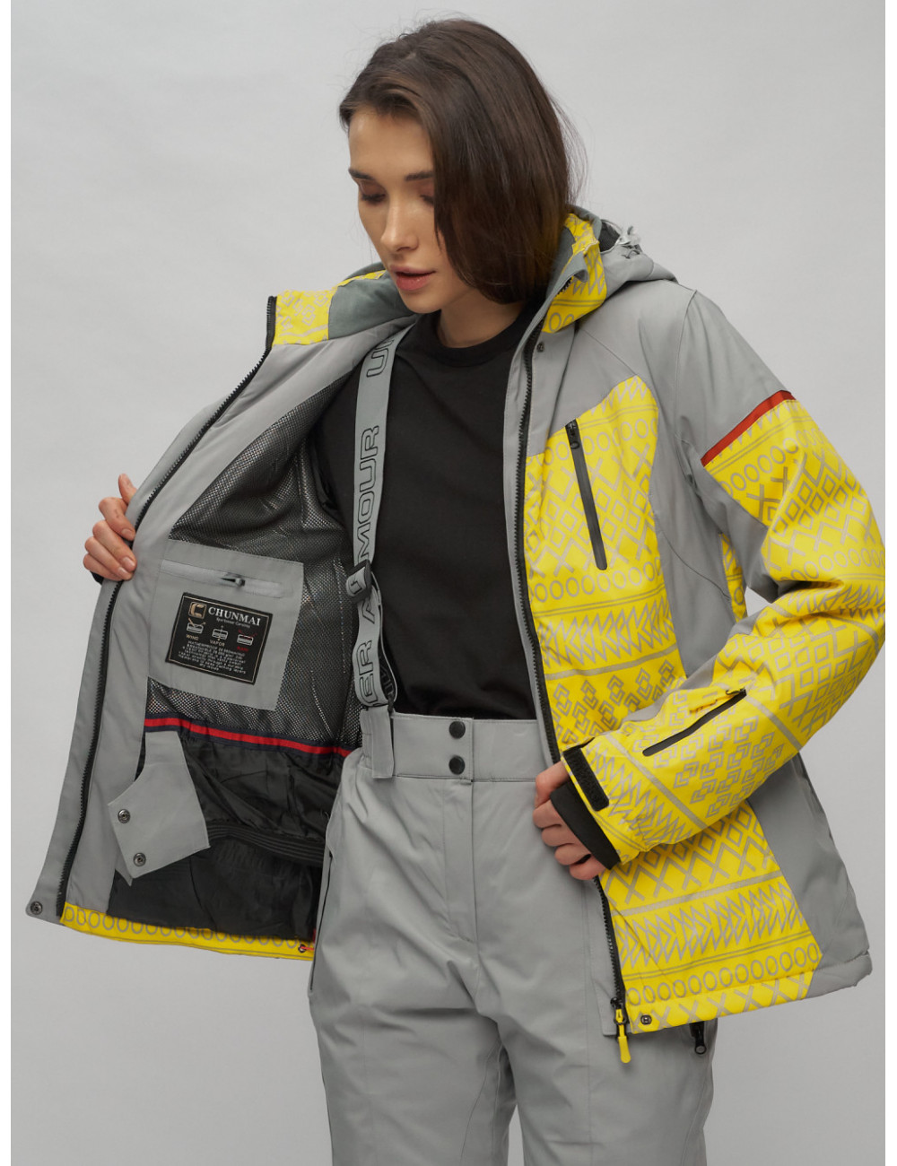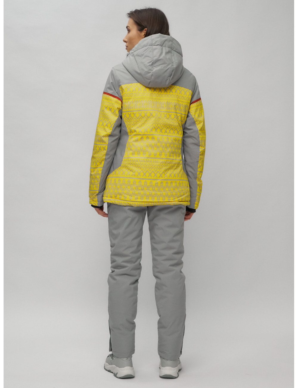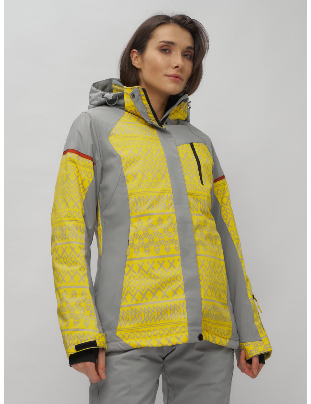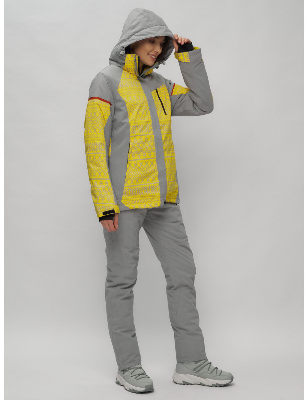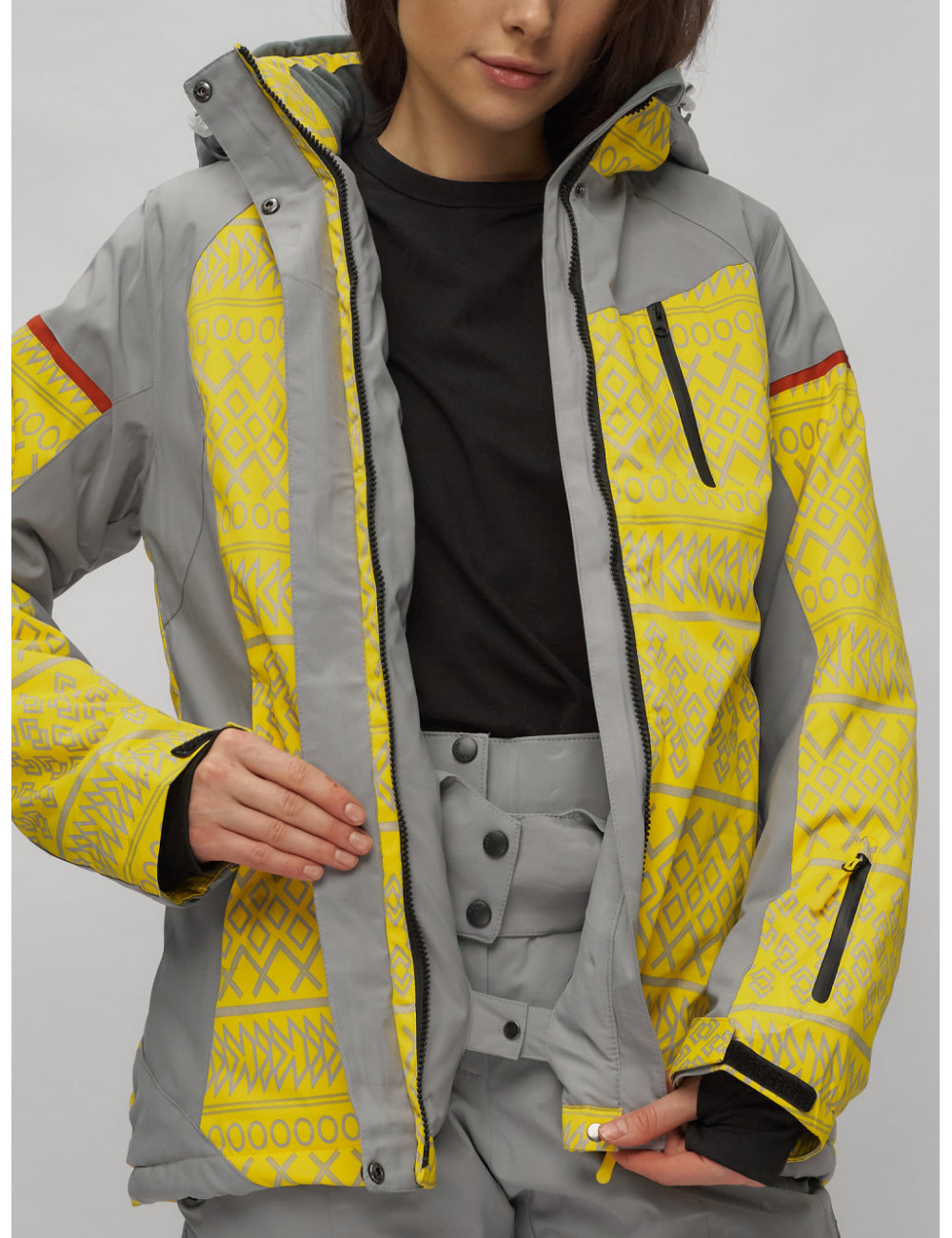 Верхняя одежда для зимних активностей: горнолыжный комплект включает в себя удобные брюки с бретелями и стильную куртку с геометрическим принтом. Идеален для любителей зимних видов спорта и активного отдыха.