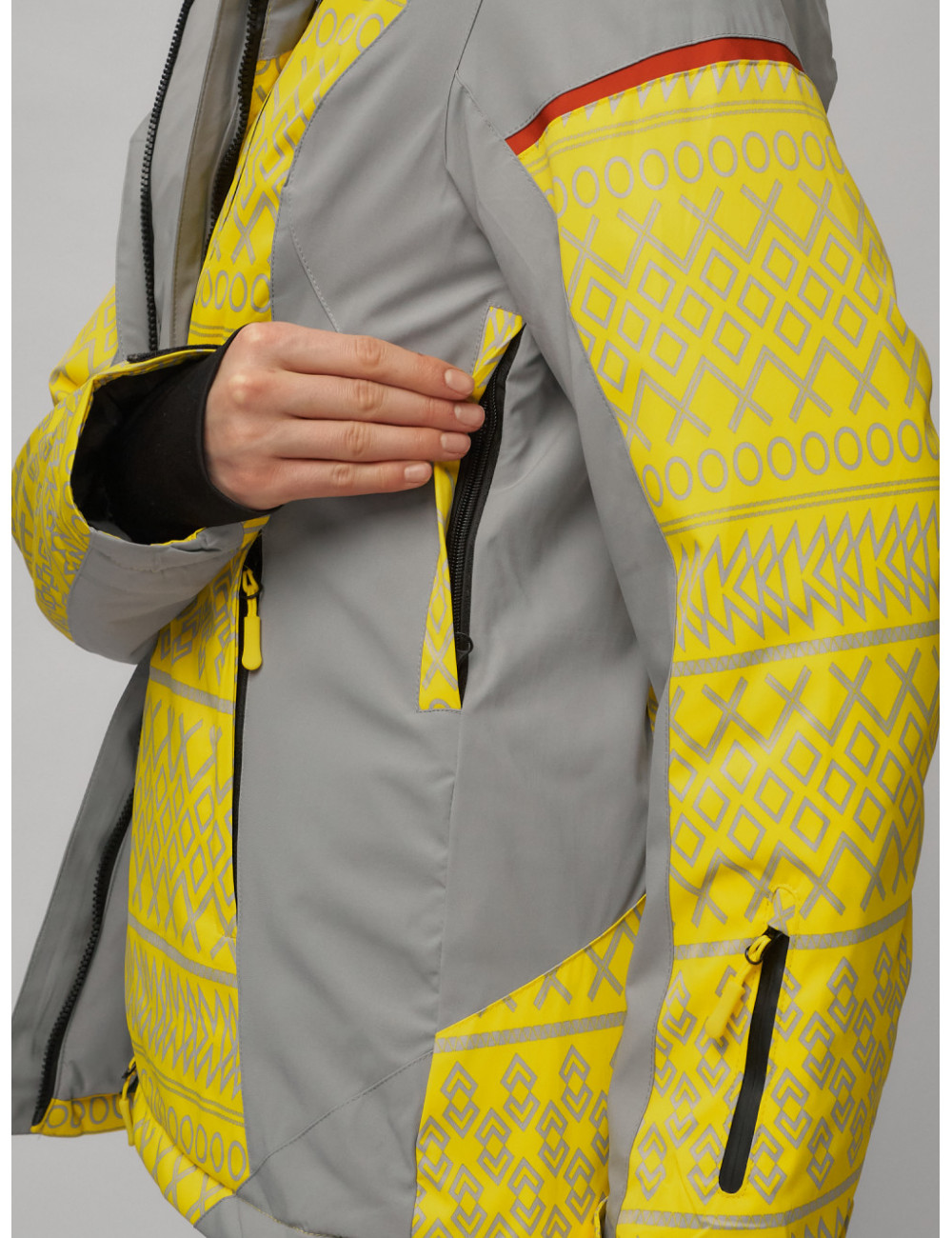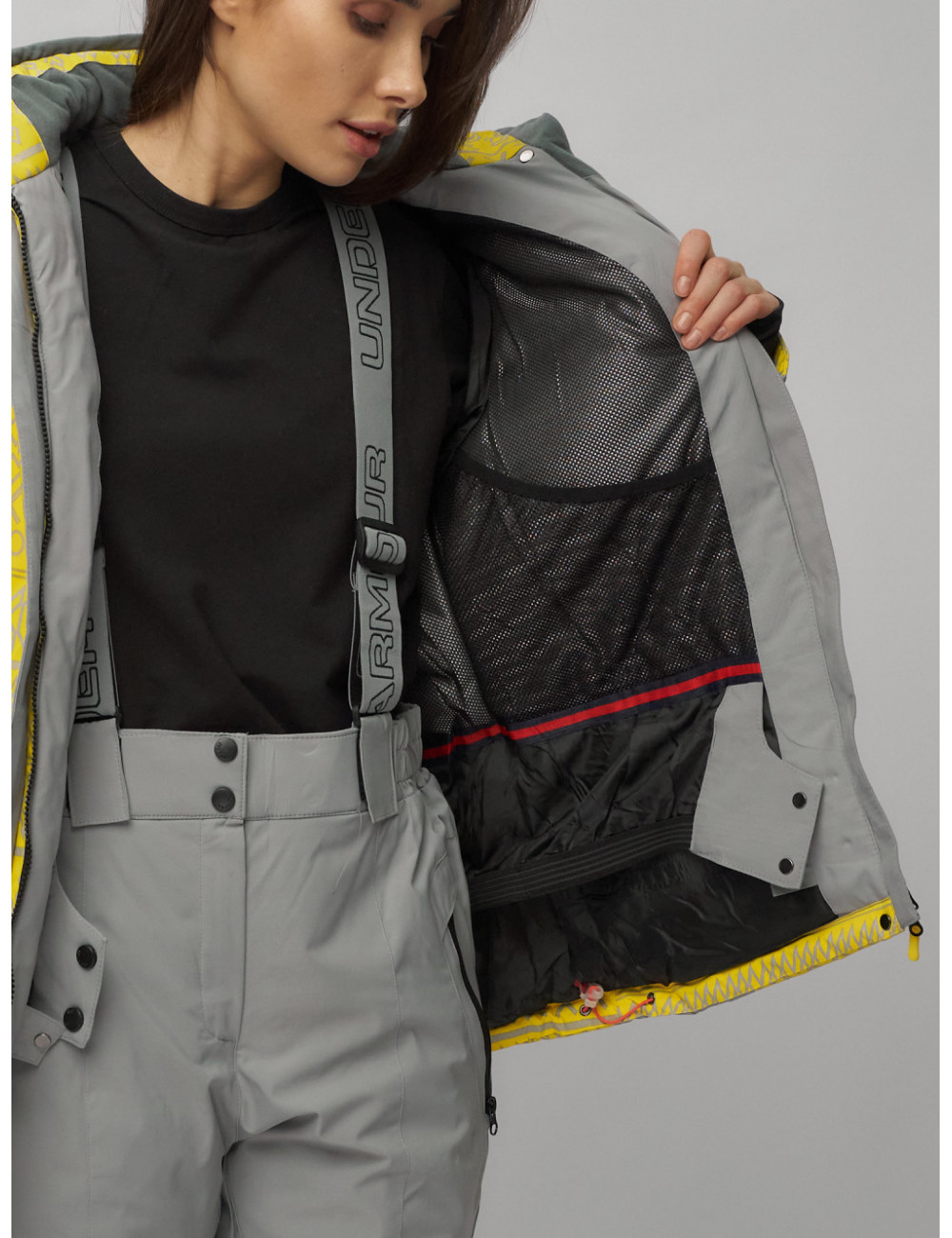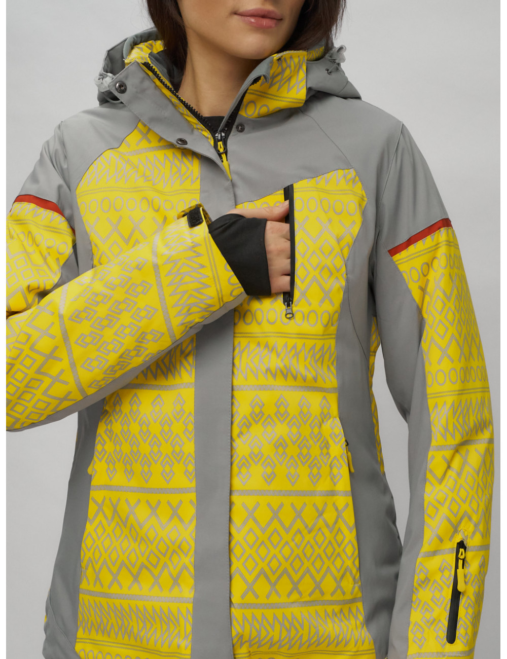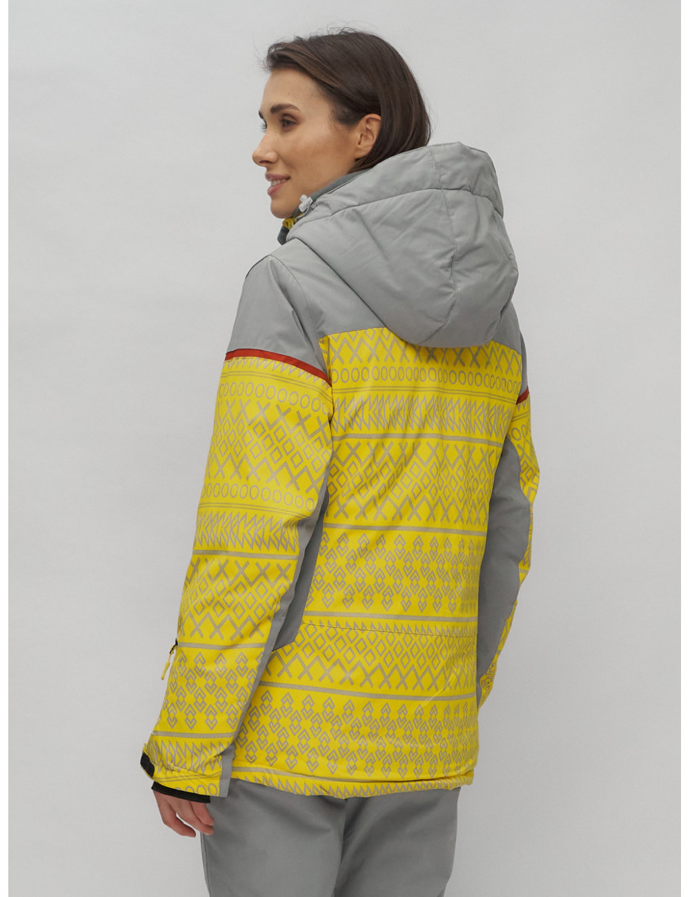 Верхняя одежда для зимних активностей: горнолыжный комплект включает в себя удобные брюки с бретелями и стильную куртку с геометрическим принтом. Идеален для любителей зимних видов спорта и активного отдыха.