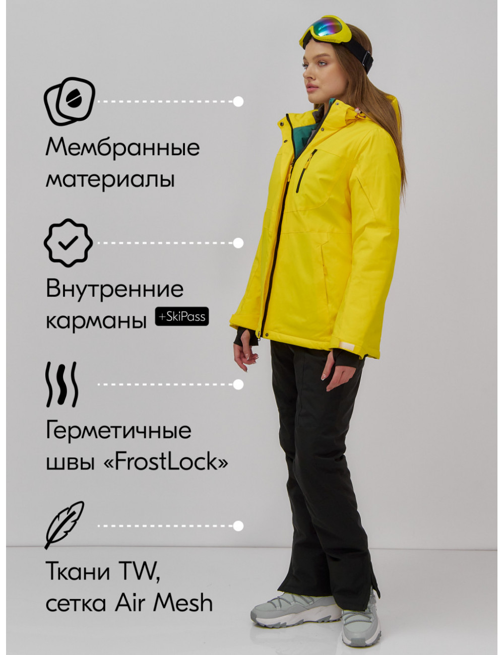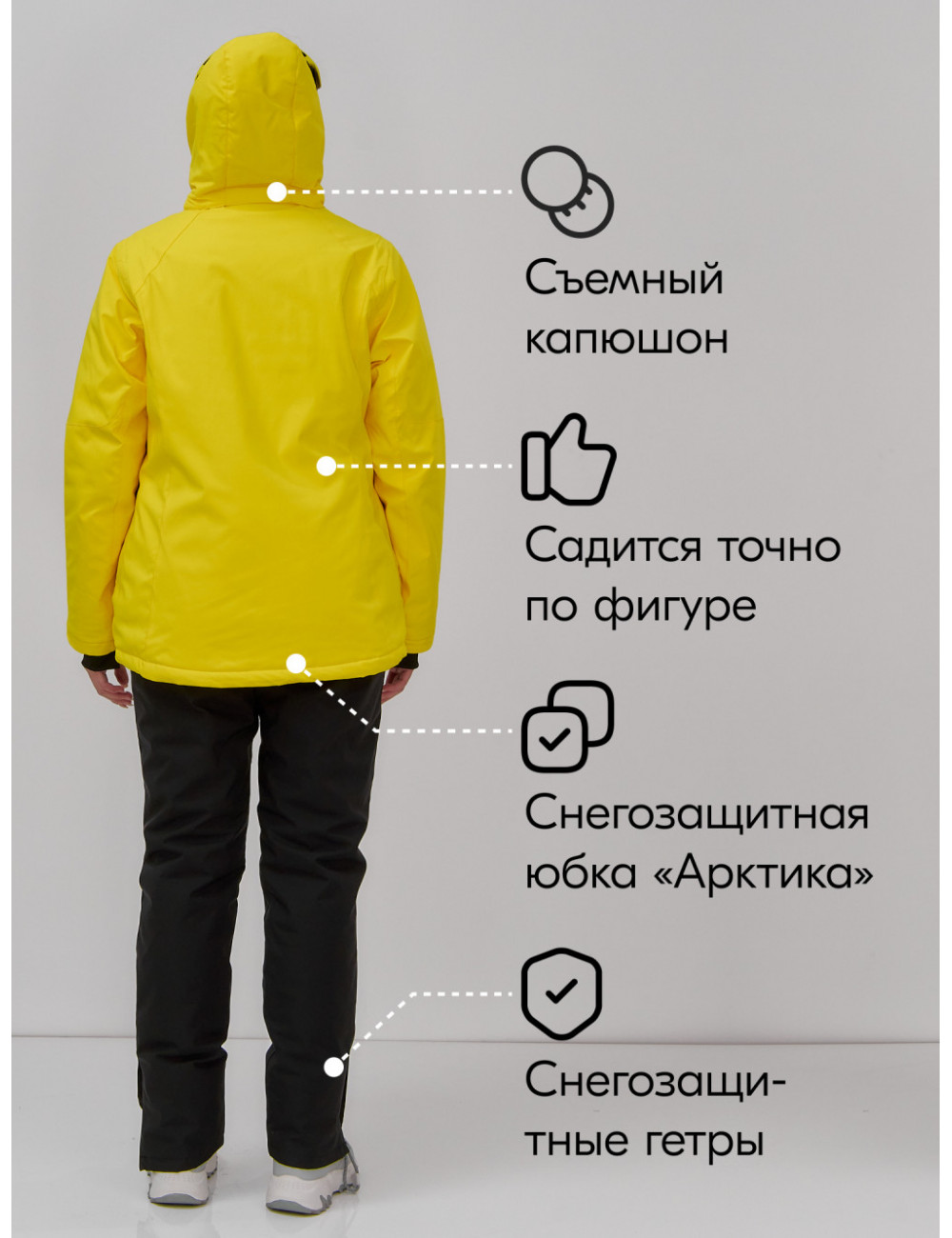 Костюм легко комбинируется с любыми аксессуарами, что позволяет вам создавать уникальный образ на склонах. Вы можете использовать нагрудные и боковые карманы для хранения мелочей, а специальный карман для очков — чтобы ваши аксессуары всегда были под рукой. Доставка Женский горнолыжный костюм зимний жёлтый для зимних видов спорта по Тюмени и Тюменской области СДЭК