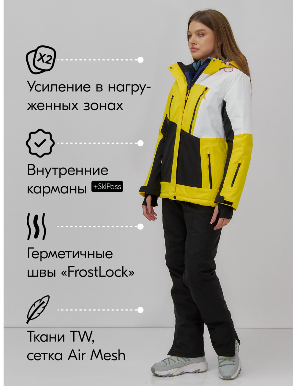 Технические характеристики Женский горнолыжный костюм зимний жёлтый