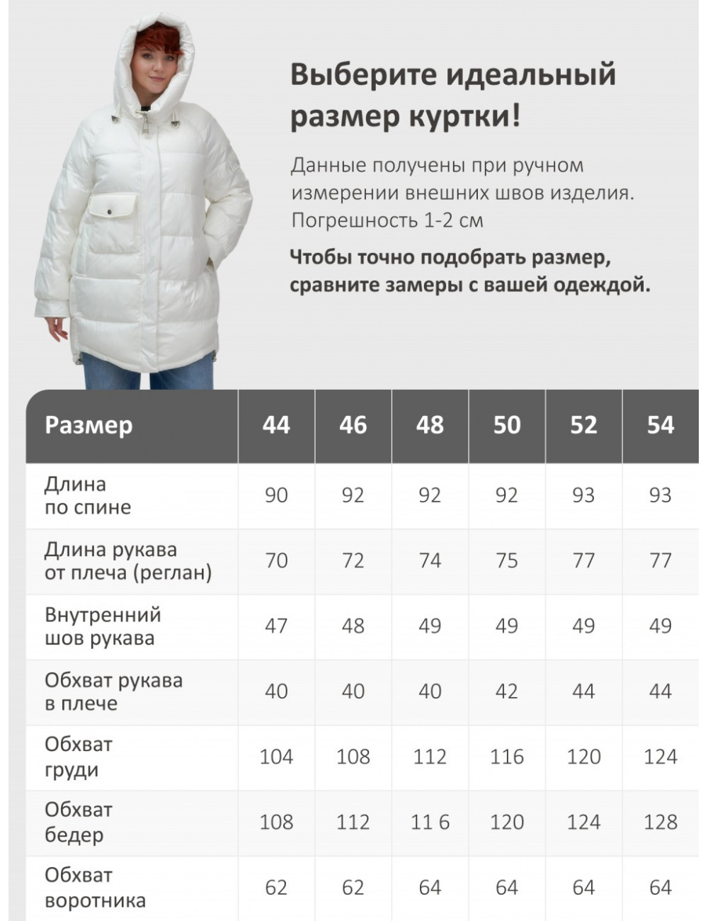 Пуховик «Тренд» создан для тех, кто ценит элегантность и тепло. Он подходит для женщин с разными фигурами (размеры от 44 до 54) и ростом (от 155 до 195 см).