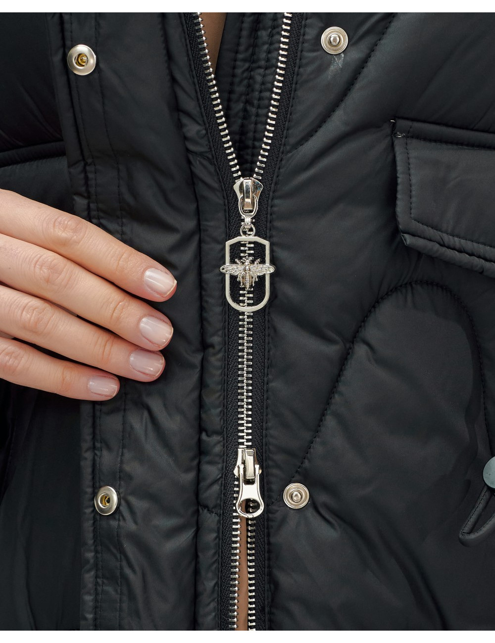 - Фиксаторы на капюшоне, по низу пуховика и около карманов для регулировки посадки и сохранения тепла.