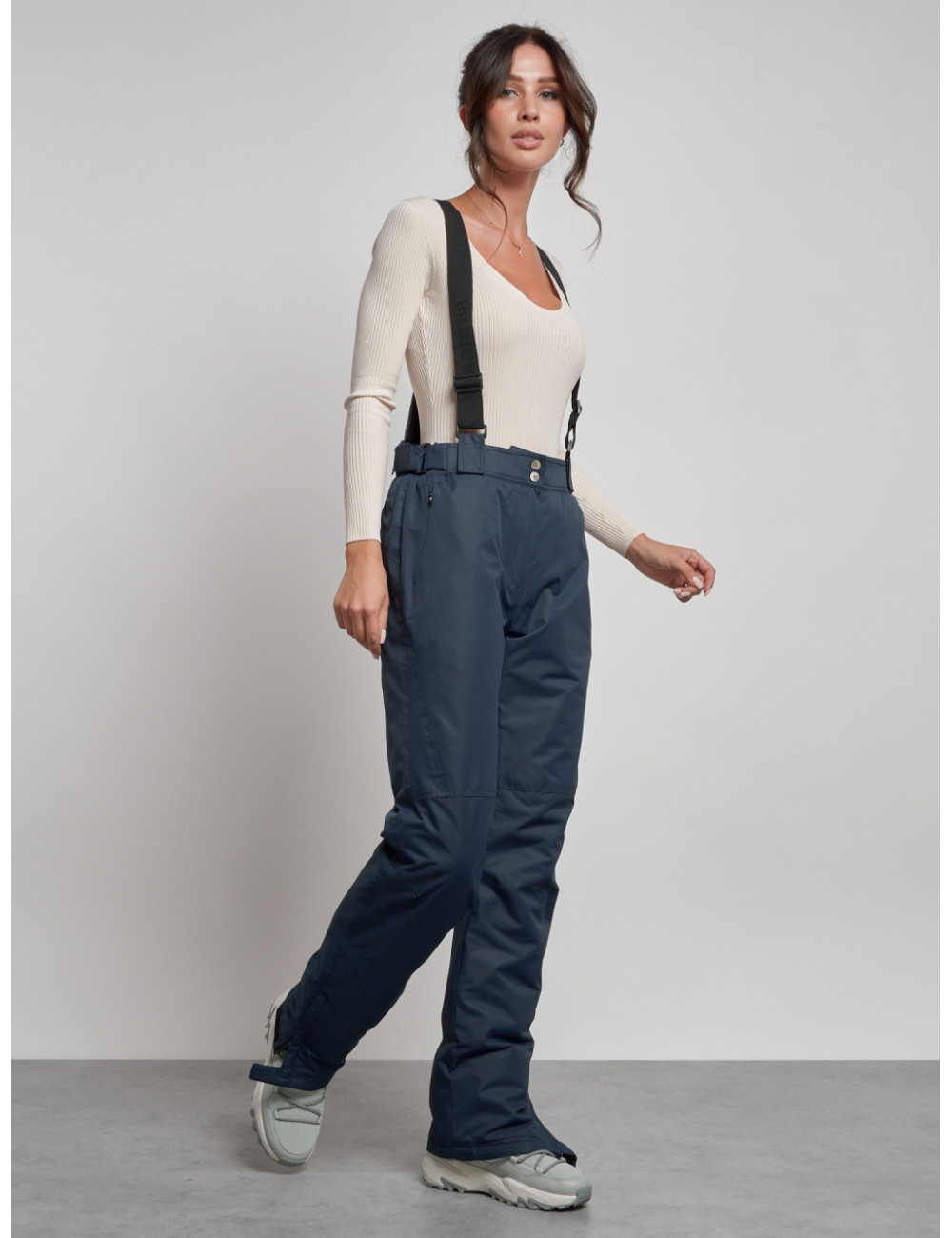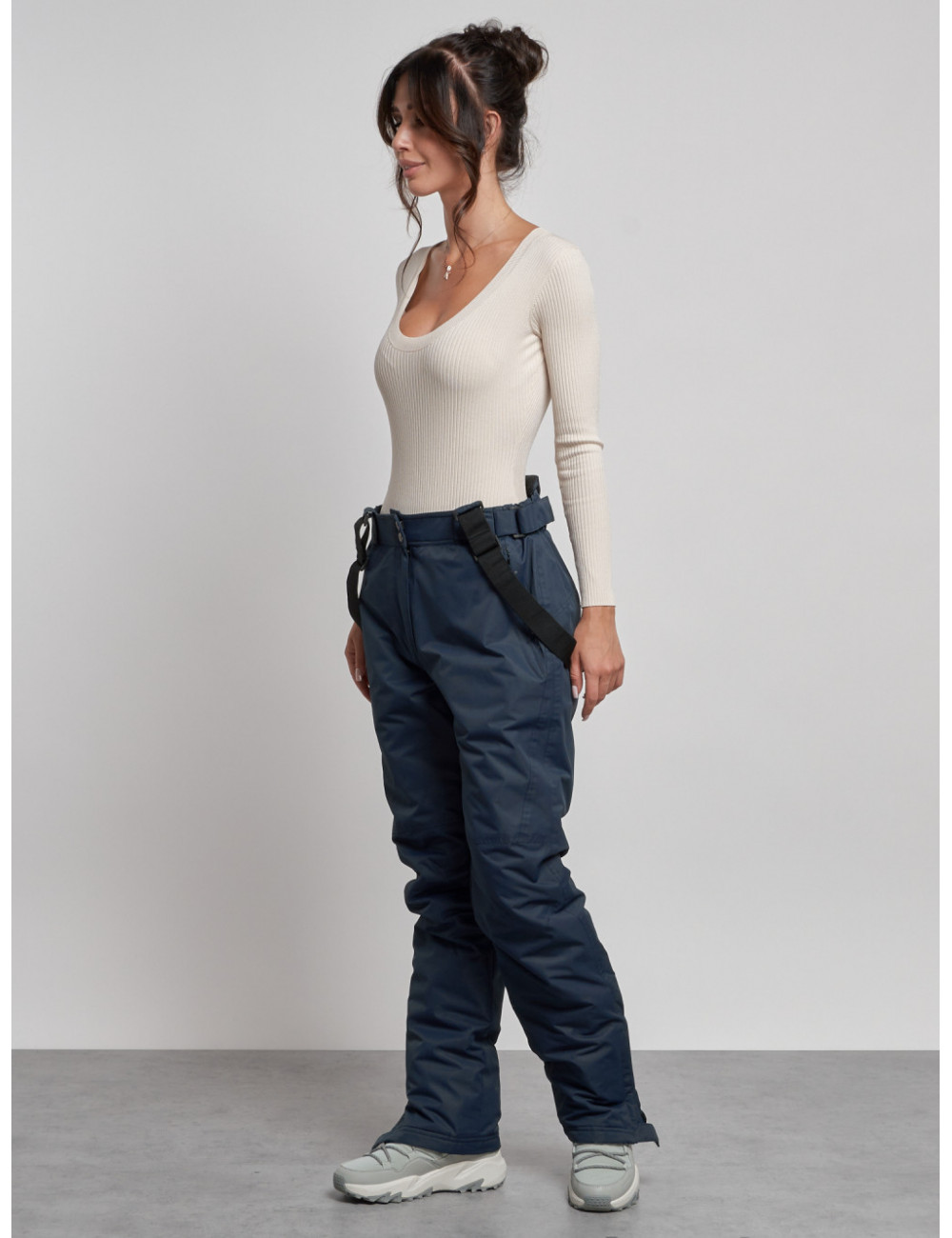 В нашем полукомбинезоне вы будете чувствовать комфорт и тепло при любых погодных условиях. Пусть зима радует вас яркими впечатлениями и комфортом в нашей тёплой и качественной одежде! Доставка по Москве и Московской области Зимний утеплённый горнолыжный полукомбинезон для женщин темно-синего цвета, брюки.