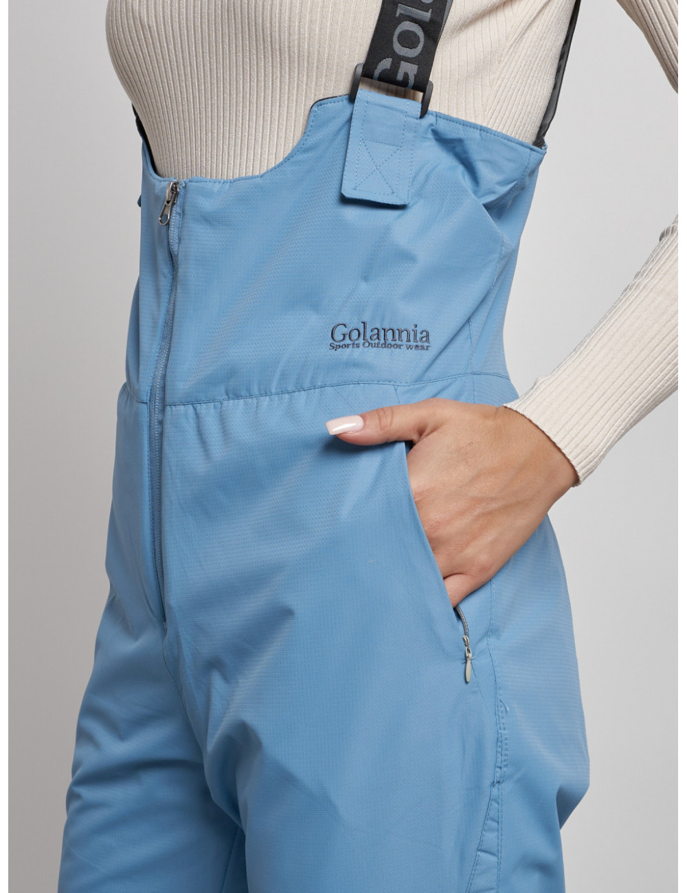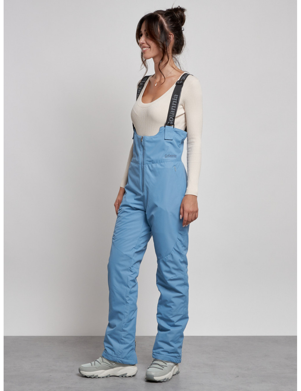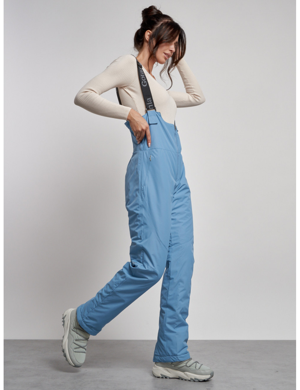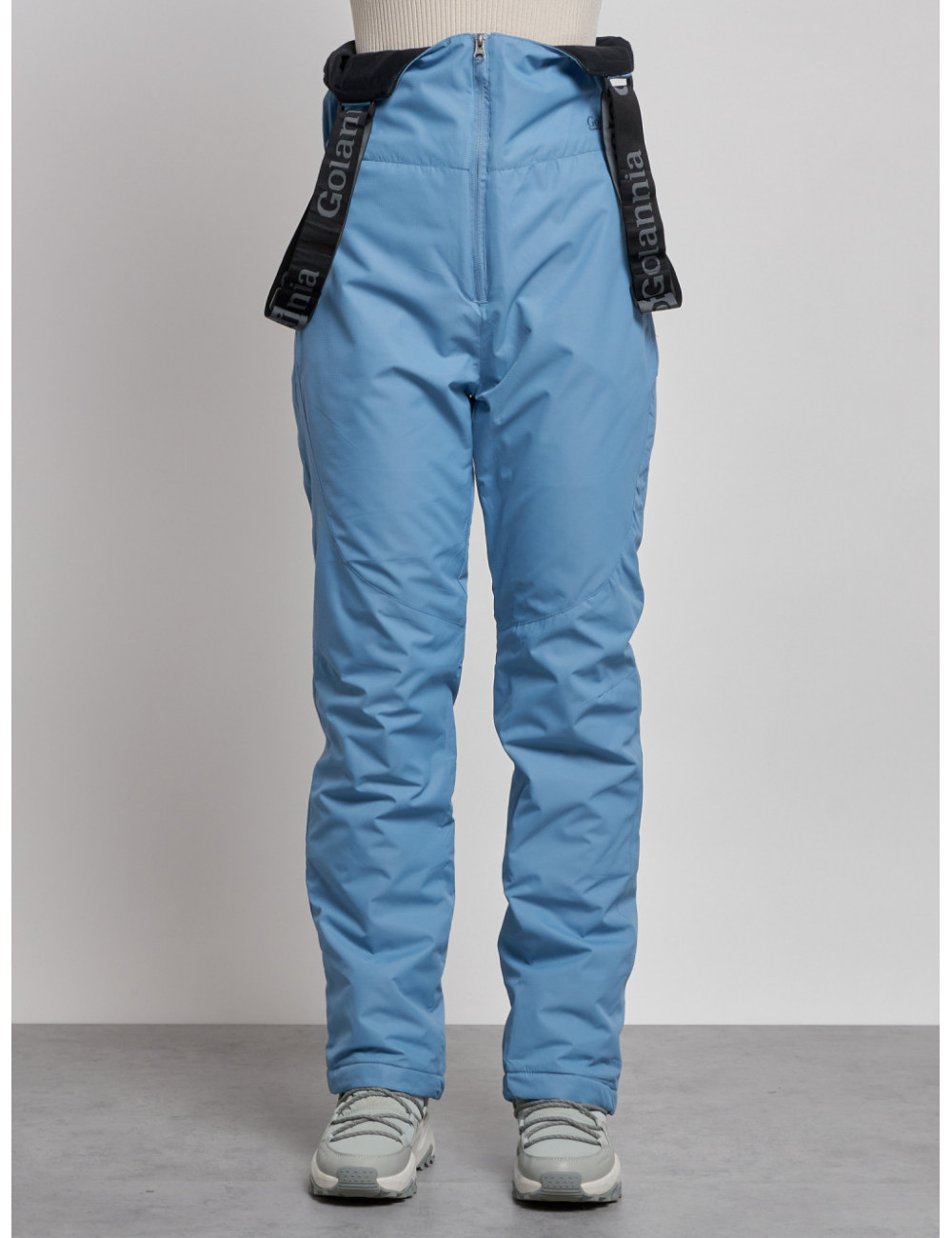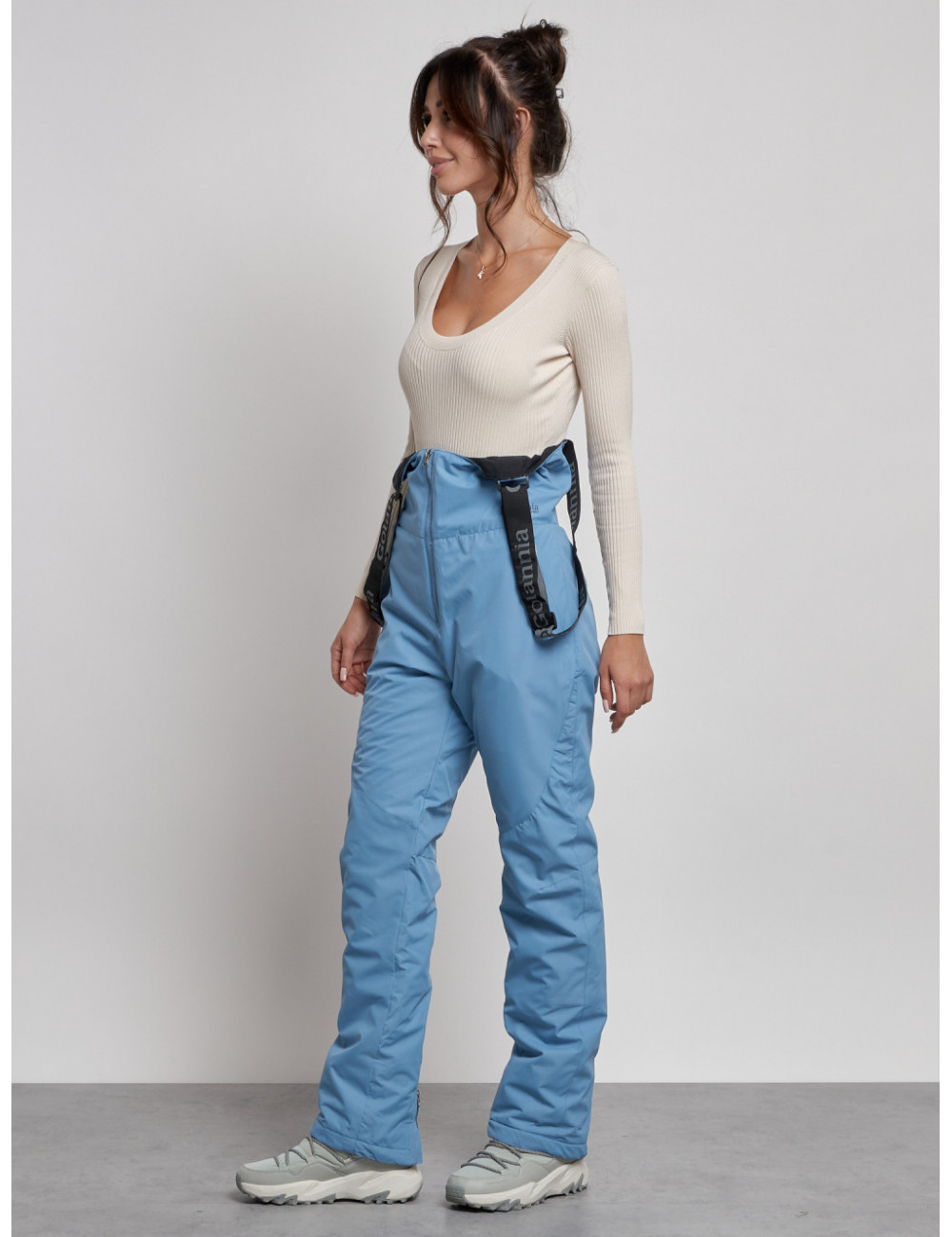 С нашим полукомбинезоном вы сможете наслаждаться зимними видами спорта и активным отдыхом, не отвлекаясь на холод и дискомфорт. Доставка по Москве и Московской области Женский зимний полукомбинезон с высокой посадкой, голубой, брюки для холодного времени года.