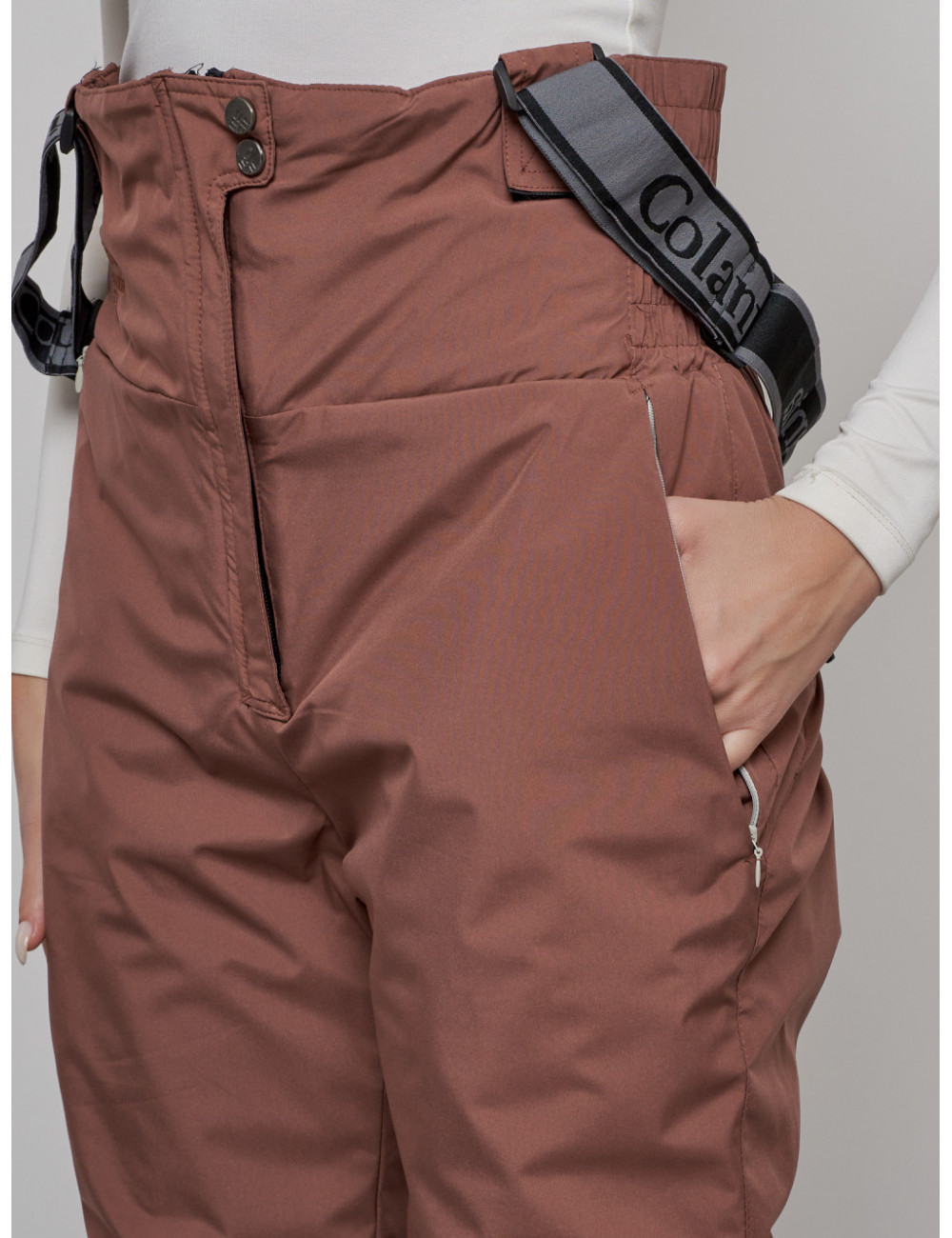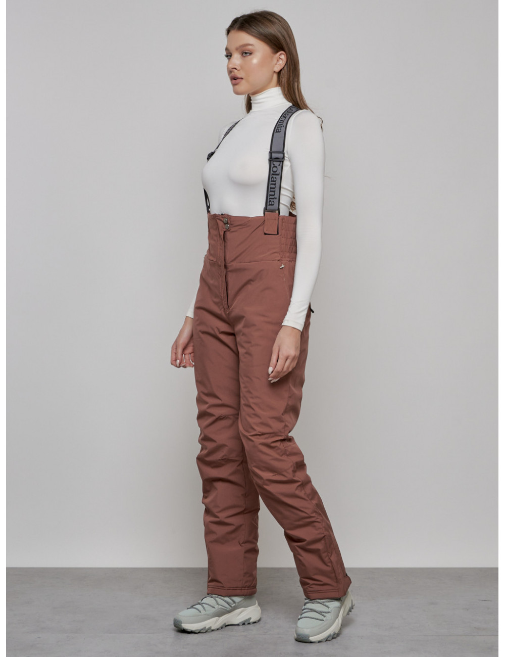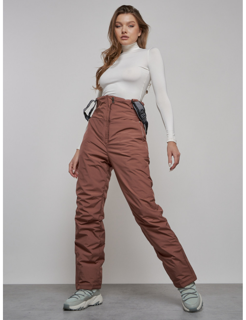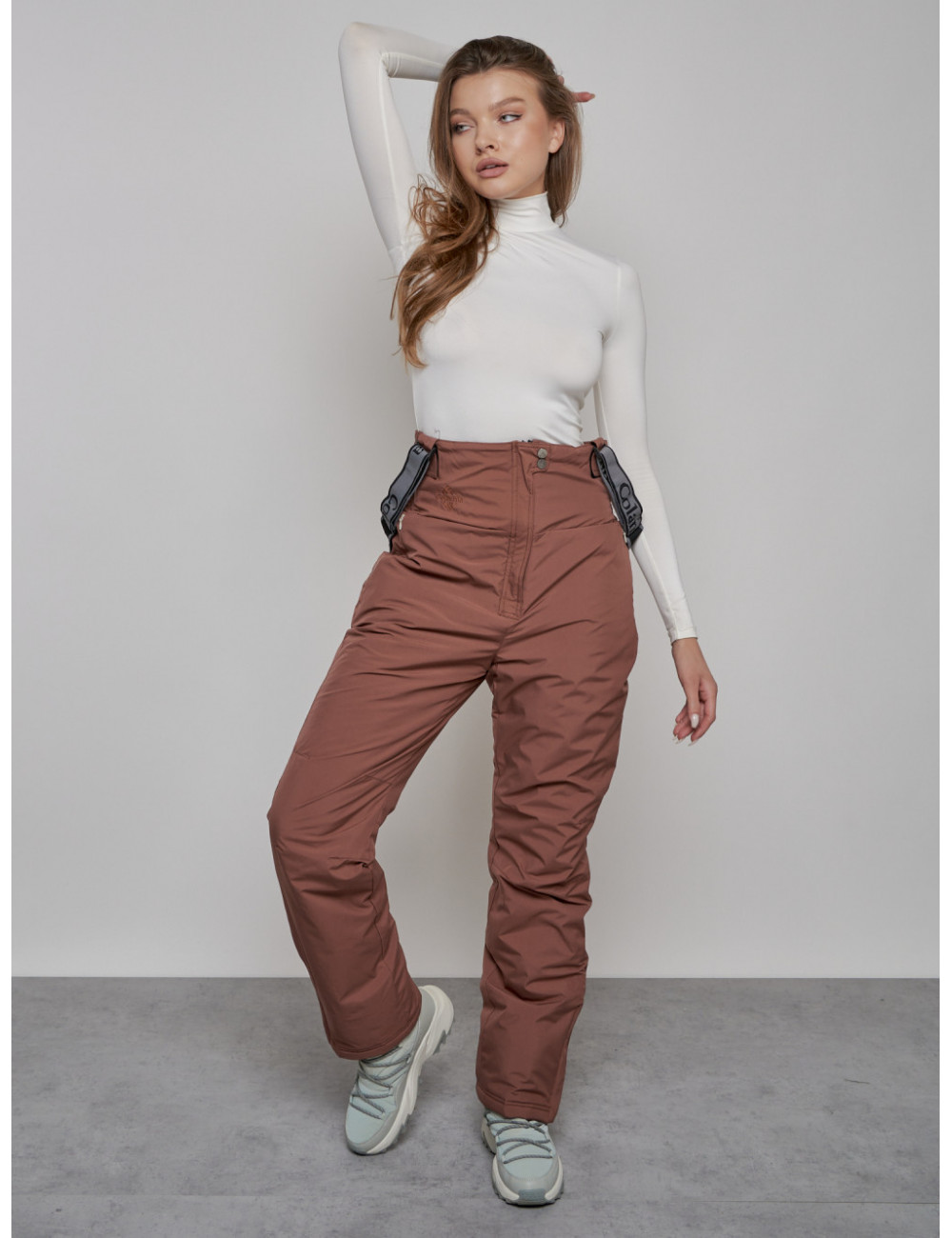 Наслаждайтесь зимними видами спорта в комфорте и тепле с нашими горнолыжными брюками-полукомбинезоном! Доставка по Москве и Московской области Женский зимний полукомбинезон с высокой посадкой коричневого цвета, брюки для зимних прогулок.