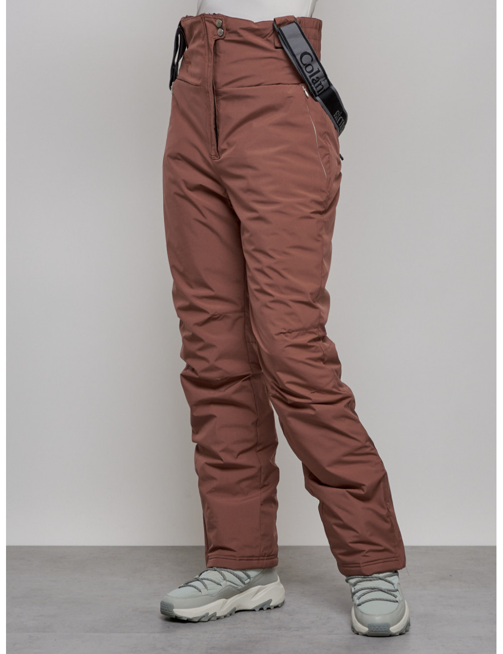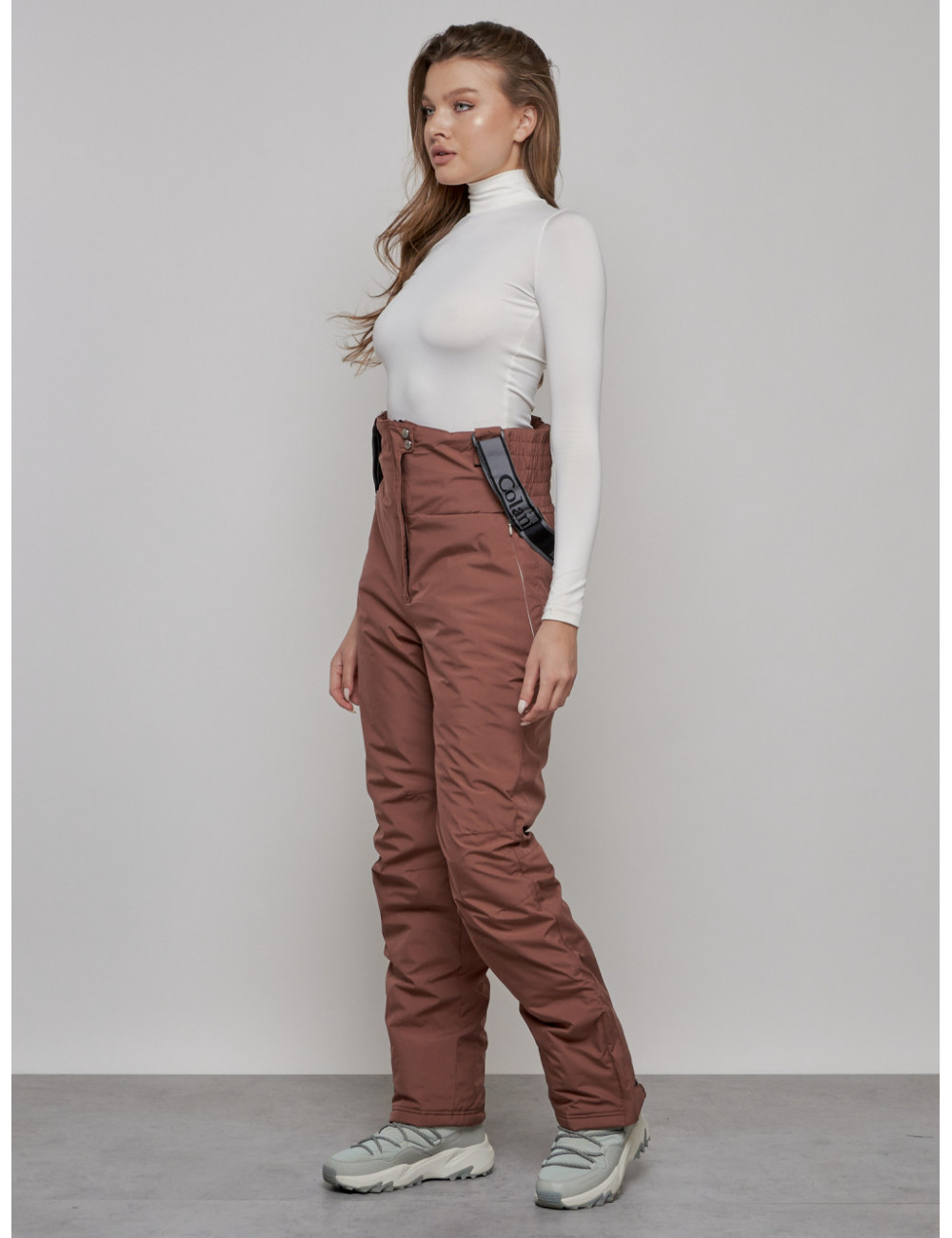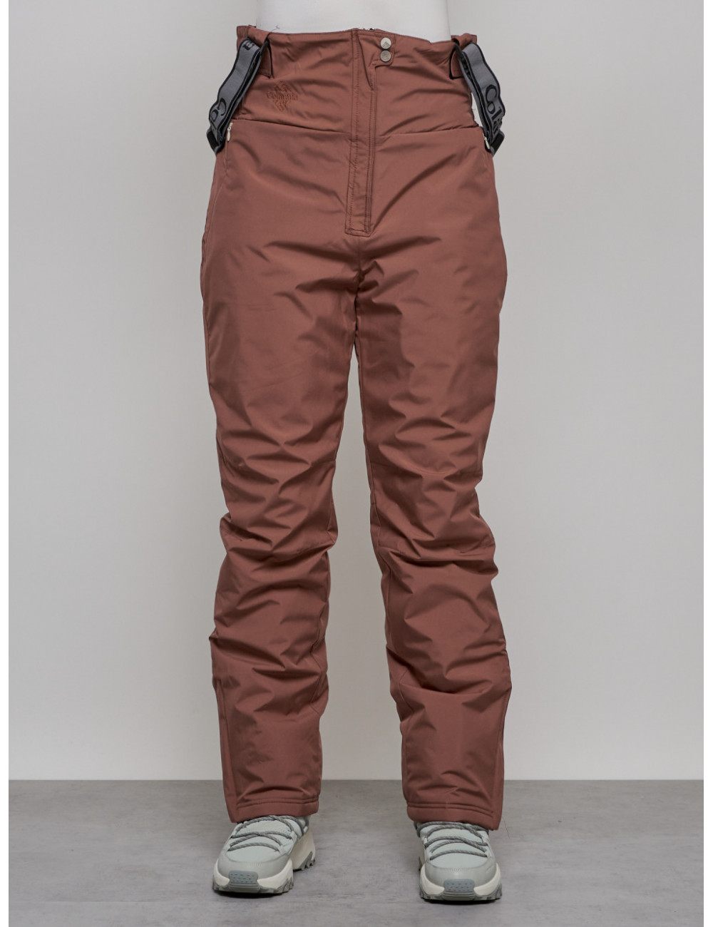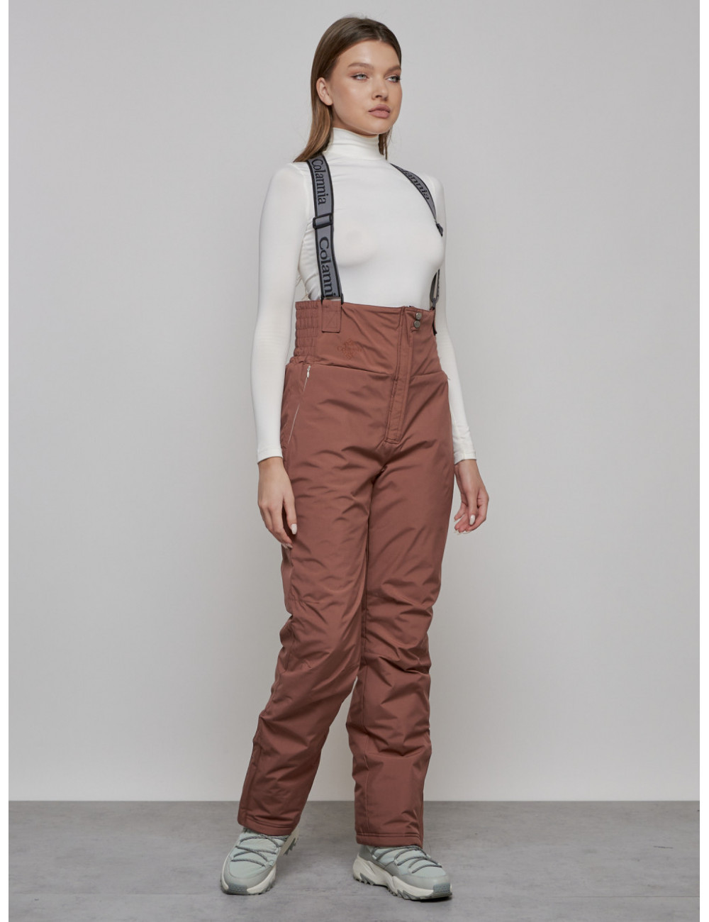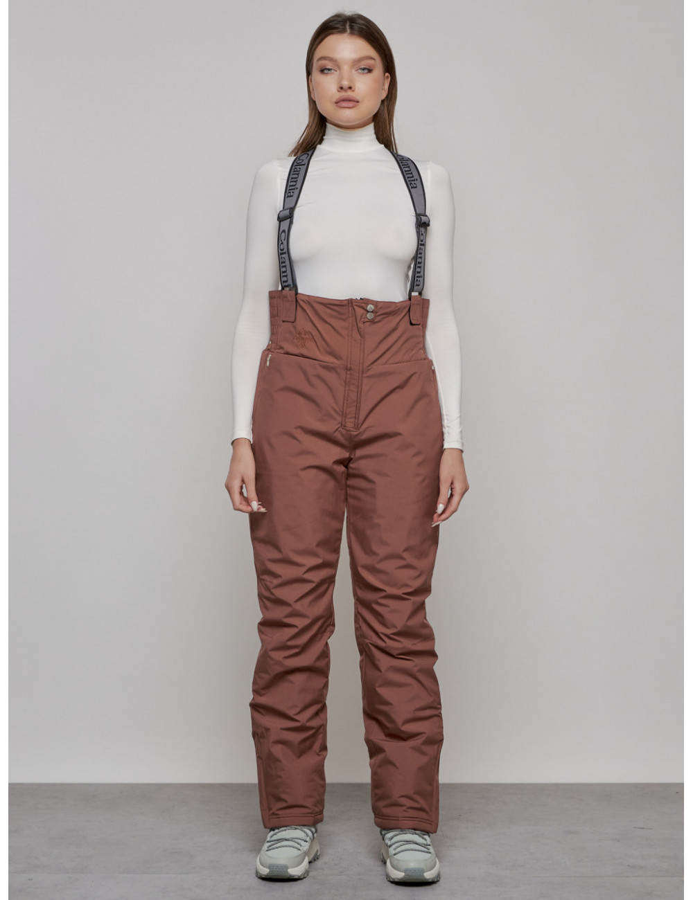 Наслаждайтесь зимними видами спорта в комфорте и тепле с нашими горнолыжными брюками-полукомбинезоном! Доставка по Москве и Московской области Женский зимний полукомбинезон с высокой посадкой коричневого цвета, брюки для зимних прогулок.