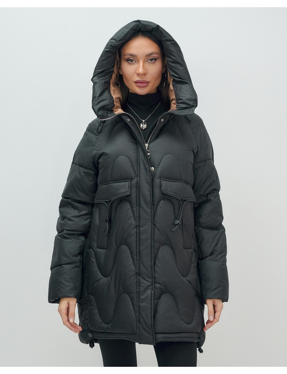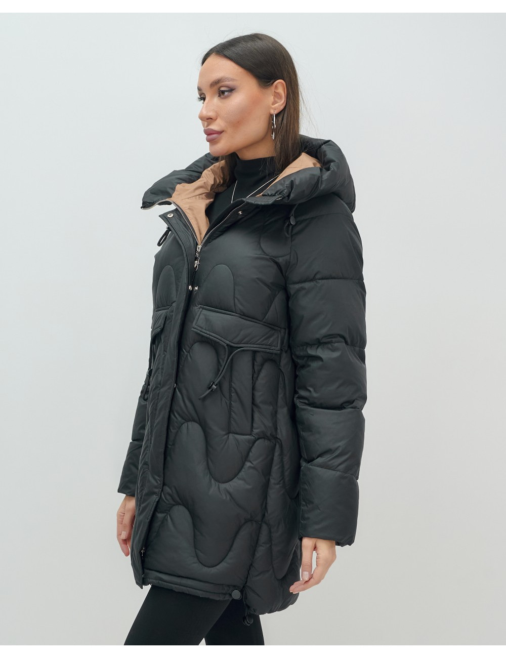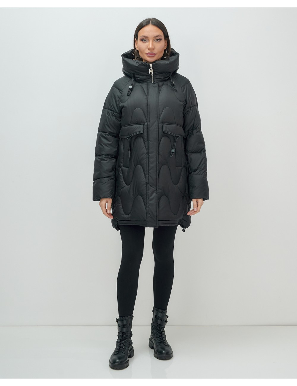 Доставка Зимний модный пуховик женский с капюшоном, чёрный. по Тюмени и Тюменской области СДЭК