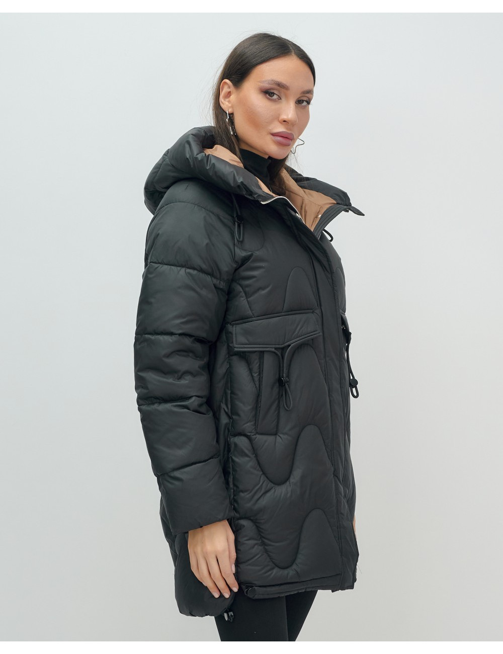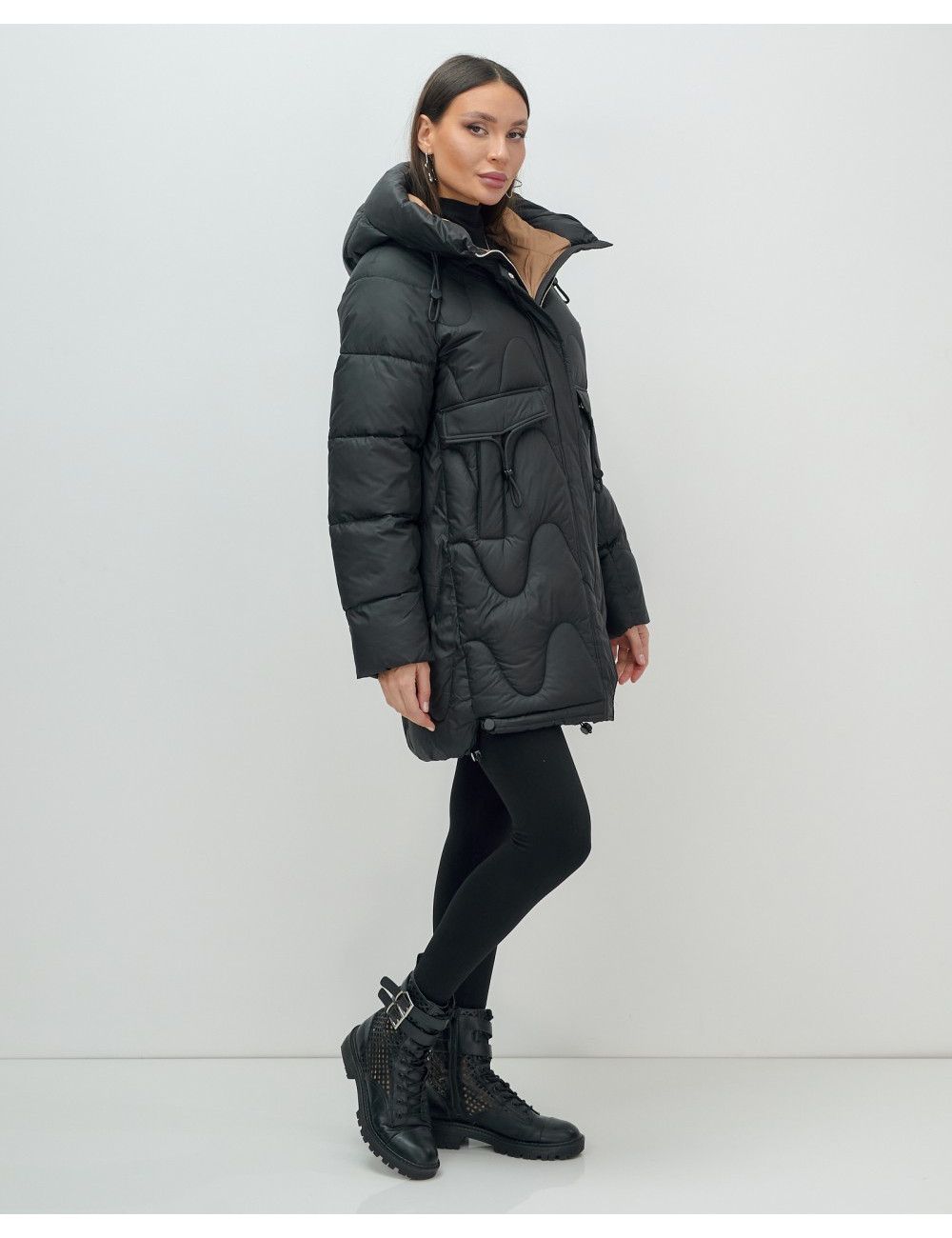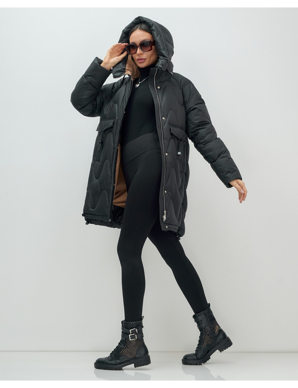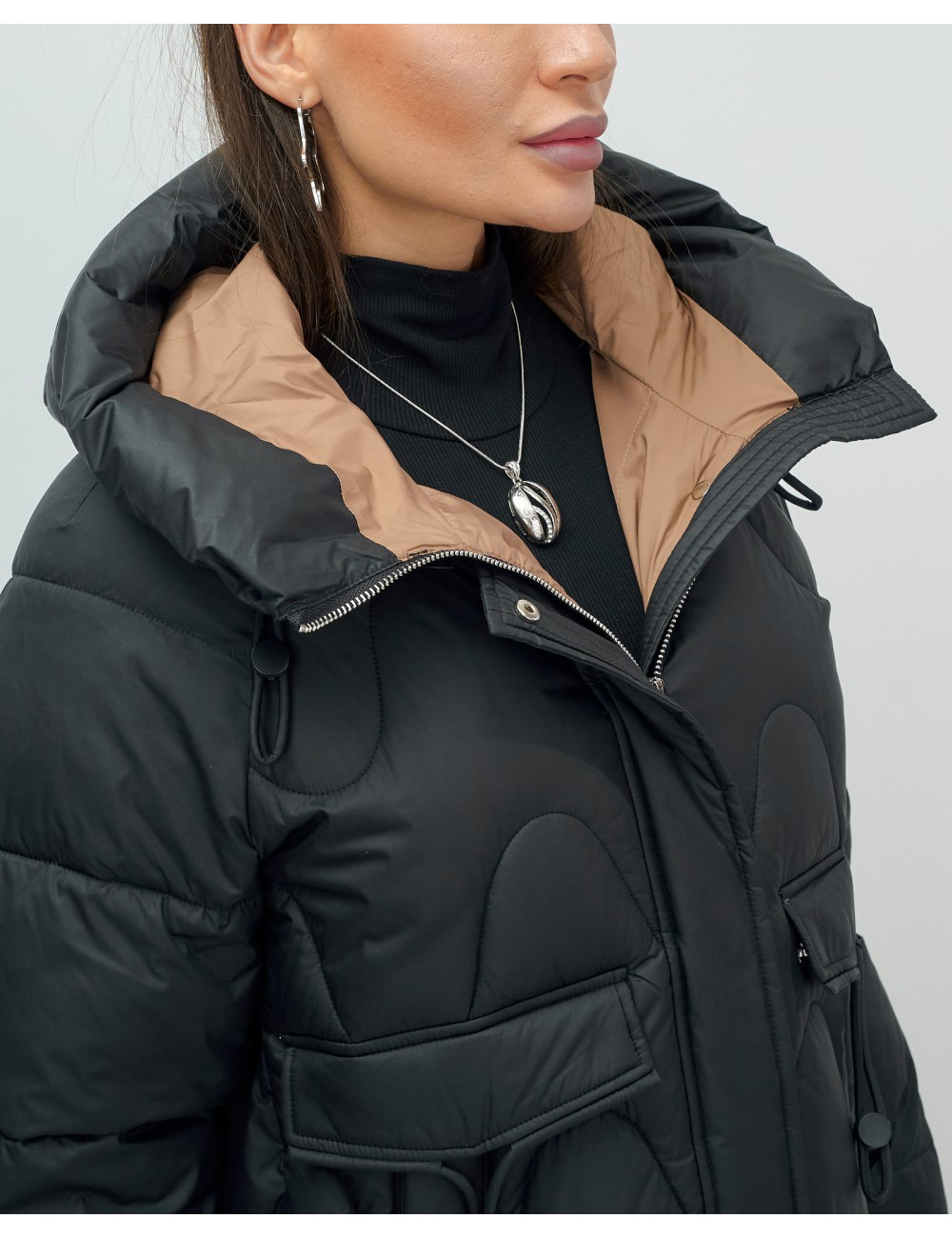Доставка Зимний модный пуховик женский с капюшоном, чёрный. по Тюмени и Тюменской области СДЭК
