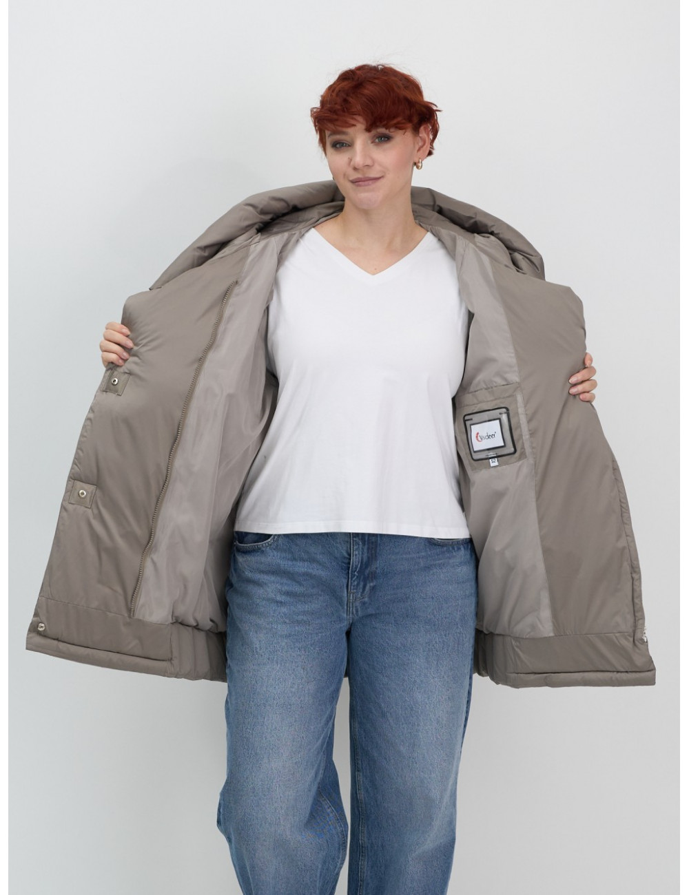Пуховик представлен в чёрном, светло-коричневом, горчичном, хаки и коричневом цветах, что позволяет выбрать идеальный вариант для вашего гардероба.