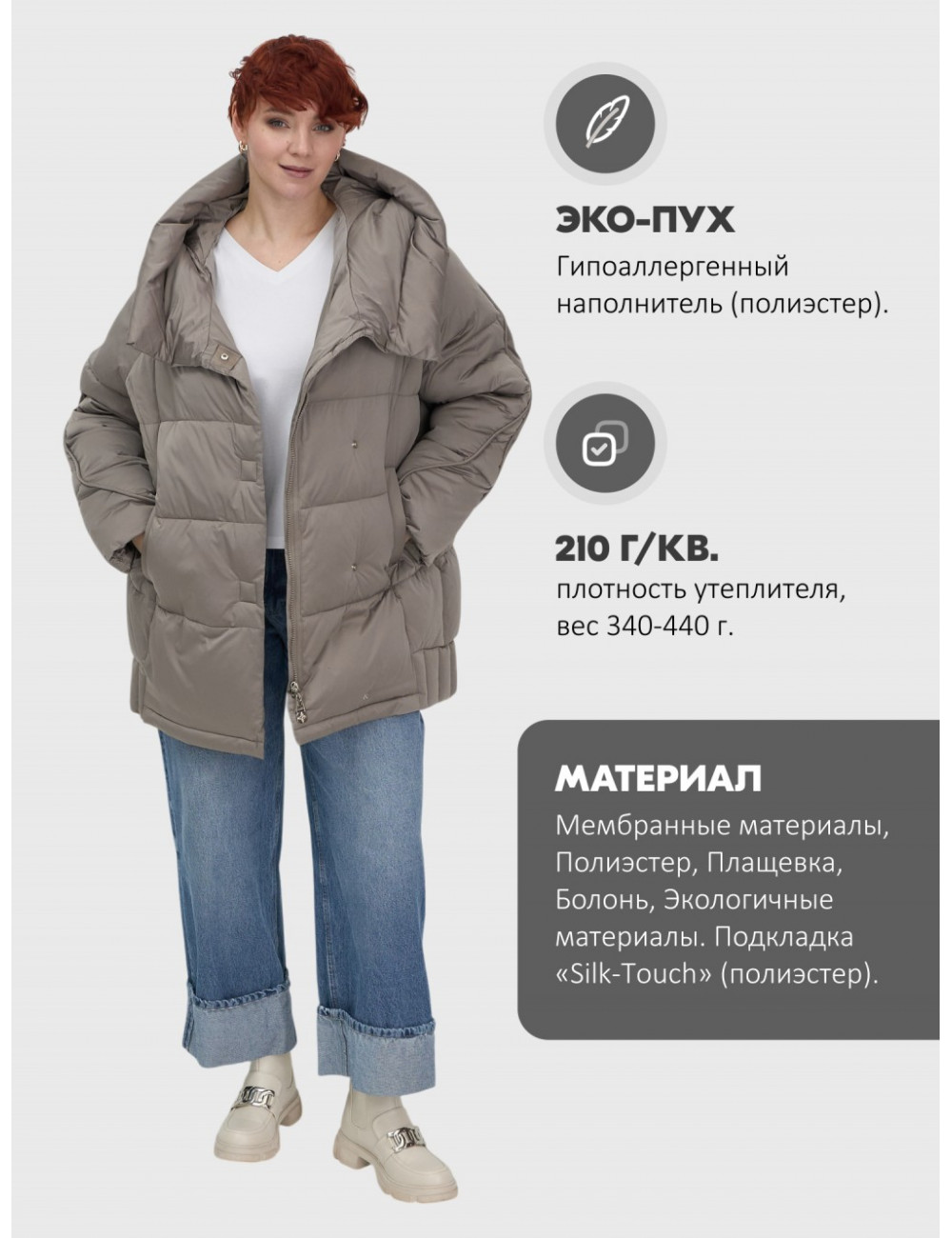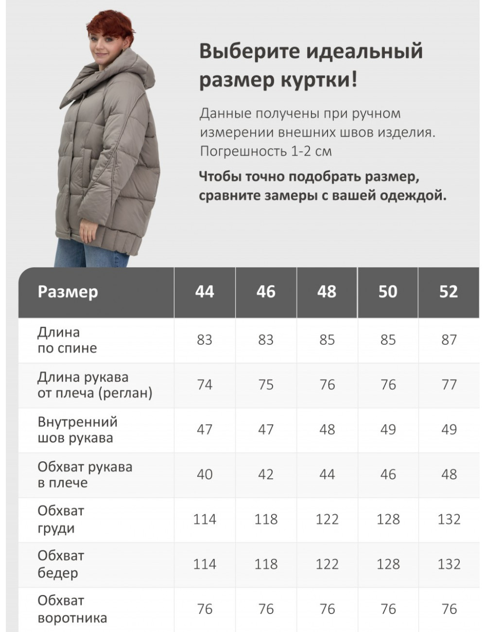 Наш пуховик доступен в размерах от 44 до 54 и подходит для любой фигуры и роста (от 155 до 190 см).