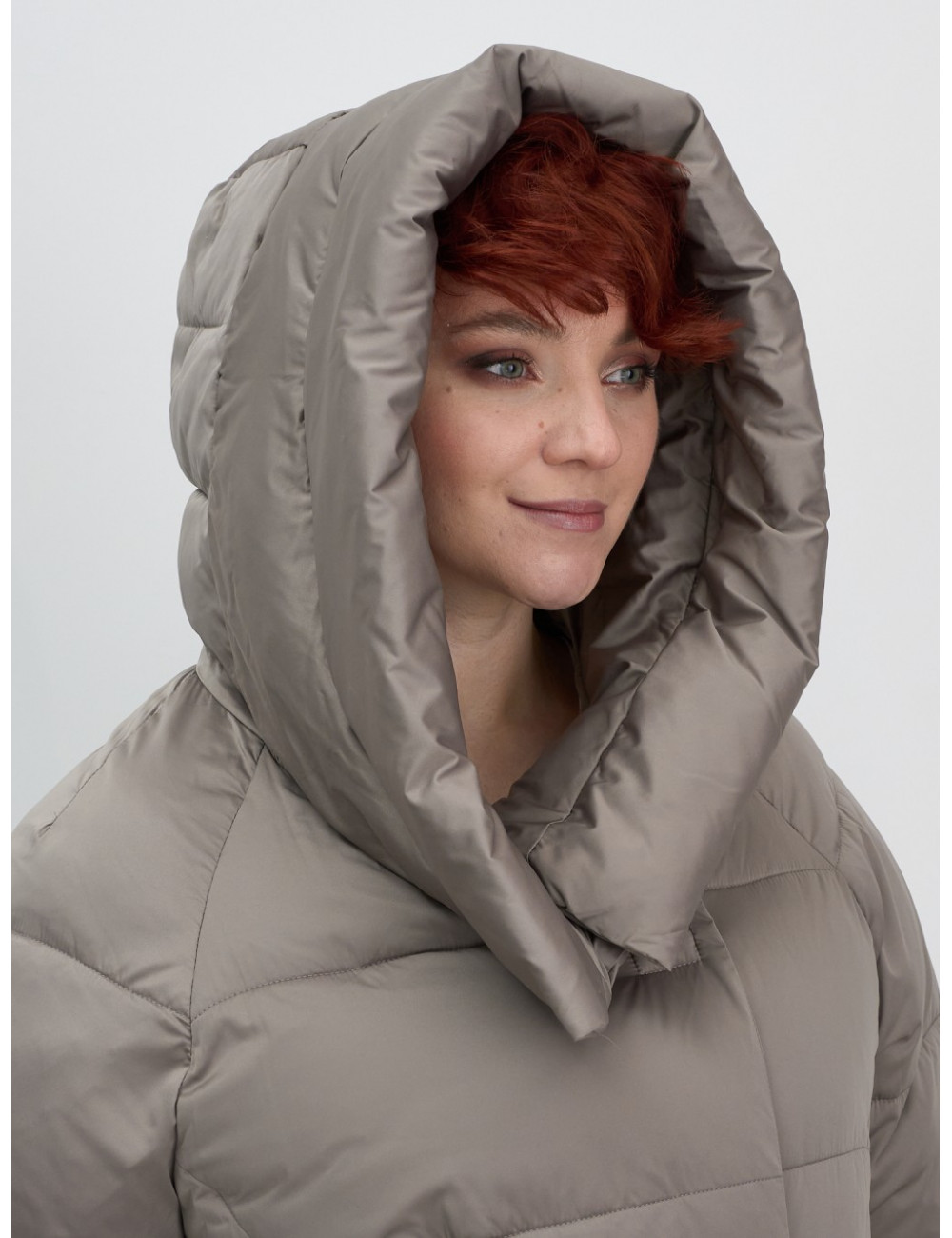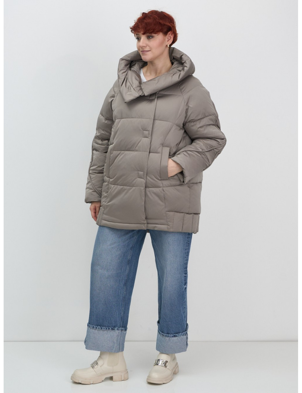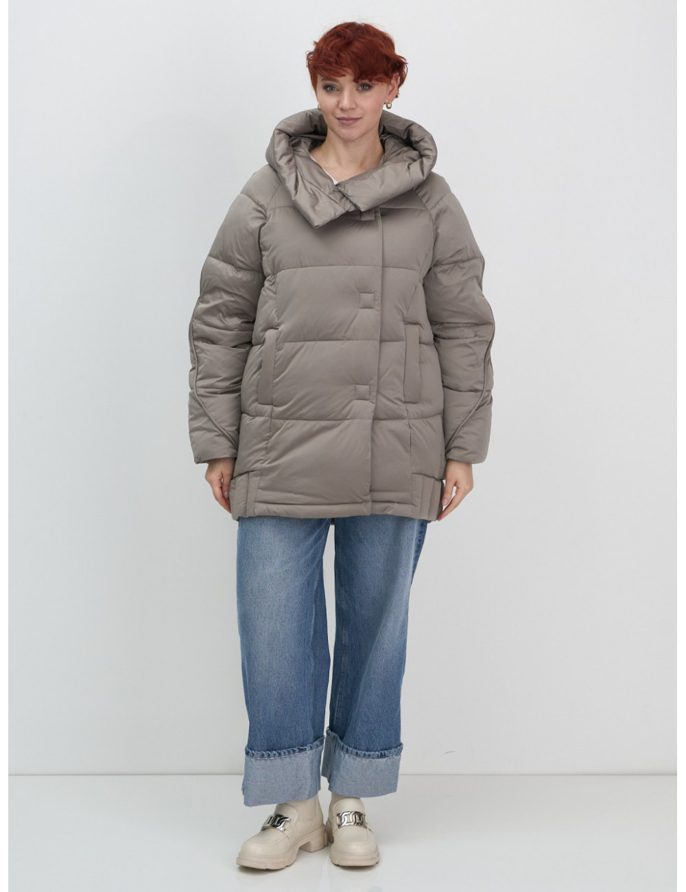 Доставка Женский модный пуховик с капюшоном, коричневый. по Тюмени и Тюменской области СДЭК