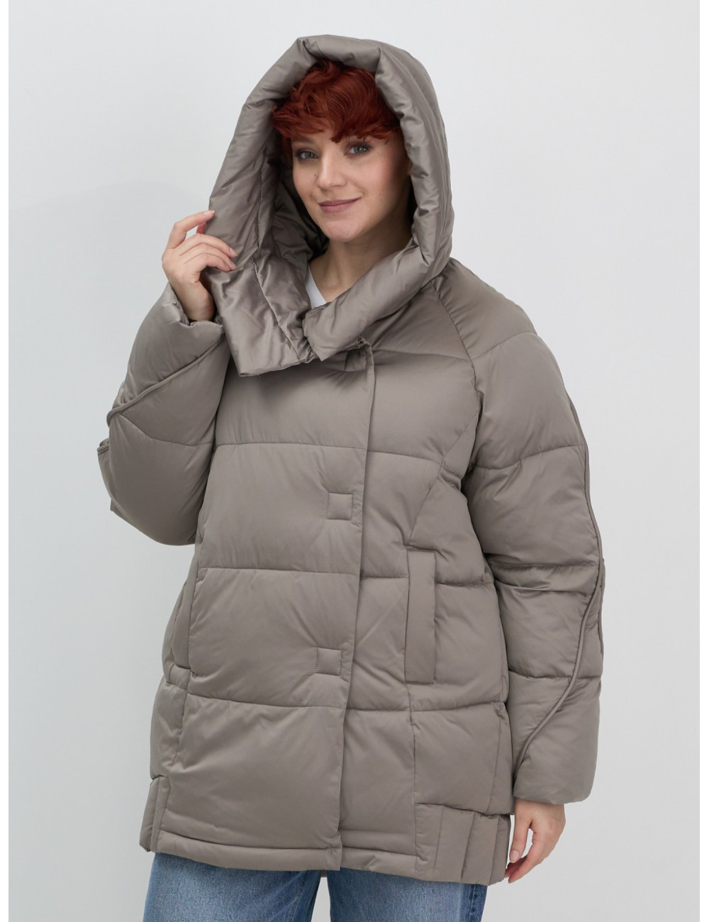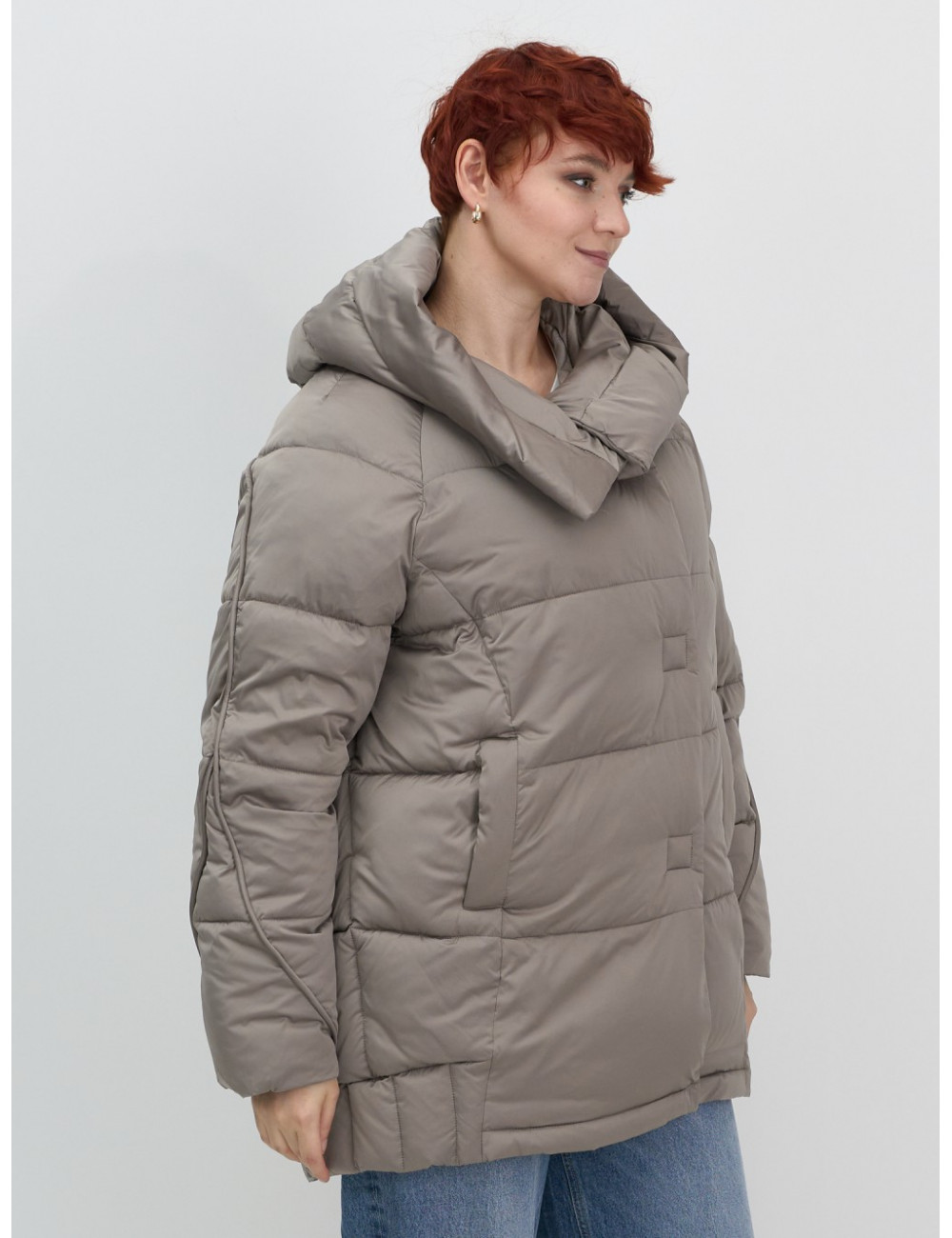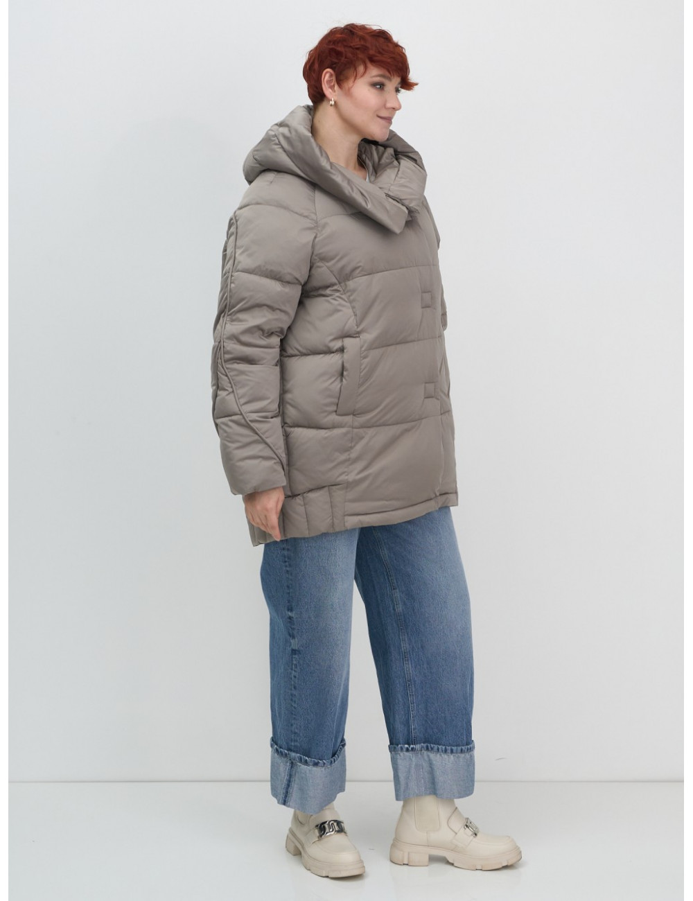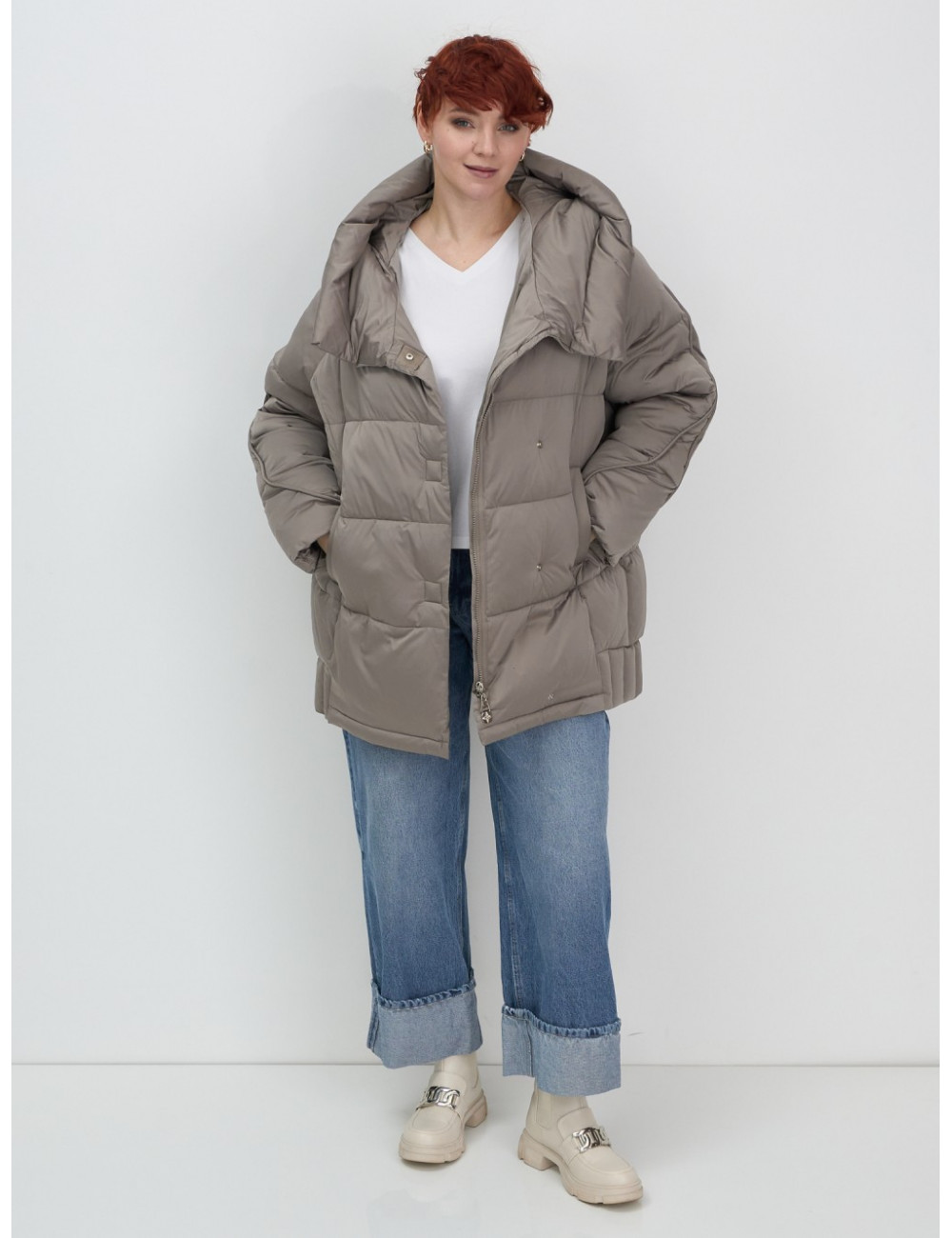 Доставка Женский модный пуховик с капюшоном, коричневый. по Тюмени и Тюменской области СДЭК