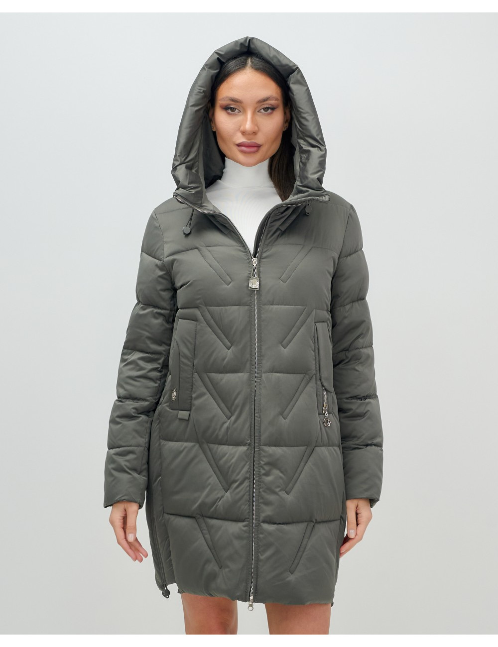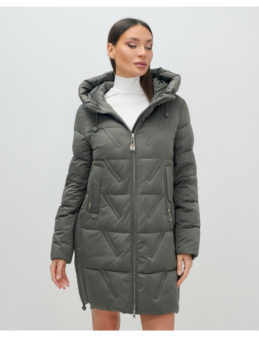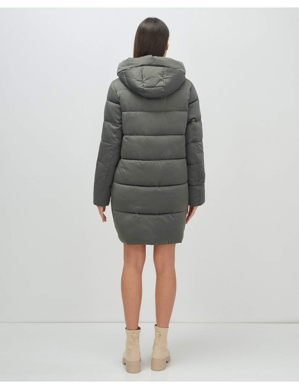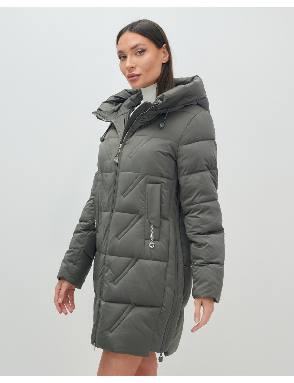 Доставка Женский зимний пуховик с капюшоном, тёмно-серый. по Тюмени и Тюменской области СДЭК