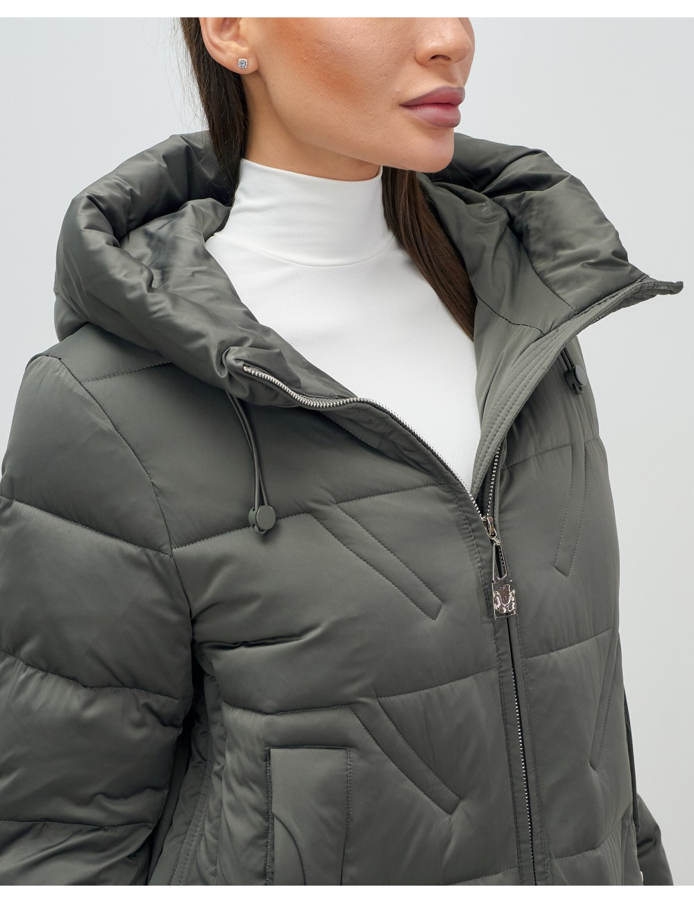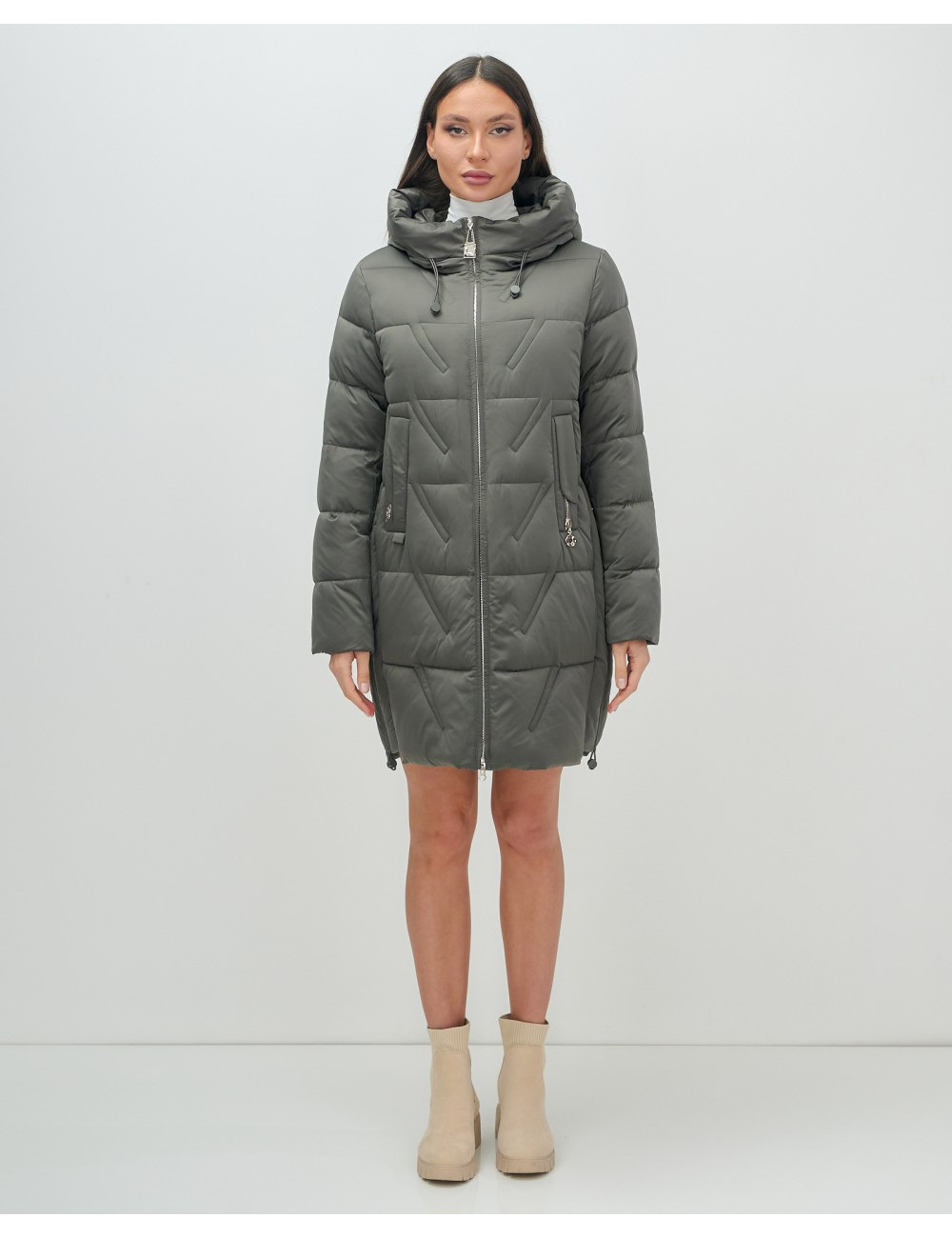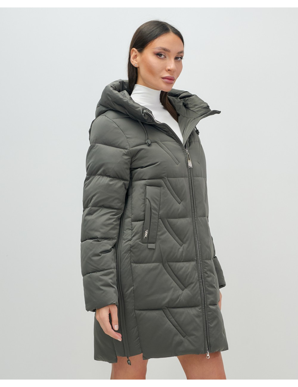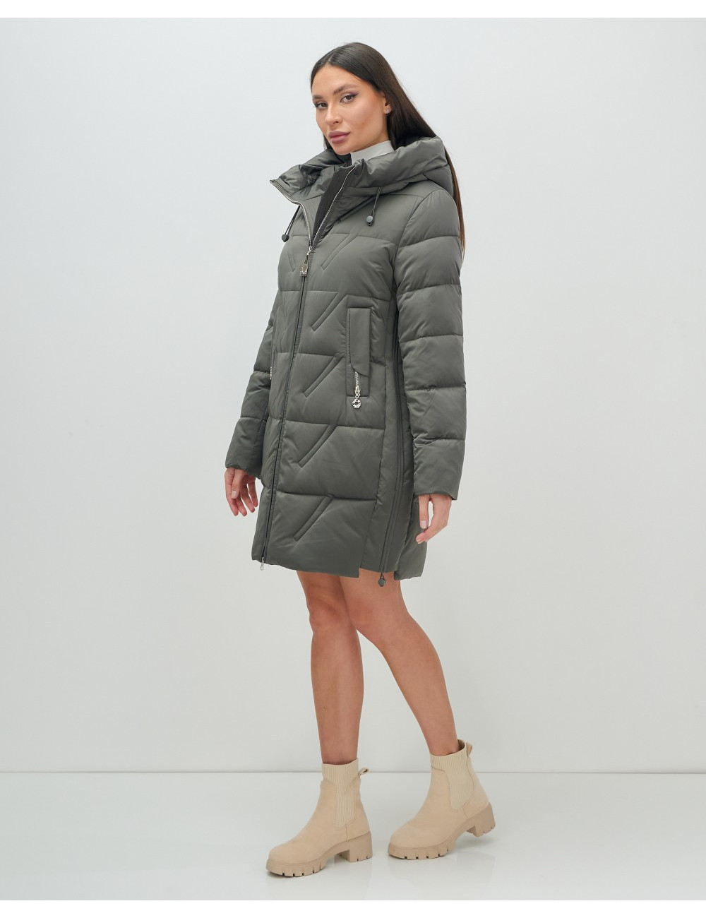 Доставка Женский зимний пуховик с капюшоном, тёмно-серый. по Тюмени и Тюменской области СДЭК