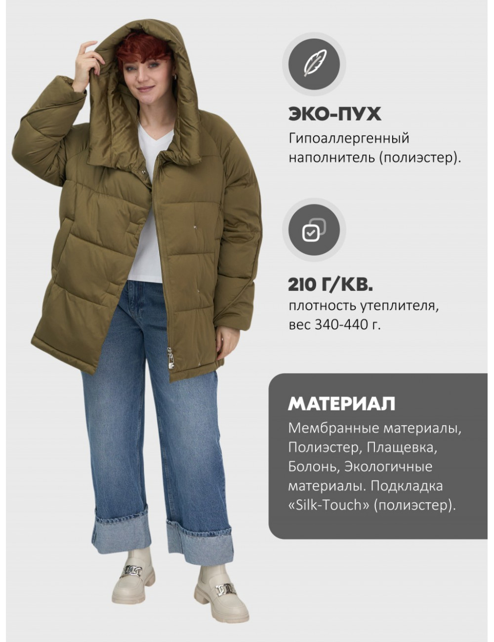 | Вид одежды | Свободный, утепленная модель |