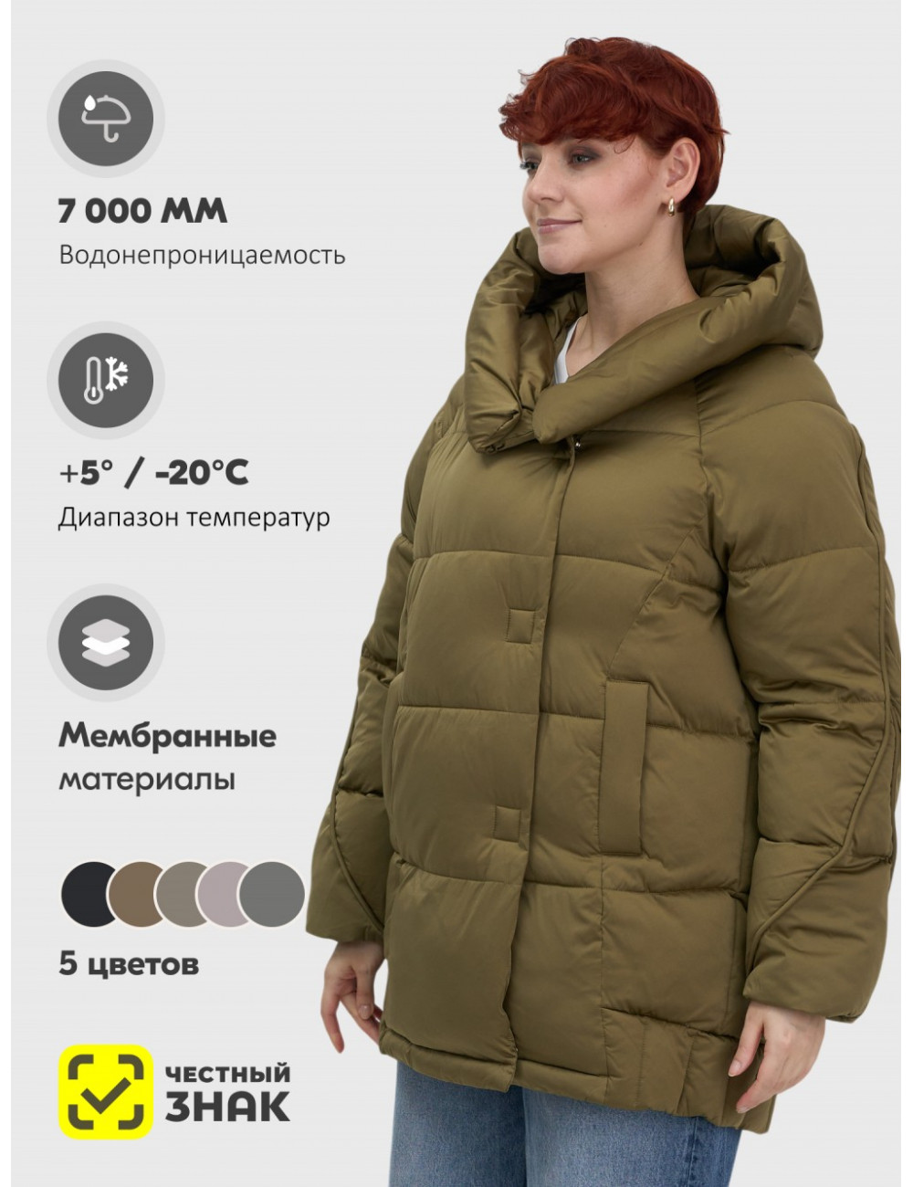 Высококачественные материалы: пуховик изготовлен из мембранных материалов и 100% полиэстера. Он обеспечивает водонепроницаемость до 7000 мм, защищая от непогоды.