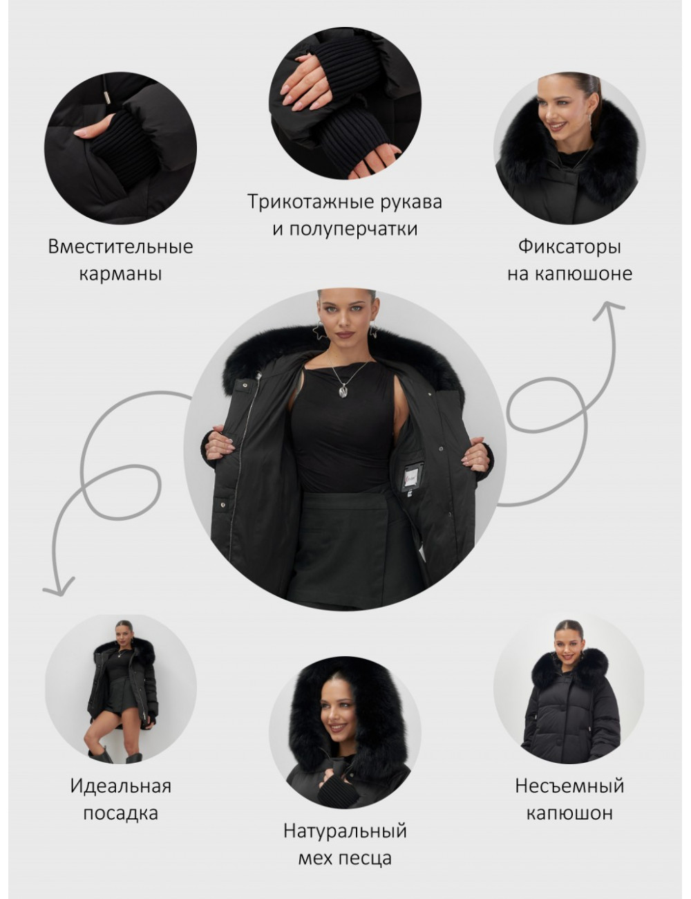 Станьте обладательницей эксклюзивного пуховика премиум-класса и подчеркните свою индивидуальность и безупречный вкус! Доставка по Москве и Московской области Пуховик женский зимний с мехом и капюшоном, чёрный.