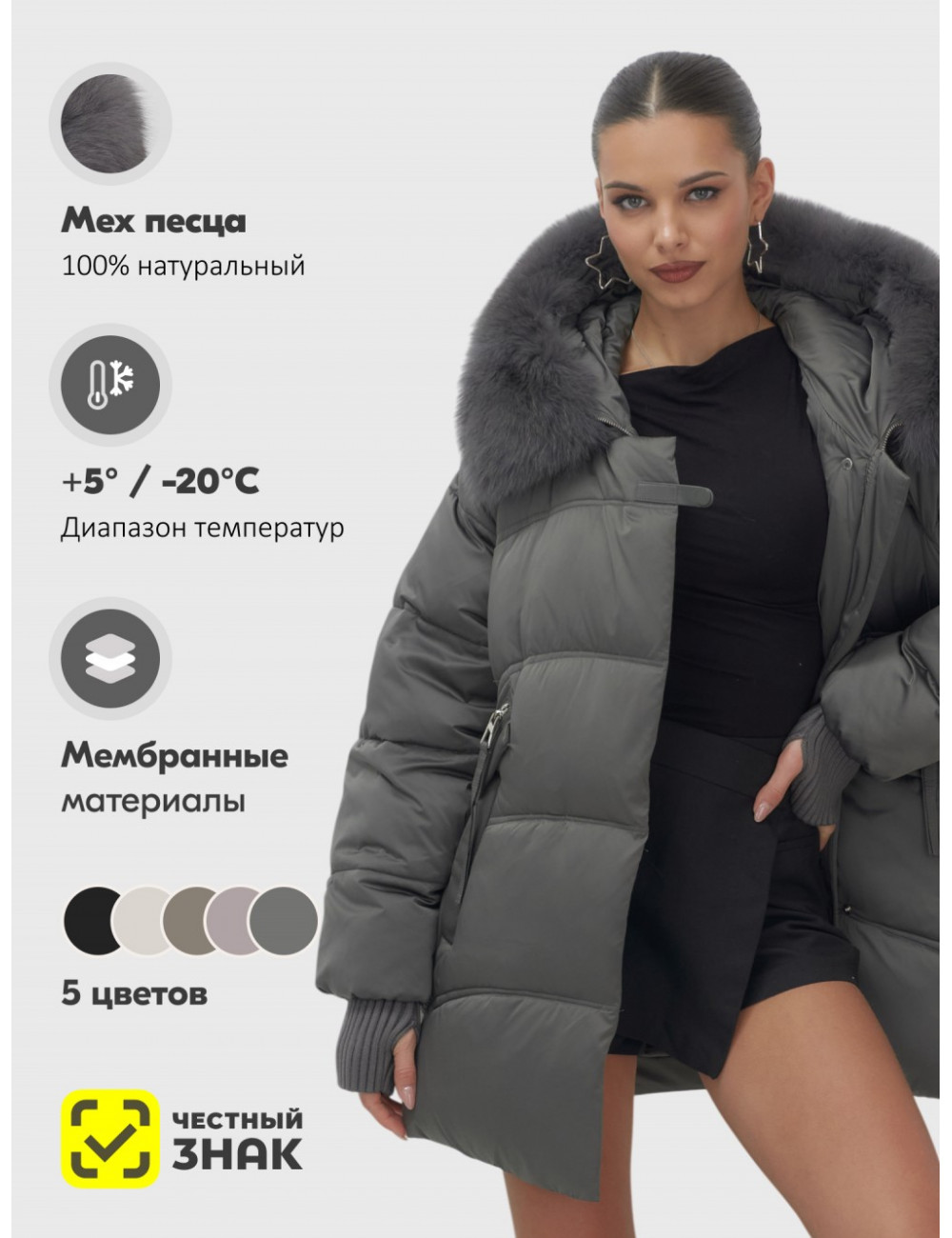 Пуховик премиум-класса с натуральным мехом песца — идеальный выбор для зимы 2025