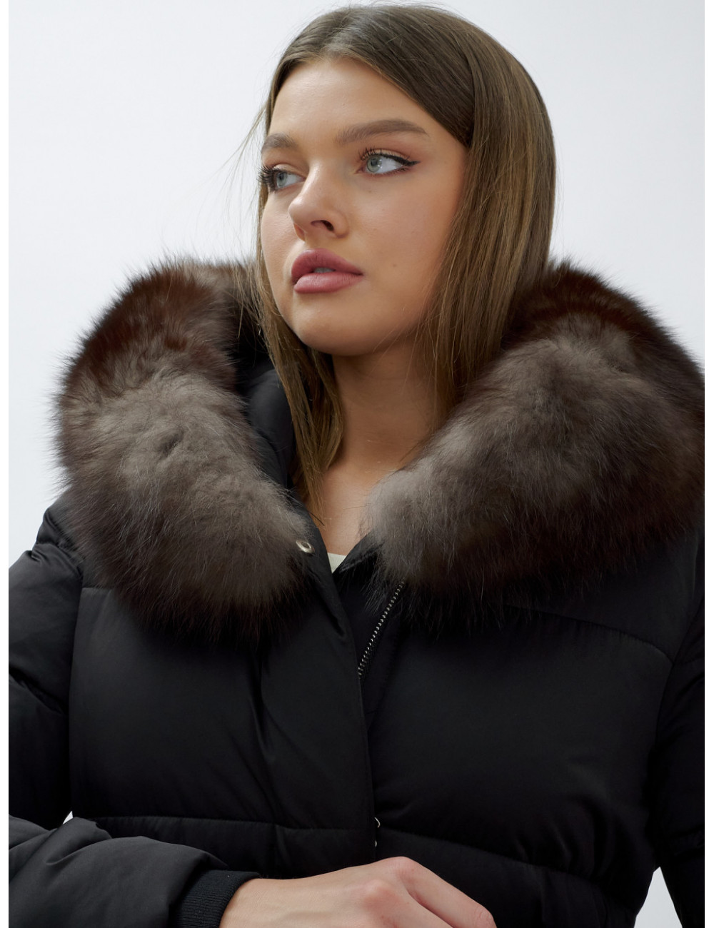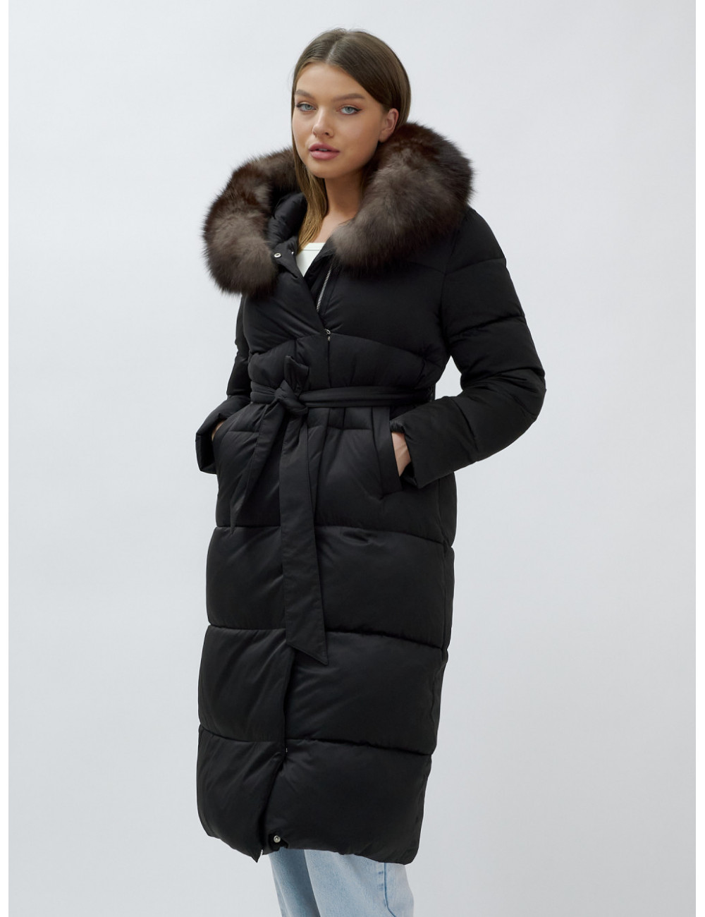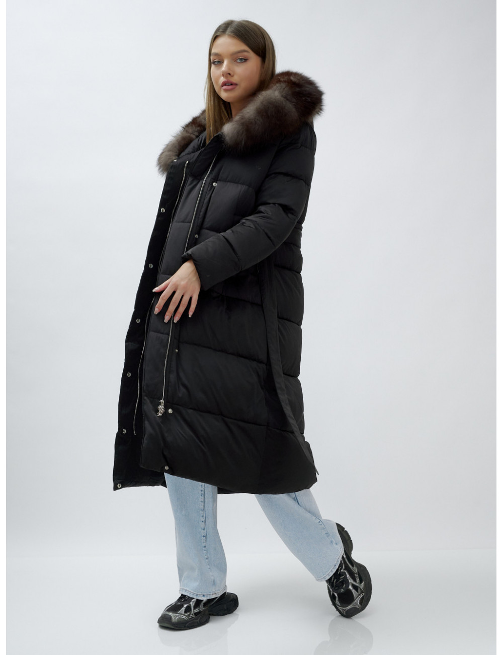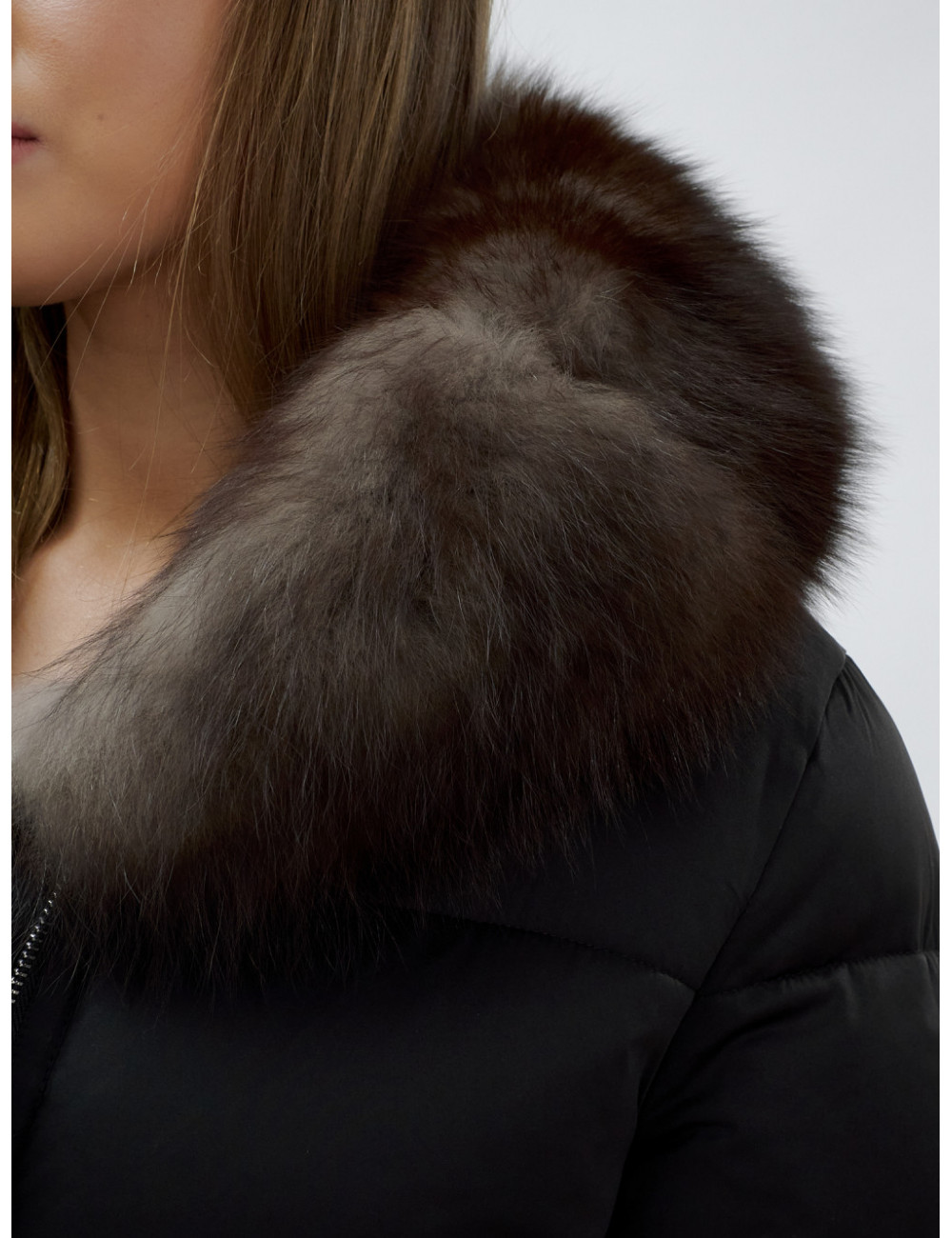 Подкладка из полиэстера обеспечивает лёгкость в уходе — пуховик не требует сложного ухода и сохраняет свой первоначальный вид. Доставка Длинный пуховик для женщин с мехом песца, чёрный по Тюмени и Тюменской области СДЭК