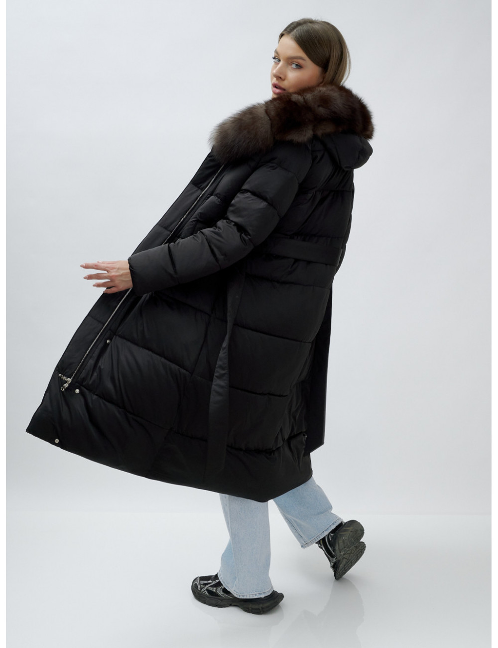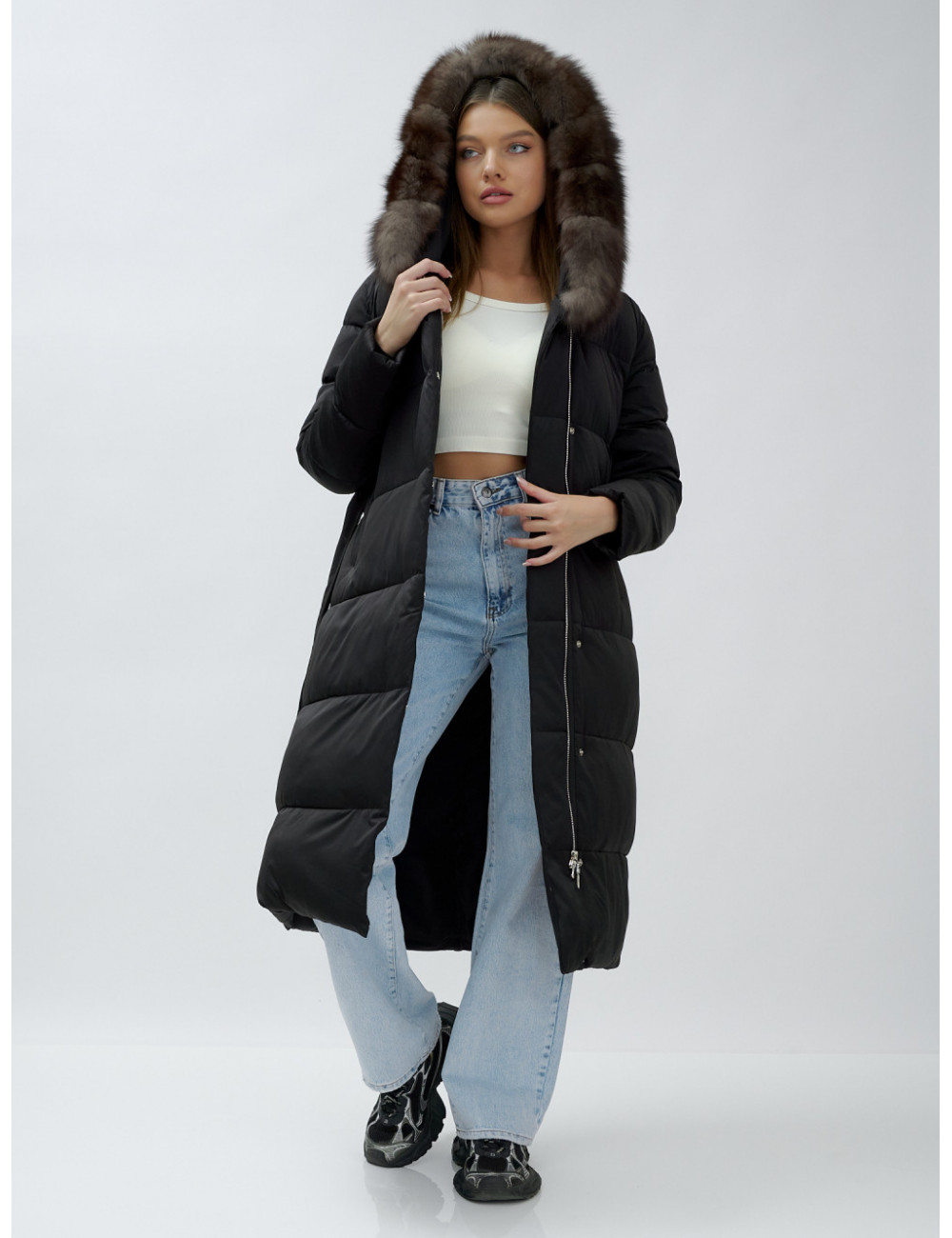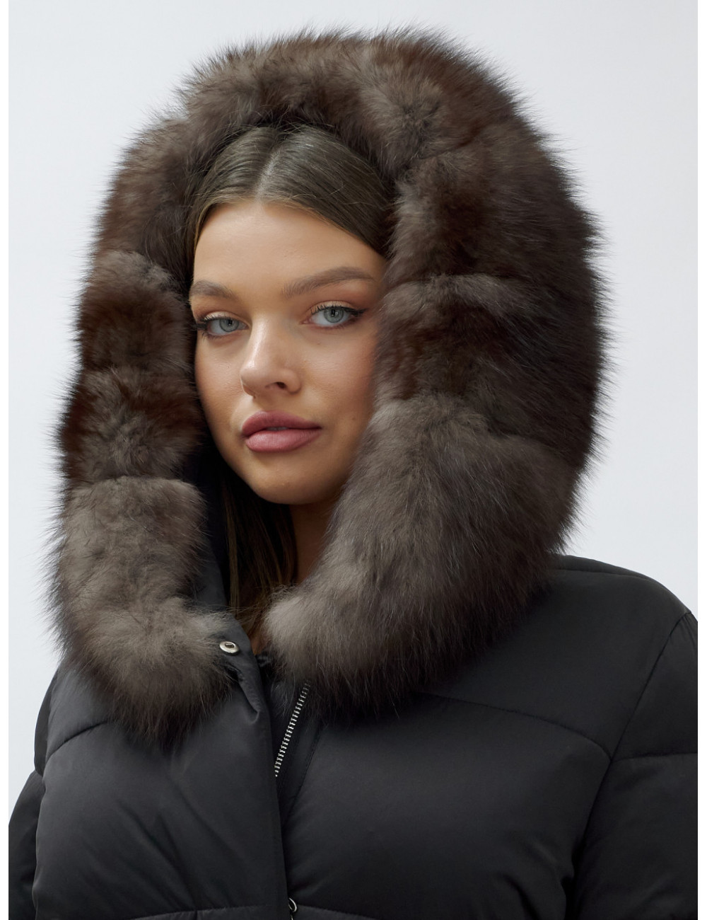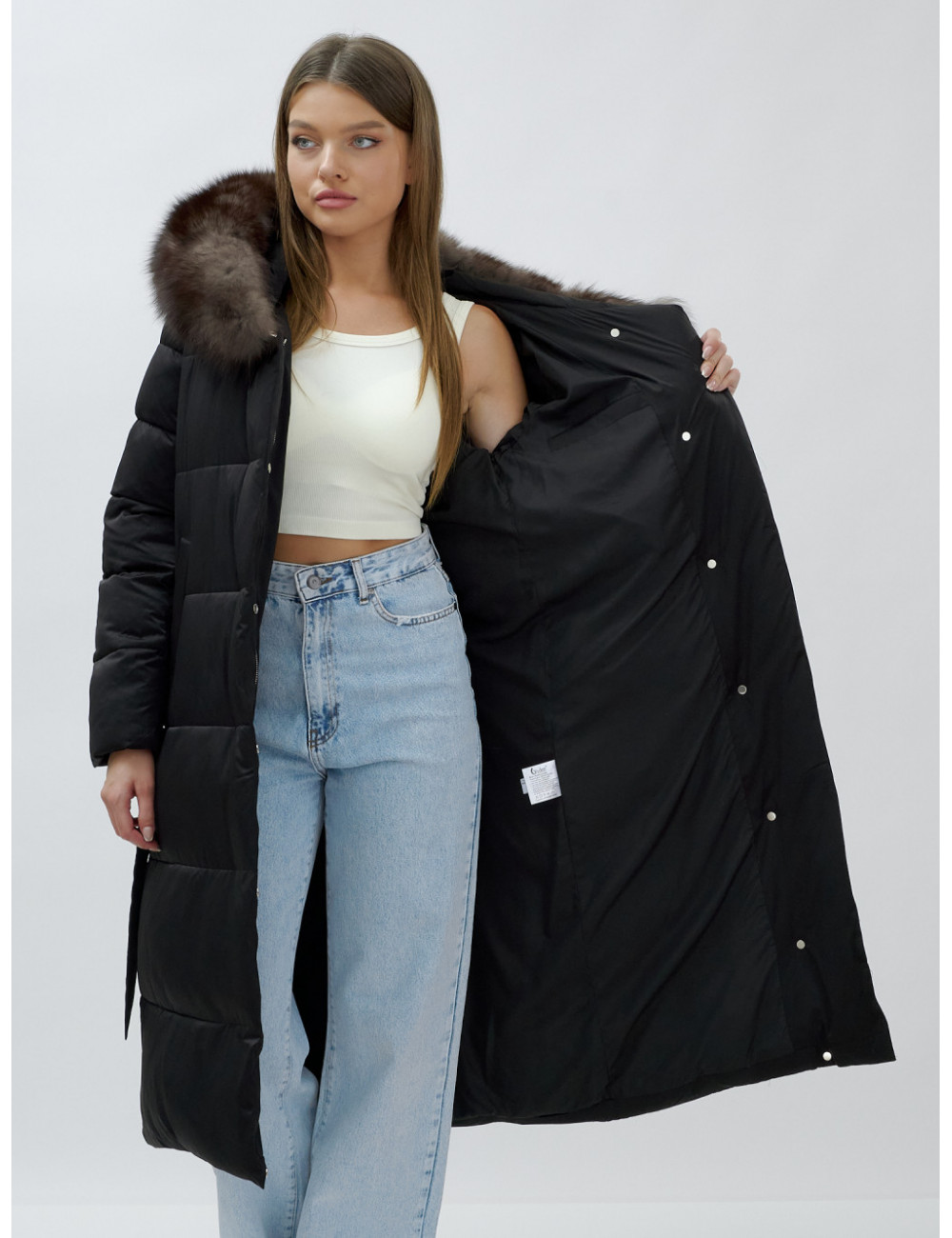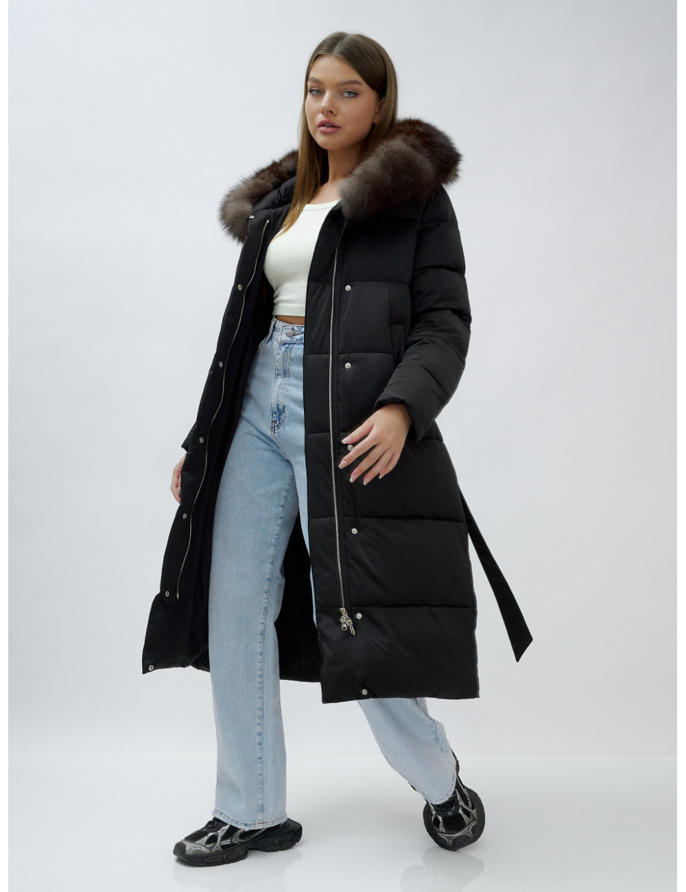Подкладка из полиэстера обеспечивает лёгкость в уходе — пуховик не требует сложного ухода и сохраняет свой первоначальный вид. Доставка Длинный пуховик для женщин с мехом песца, чёрный по Тюмени и Тюменской области СДЭК