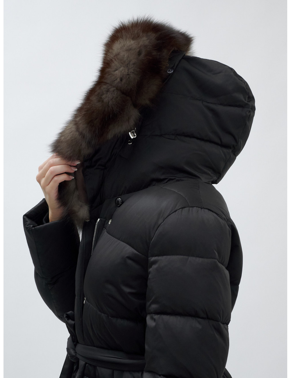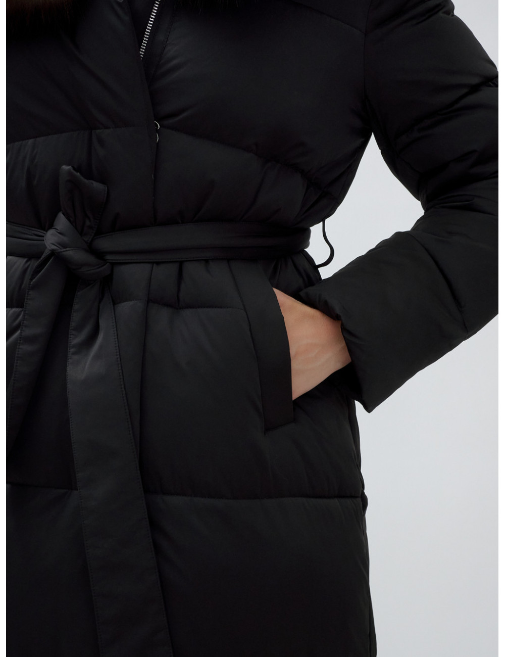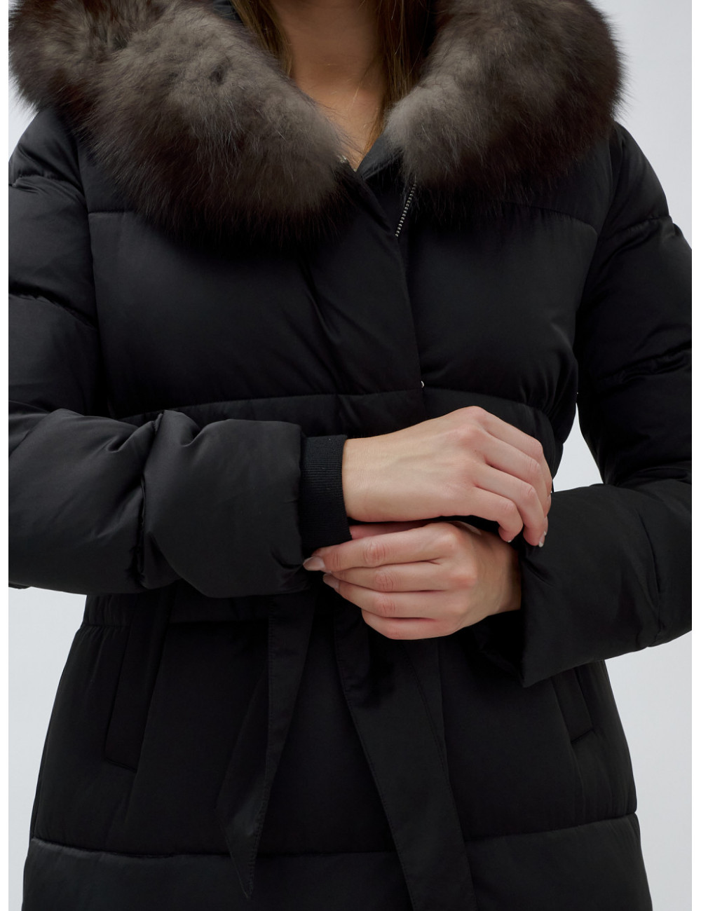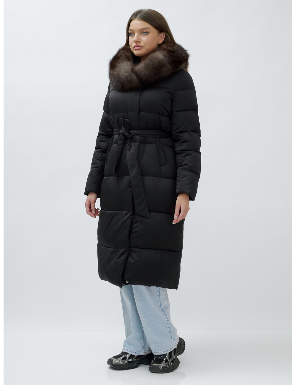 Подкладка из полиэстера обеспечивает лёгкость в уходе — пуховик не требует сложного ухода и сохраняет свой первоначальный вид. Доставка Длинный пуховик для женщин с мехом песца, чёрный по Тюмени и Тюменской области СДЭК