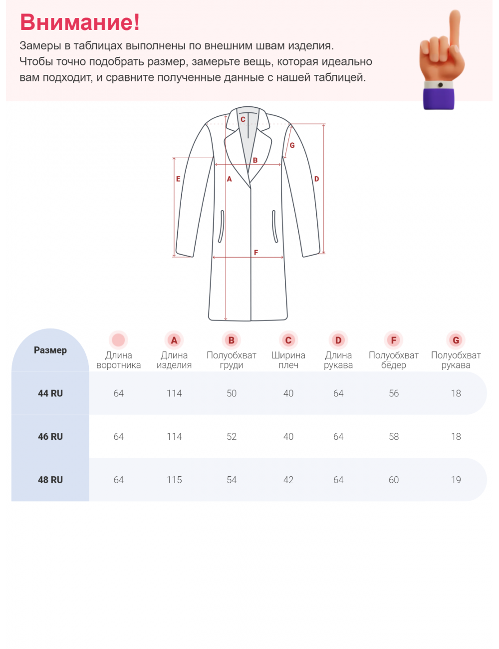 | Декоративные элементы | Мех, Манжеты, Декоративные пуговицы, Пояс/ремень |
