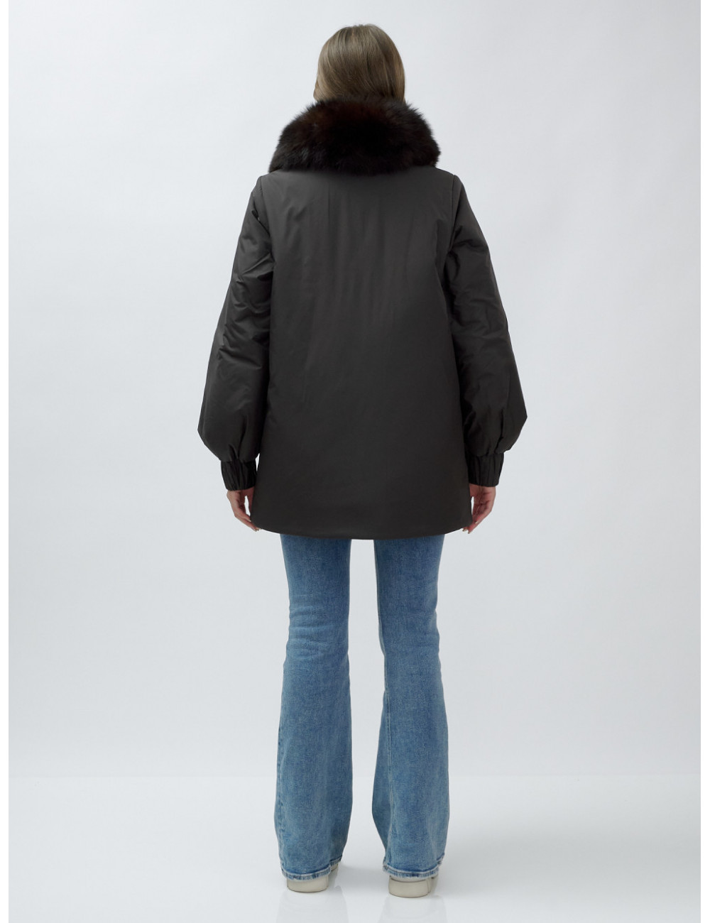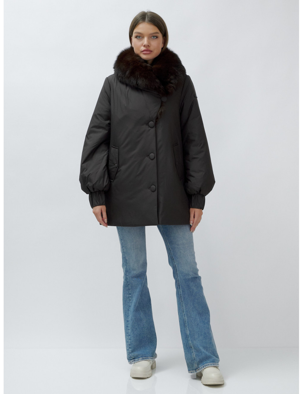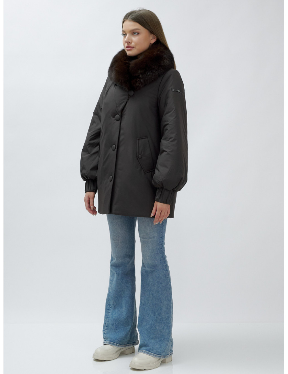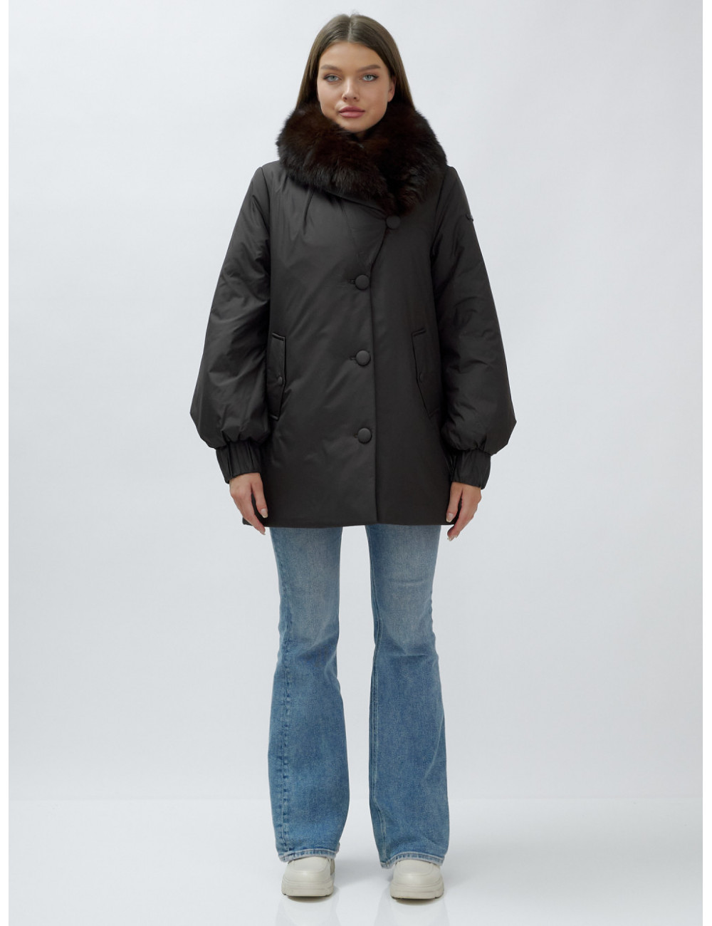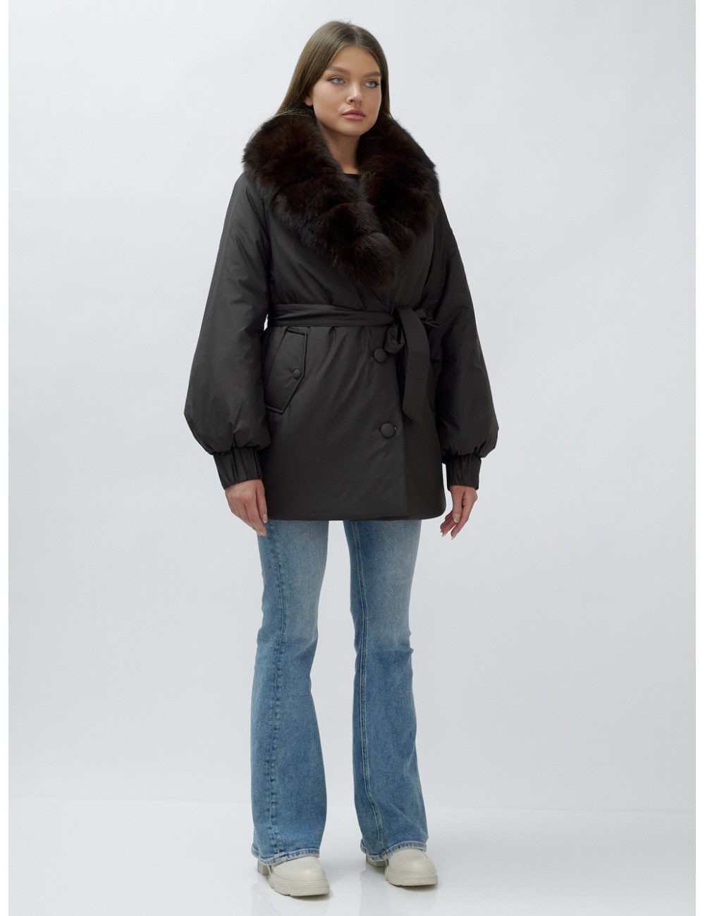 - Натуральная опушка. Съёмный пушистый воротник из меха песца, обработанного под соболя, добавляет роскоши и позволяет менять стиль в зависимости от настроения.