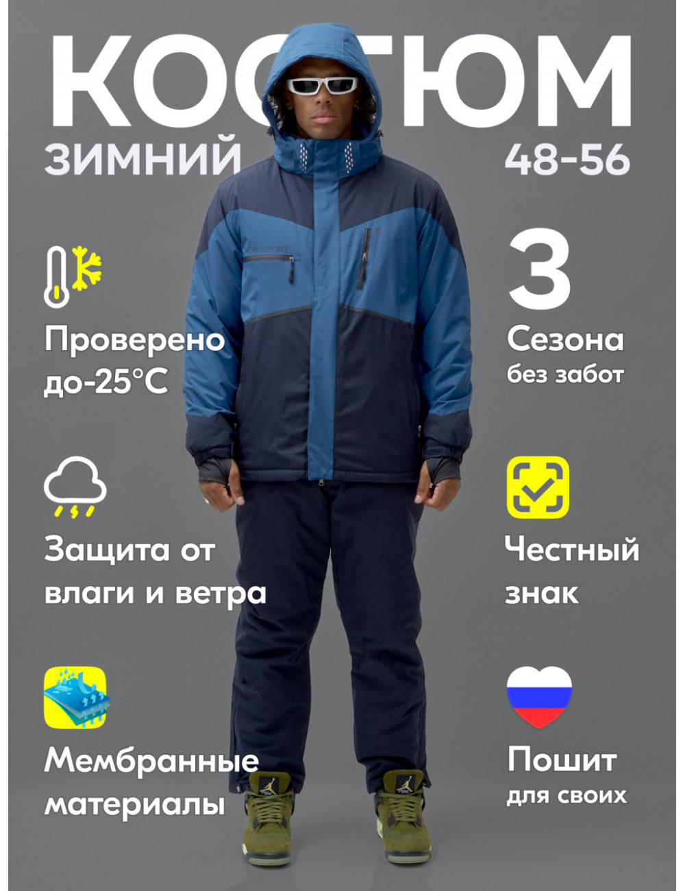 Не упустите возможность сделать свои зимние приключения комфортными и стильными с зимним горнолыжным мужским костюмом от Ketsi! Доставка Мужской зимний горнолыжный костюм синего цвета для активного отдыха по Тюмени и Тюменской области СДЭК