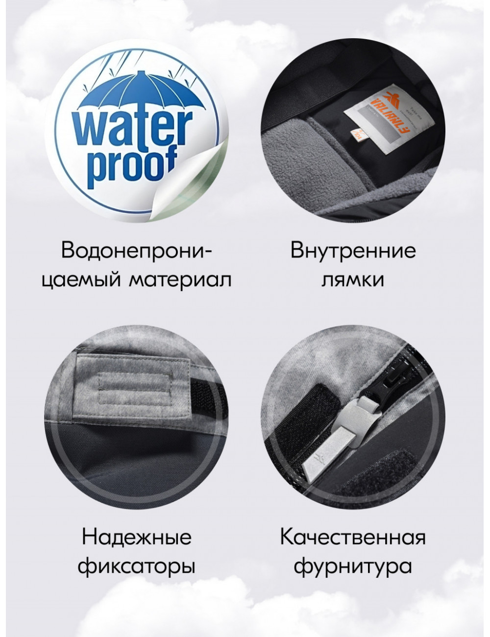 | Внутренние карманыНет | Внутренние швыПроклеены | Водонепроницаемость10 000 мм |