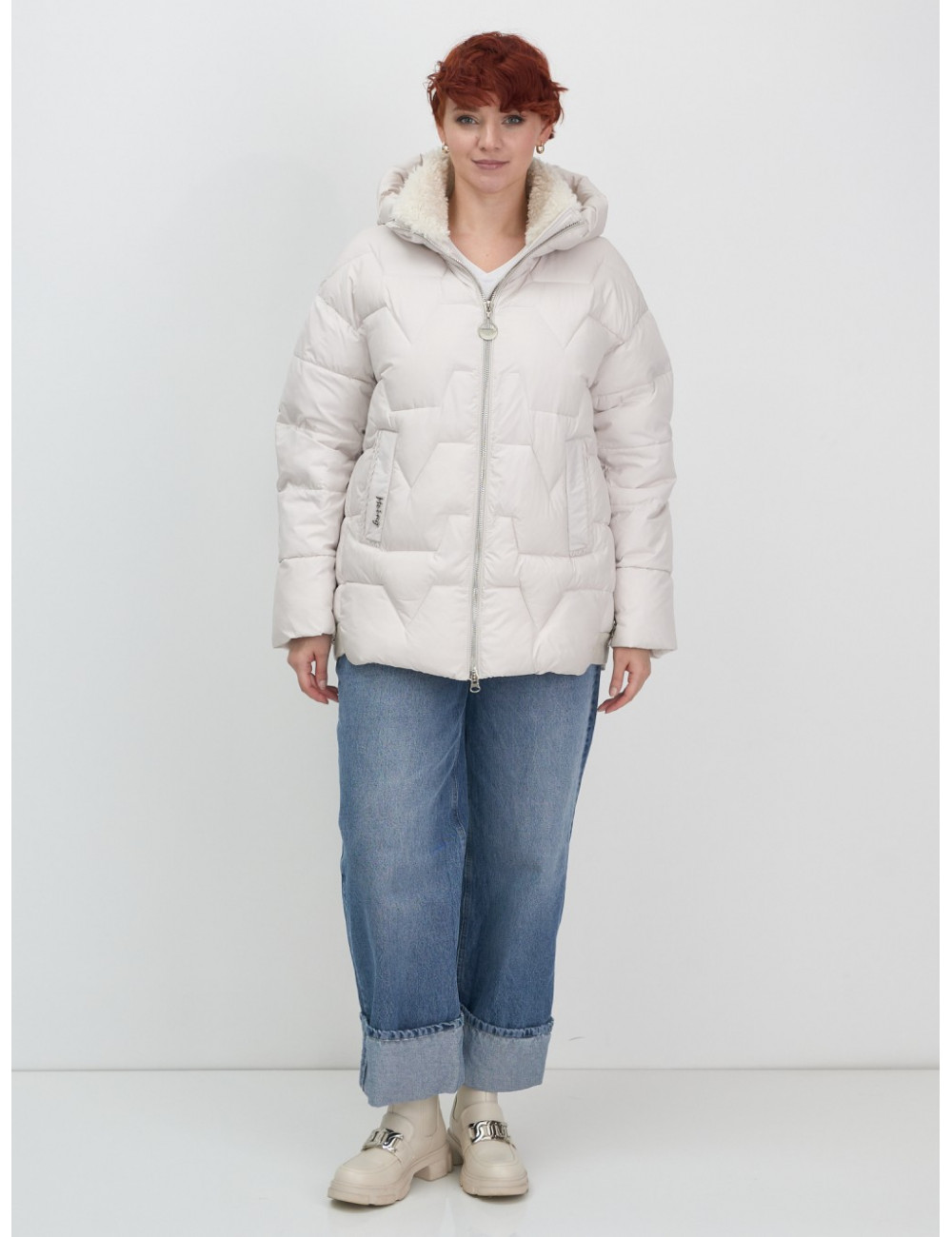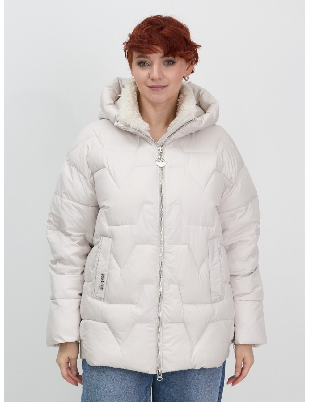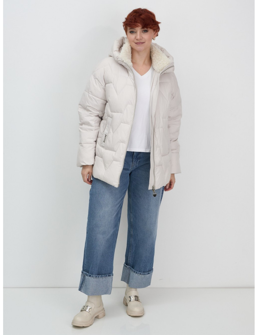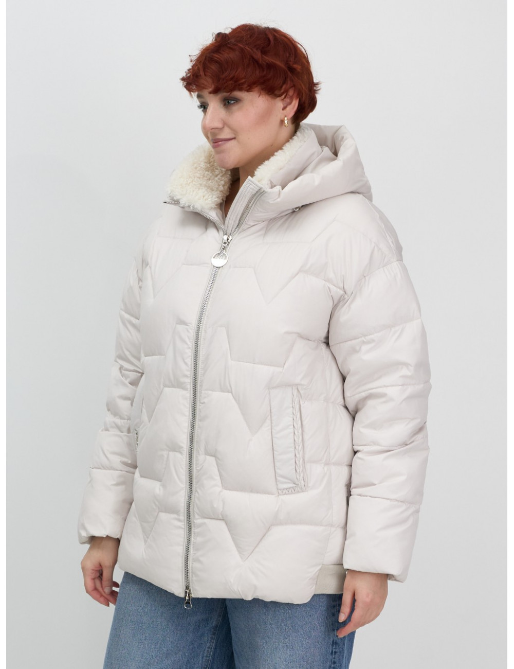 Зимняя куртка с эко овчиной для женщин: цвет бежевый