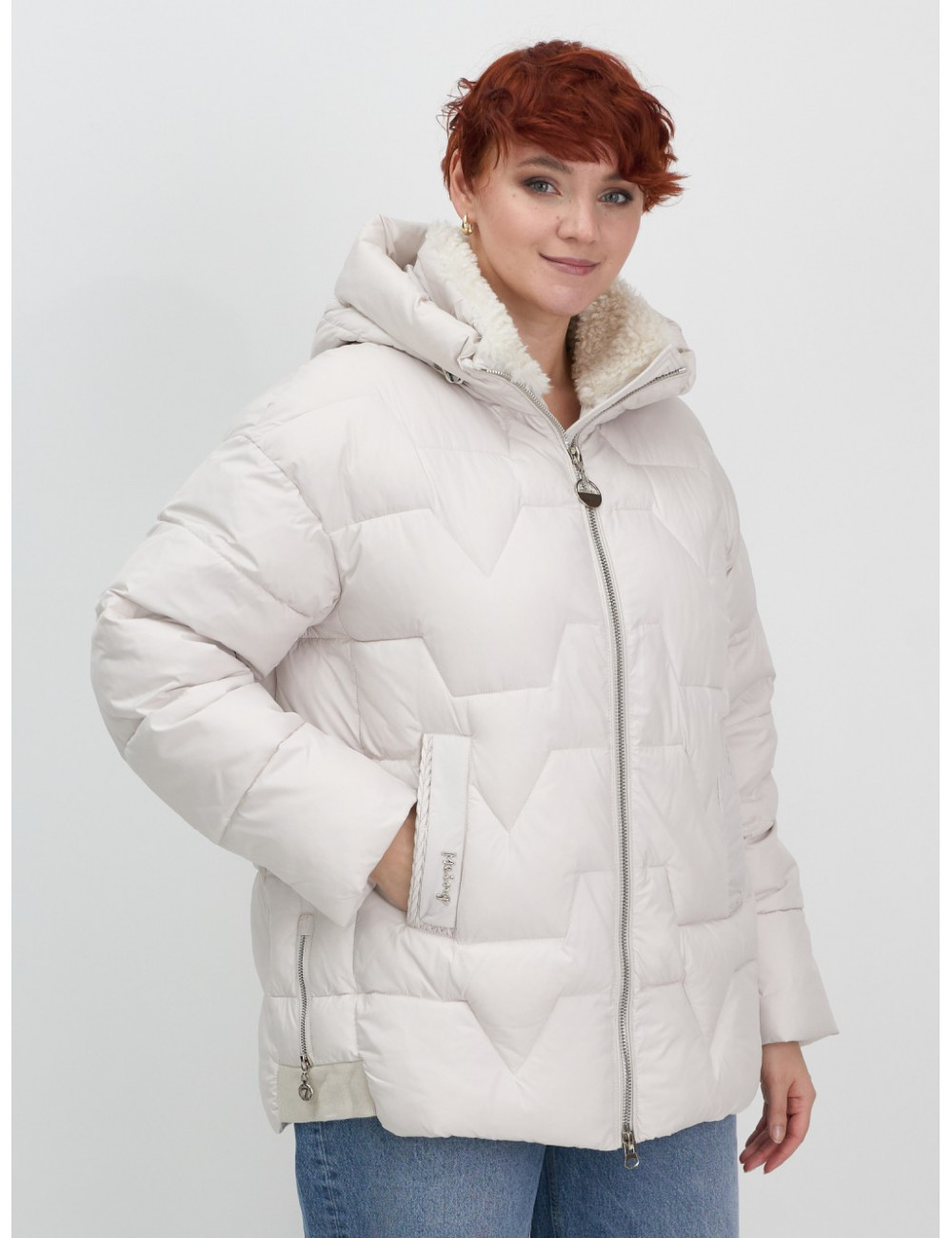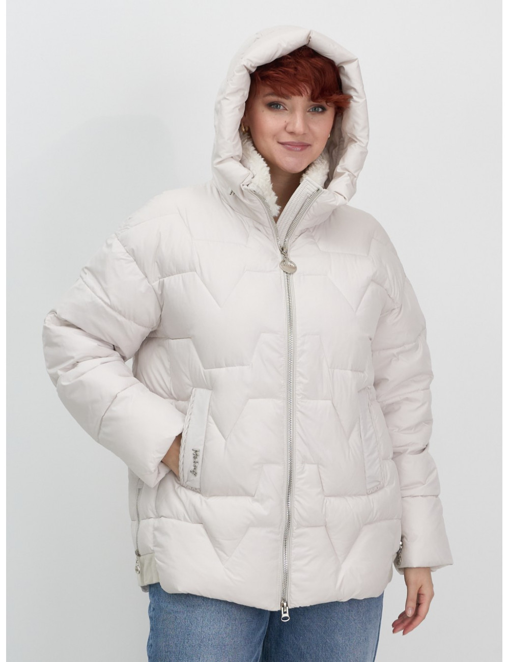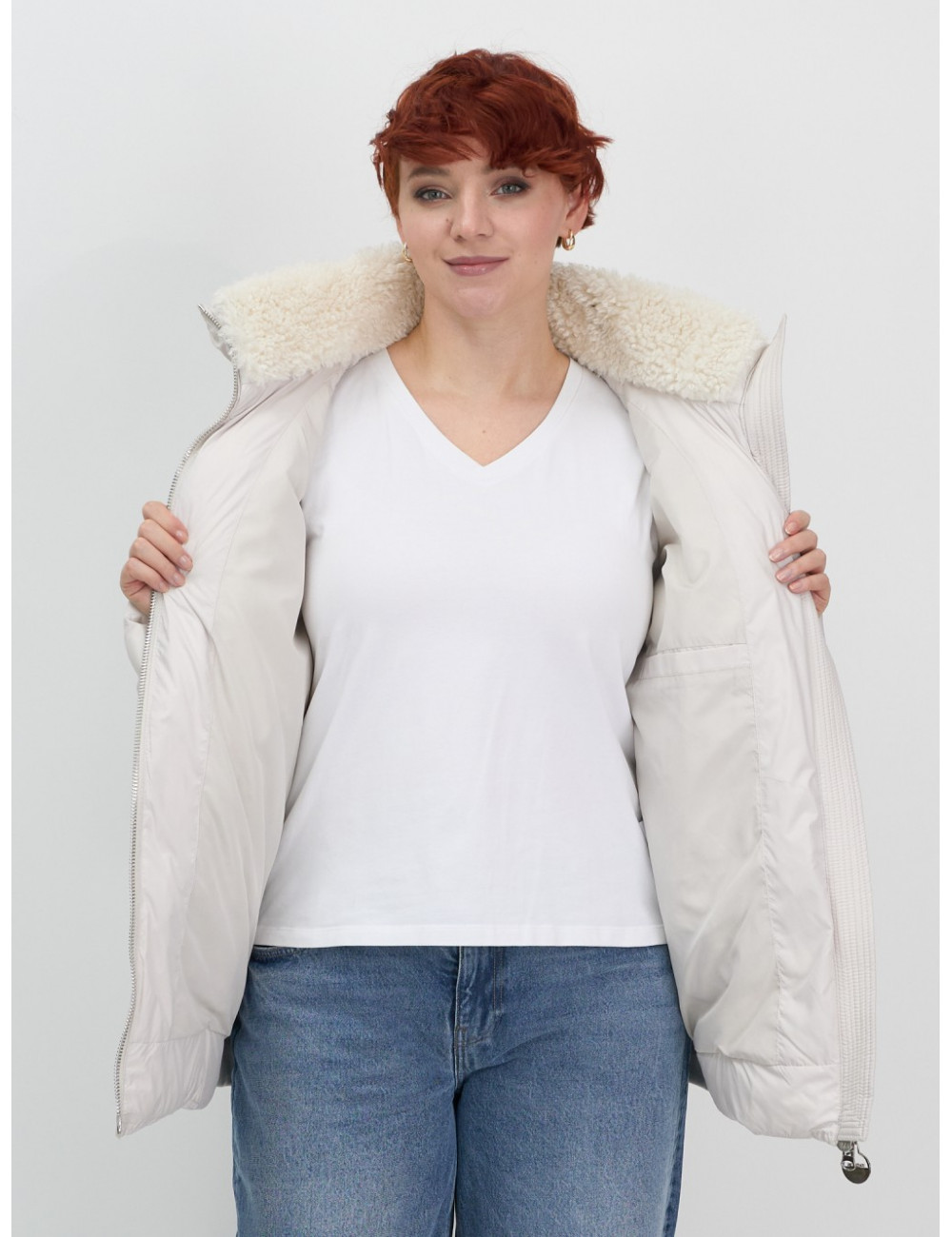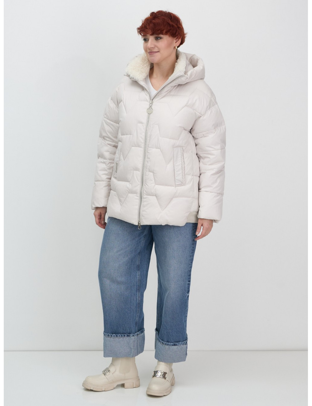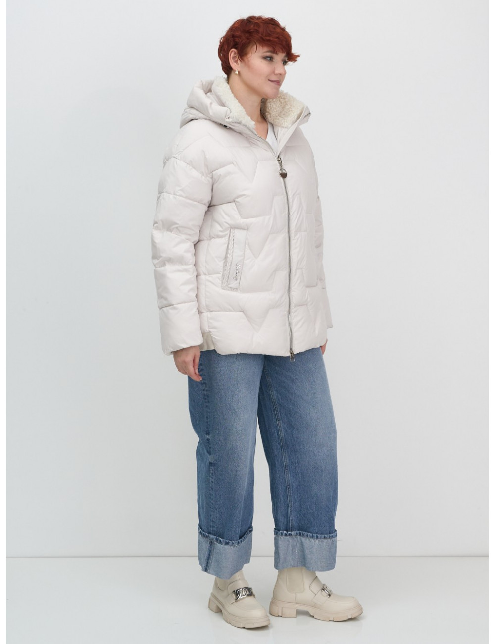 Зимняя куртка с эко овчиной для женщин: цвет бежевый