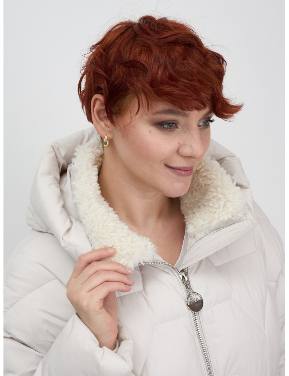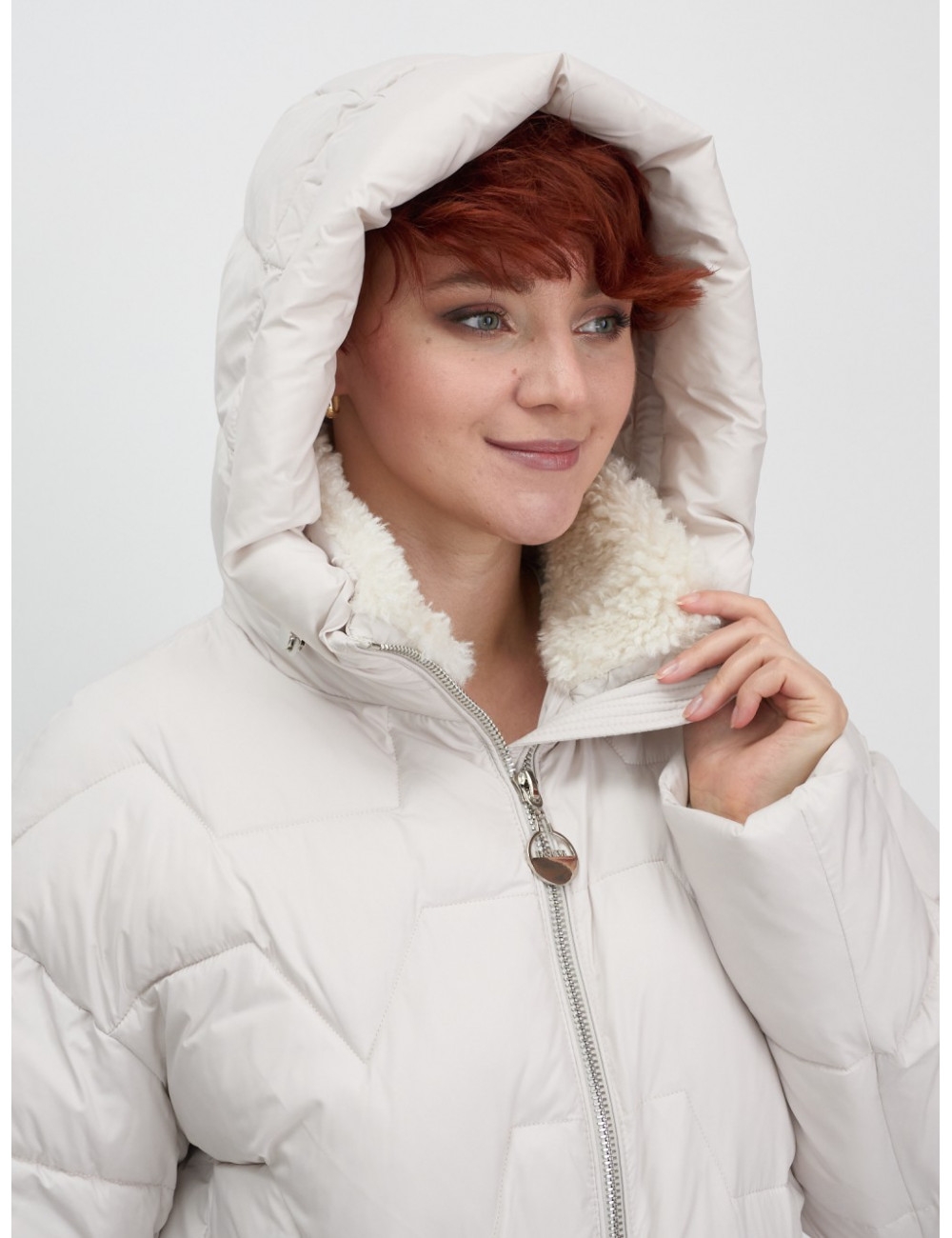 Доставка Женская зимняя куртка пуховик с эко овчины цвет бежевый по Тюмени и Тюменской области СДЭК