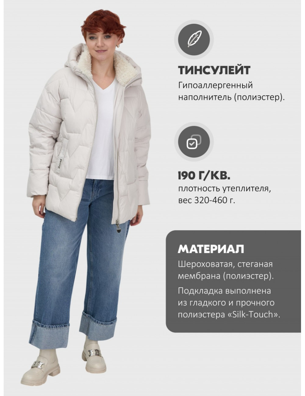 | Материал | Мембранные материалы, Полиэстер, Плащевка, Искусственная овчина, Экологичные материалы |