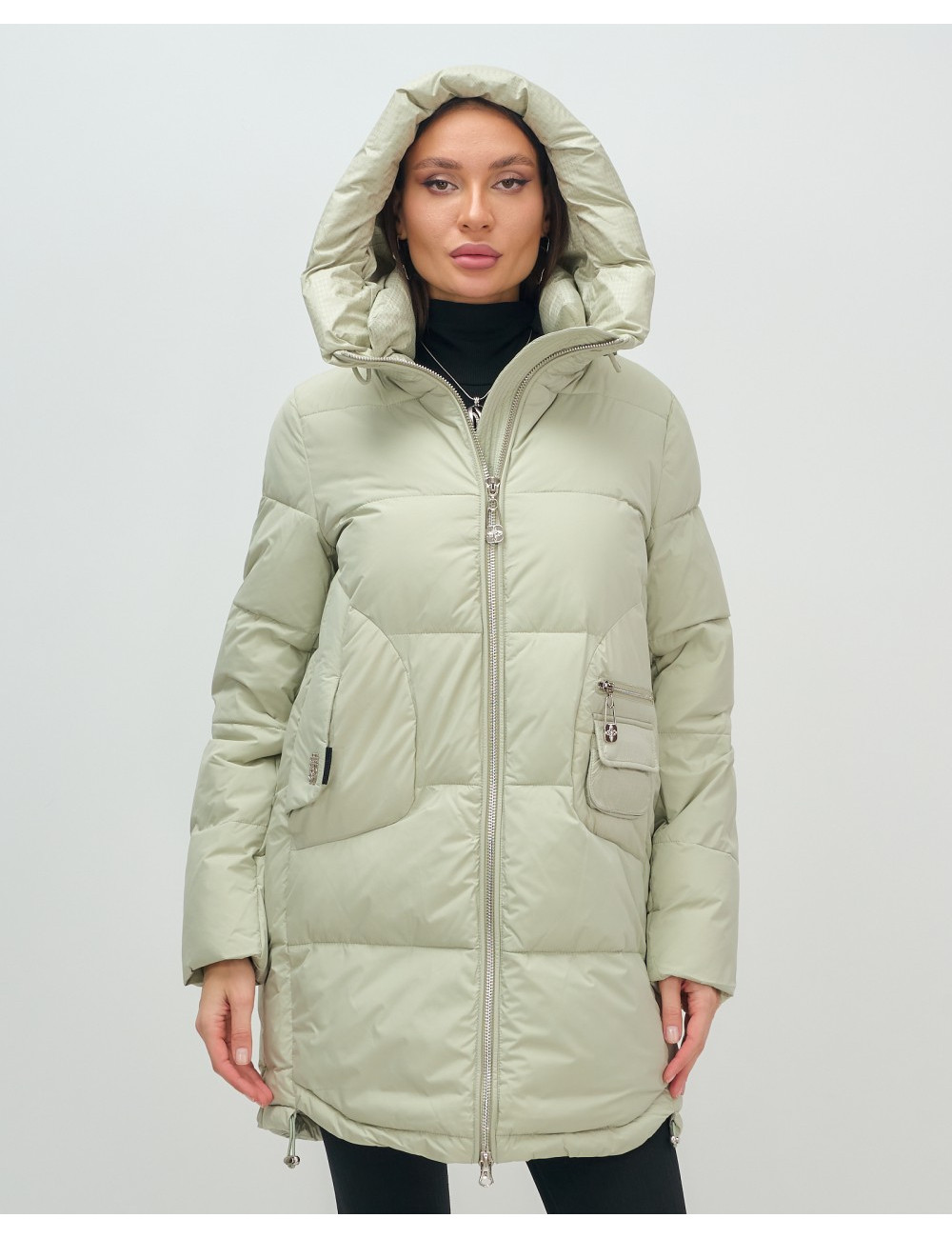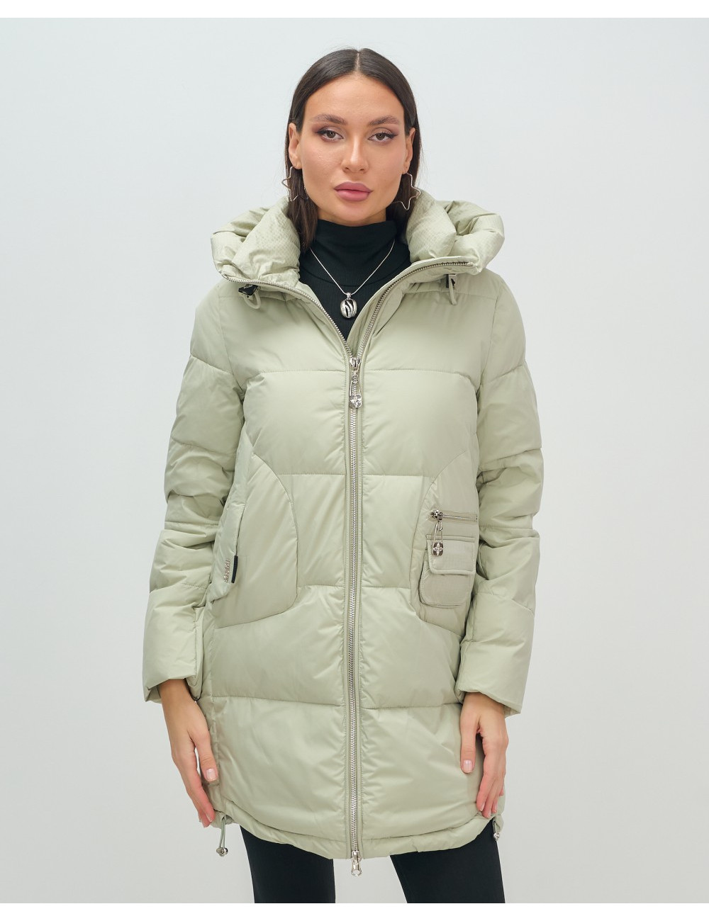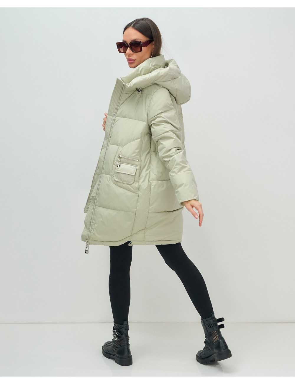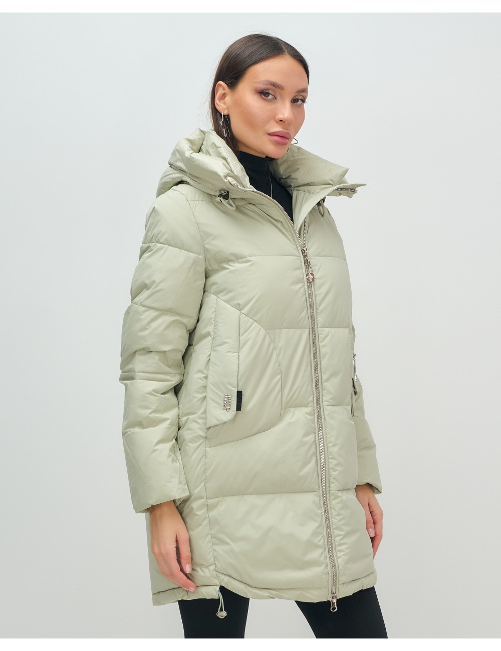 Доставка Женский модный пуховик с капюшоном салатового цвета. по Тюмени и Тюменской области СДЭК
