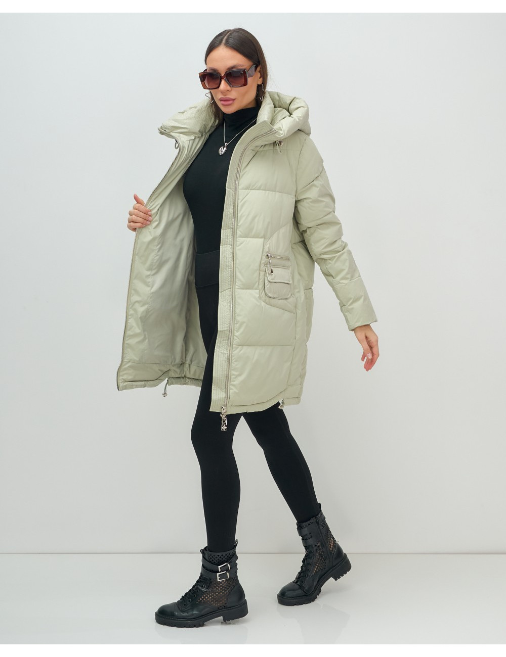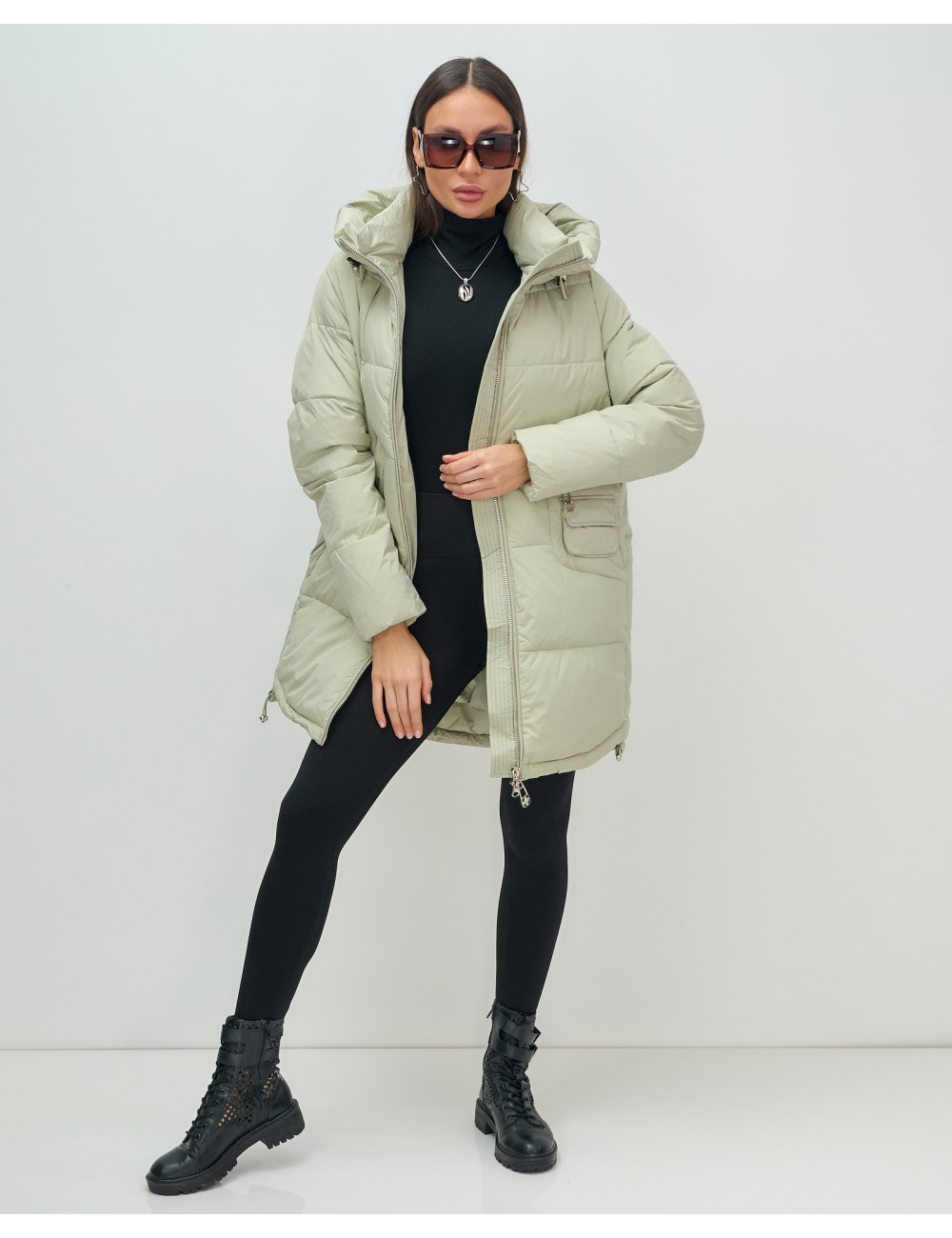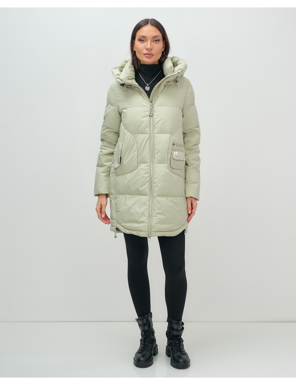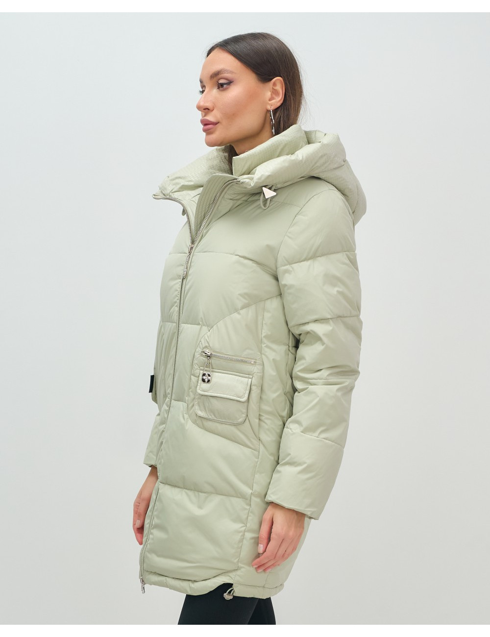 Доставка Женский модный пуховик с капюшоном салатового цвета. по Тюмени и Тюменской области СДЭК
