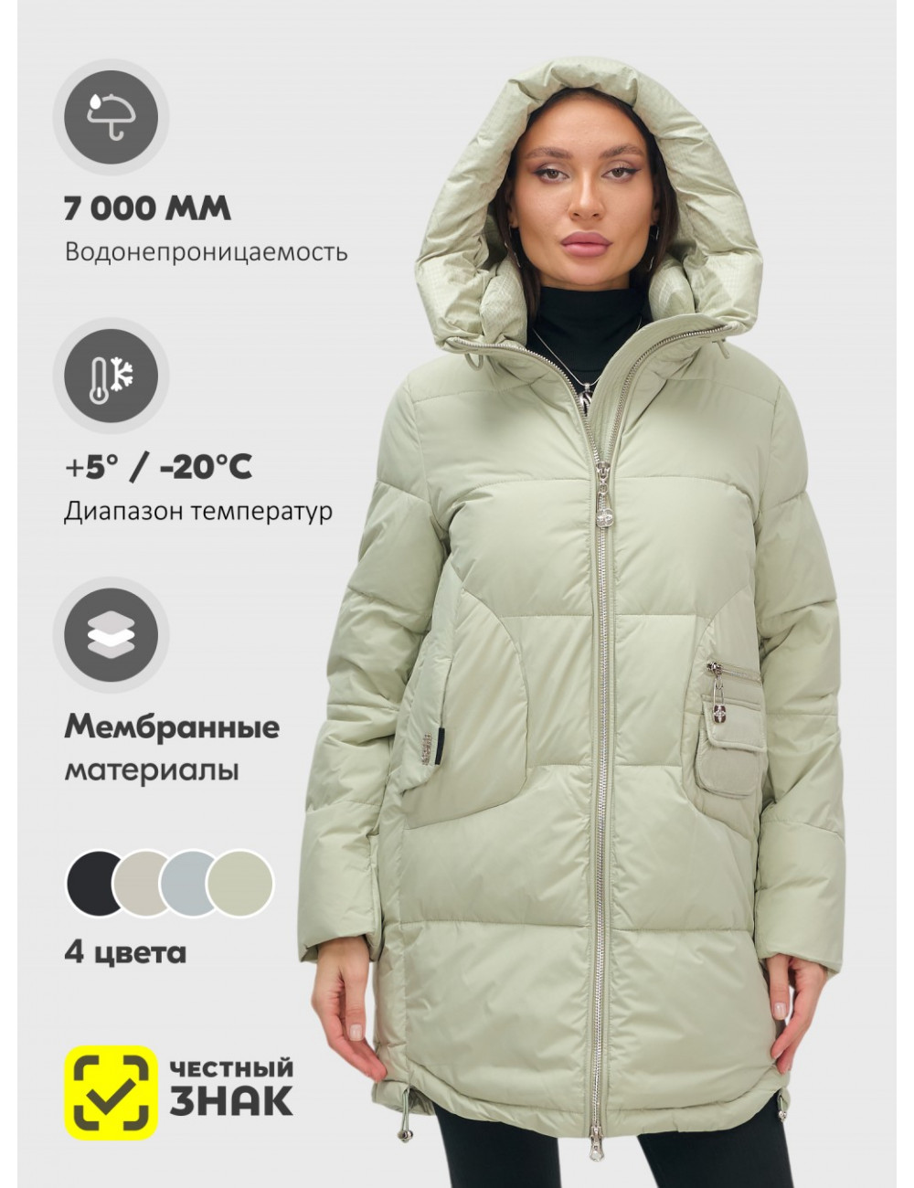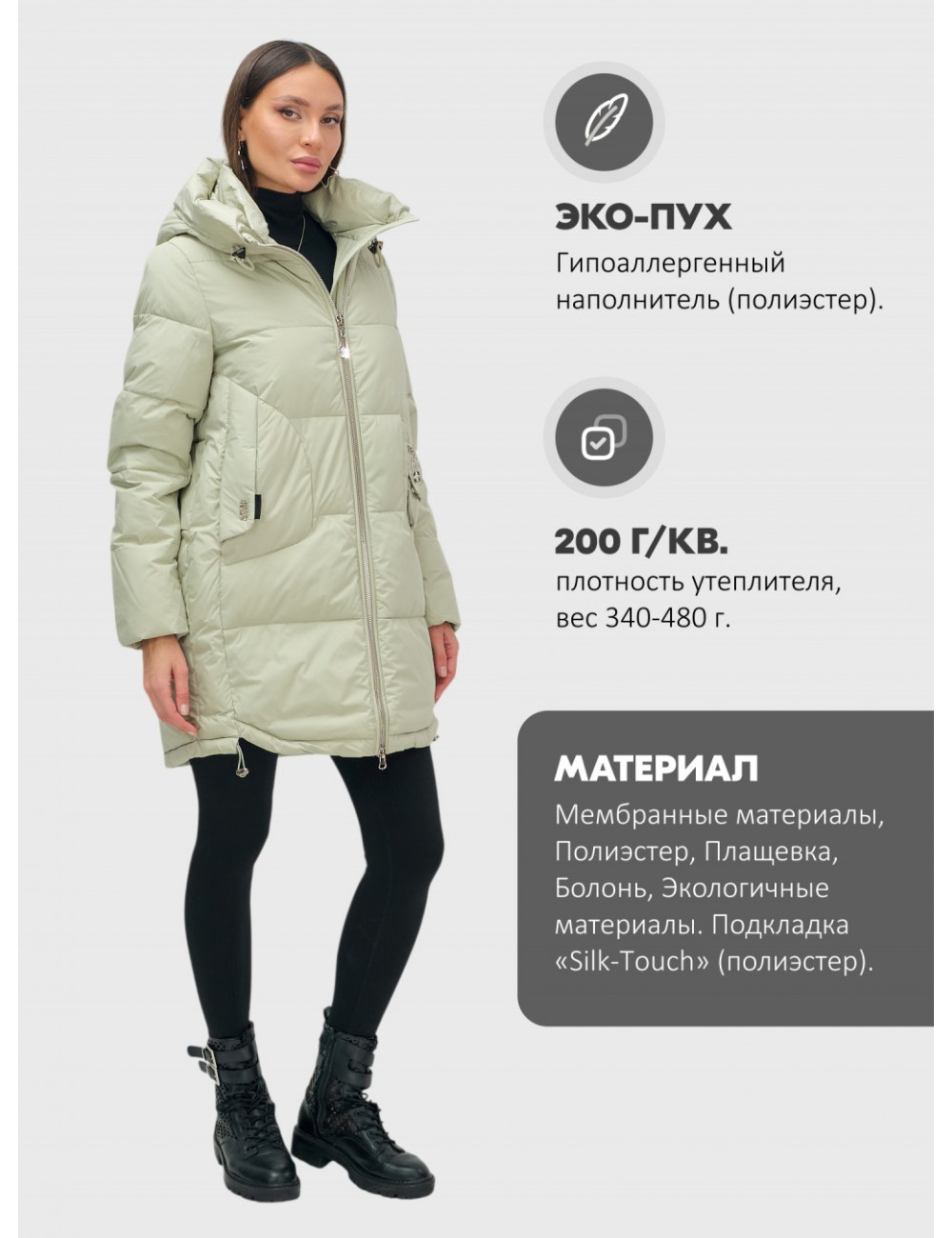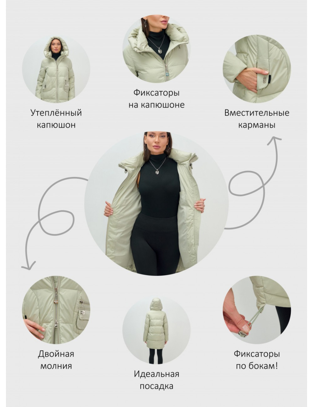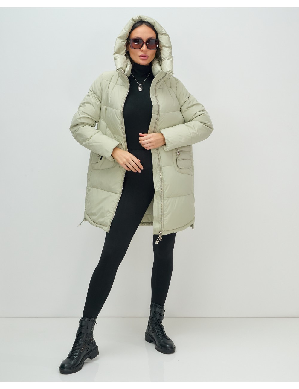 Доставка Женский модный пуховик с капюшоном салатового цвета. по Тюмени и Тюменской области СДЭК