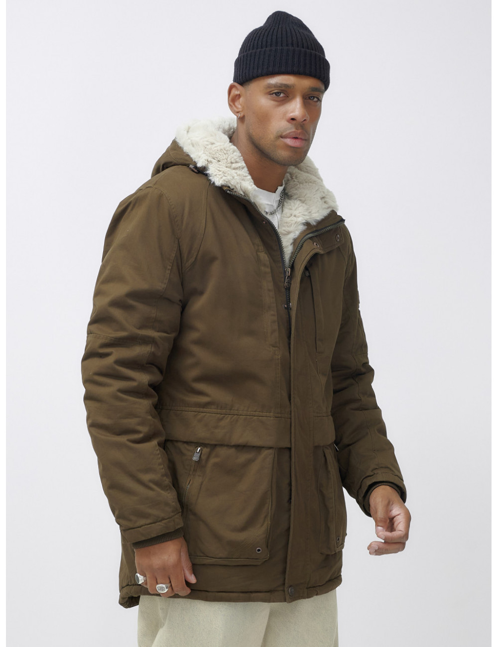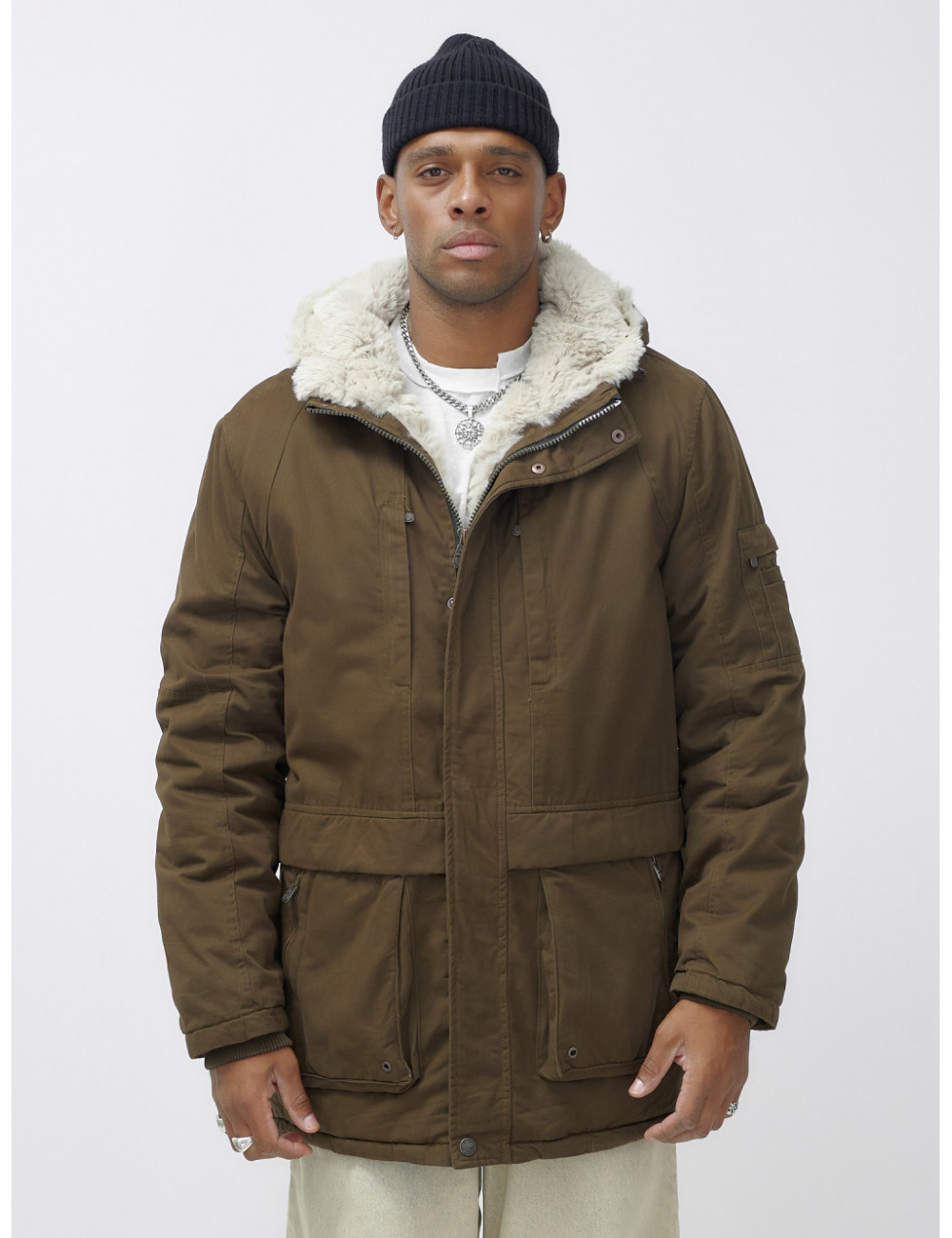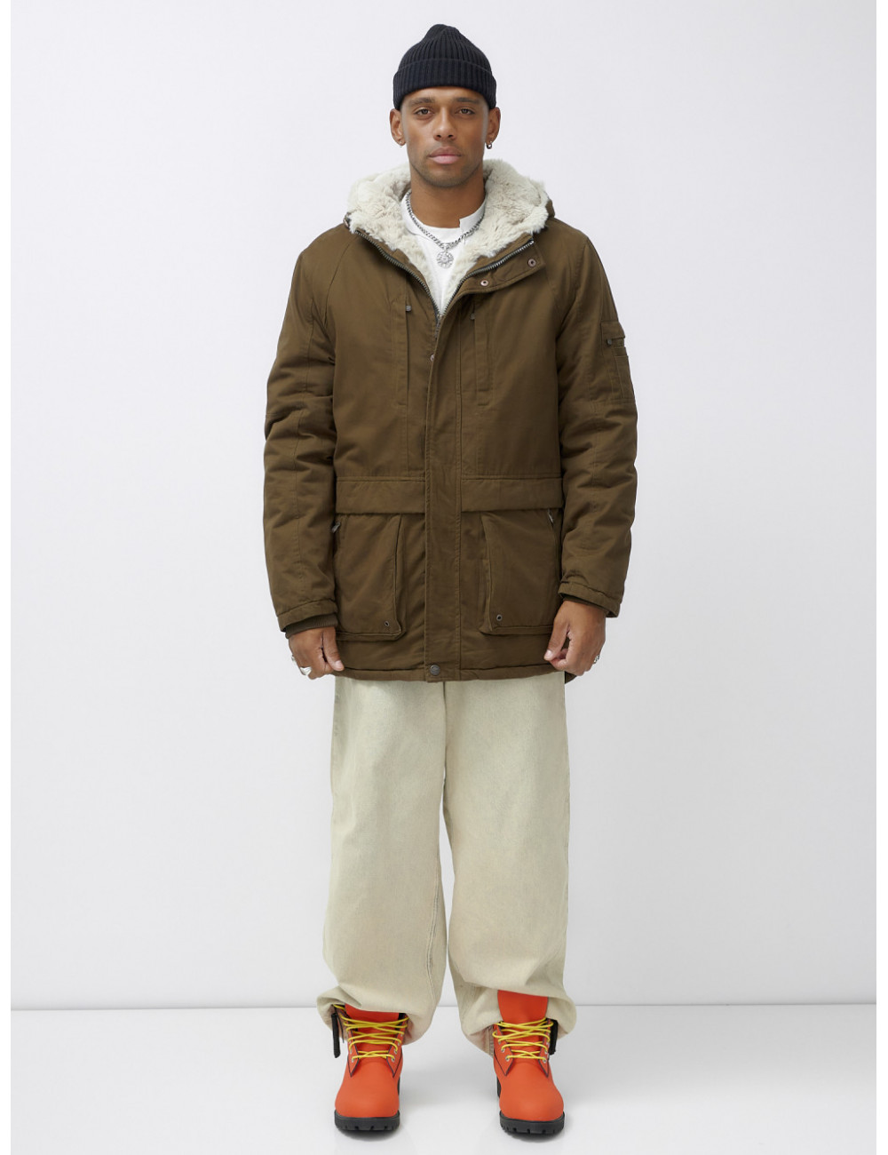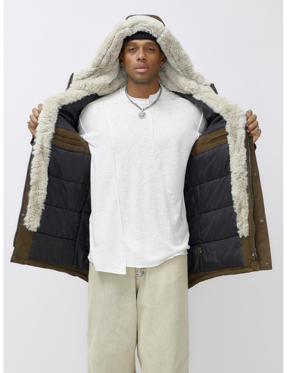 Доставка Мужская зимняя удлиненная парка с мехом, тёмно-шоколадового цвета. по Тюмени и Тюменской области СДЭК