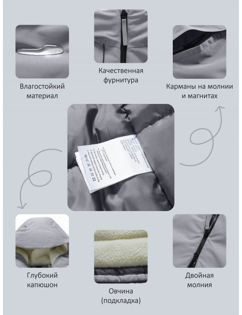 | Декоративные элементы | Капюшон, Карманы, Манжеты, Пояс/ремень |