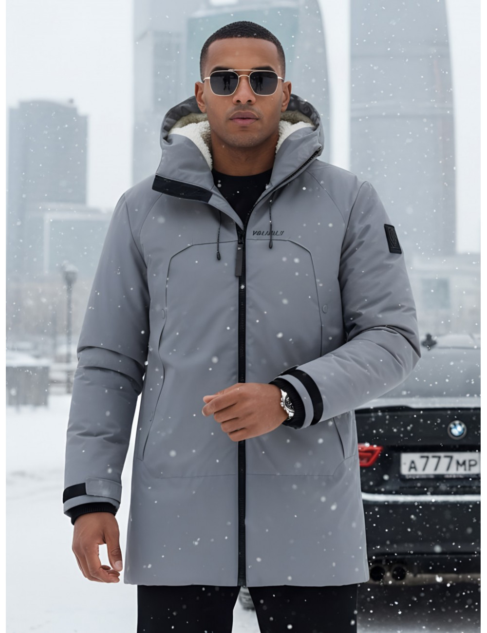 Доставка Зимняя мужская парка с капюшоном, серый, для активного отдыха по Тюмени и Тюменской области СДЭК
